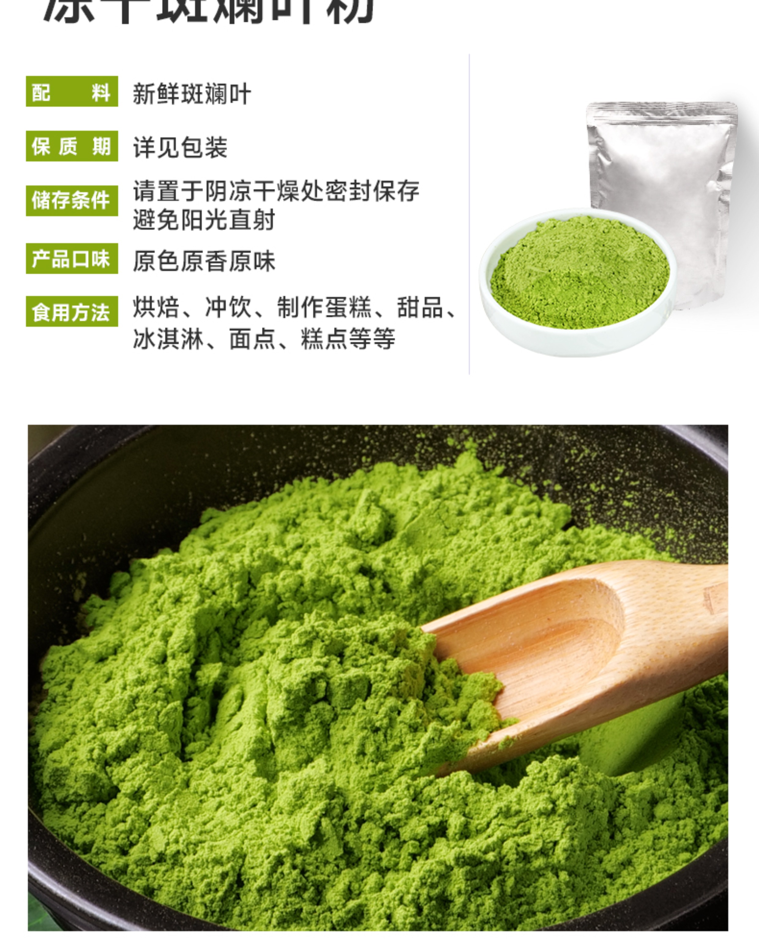 동결 건조 다채로운 잎 분말 하이난 바닐라 잎 순수한 향수 Dou 스팟 난초 잎 분말 상업적인 다채로운 분말 케이크 굽기