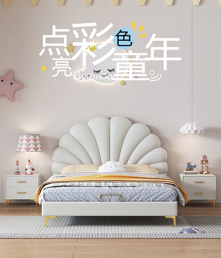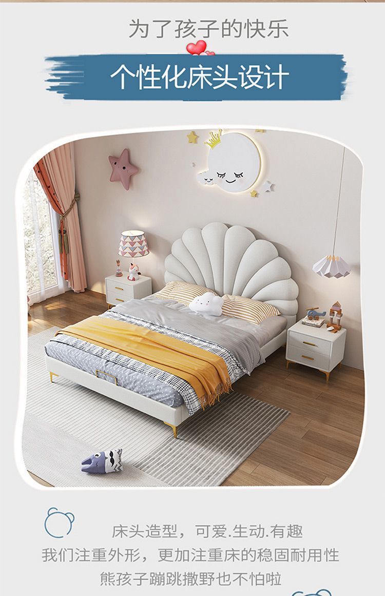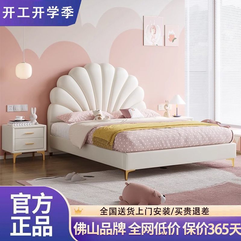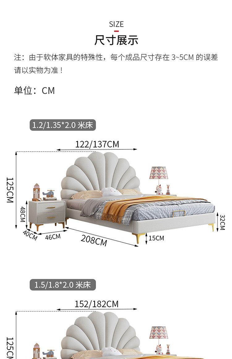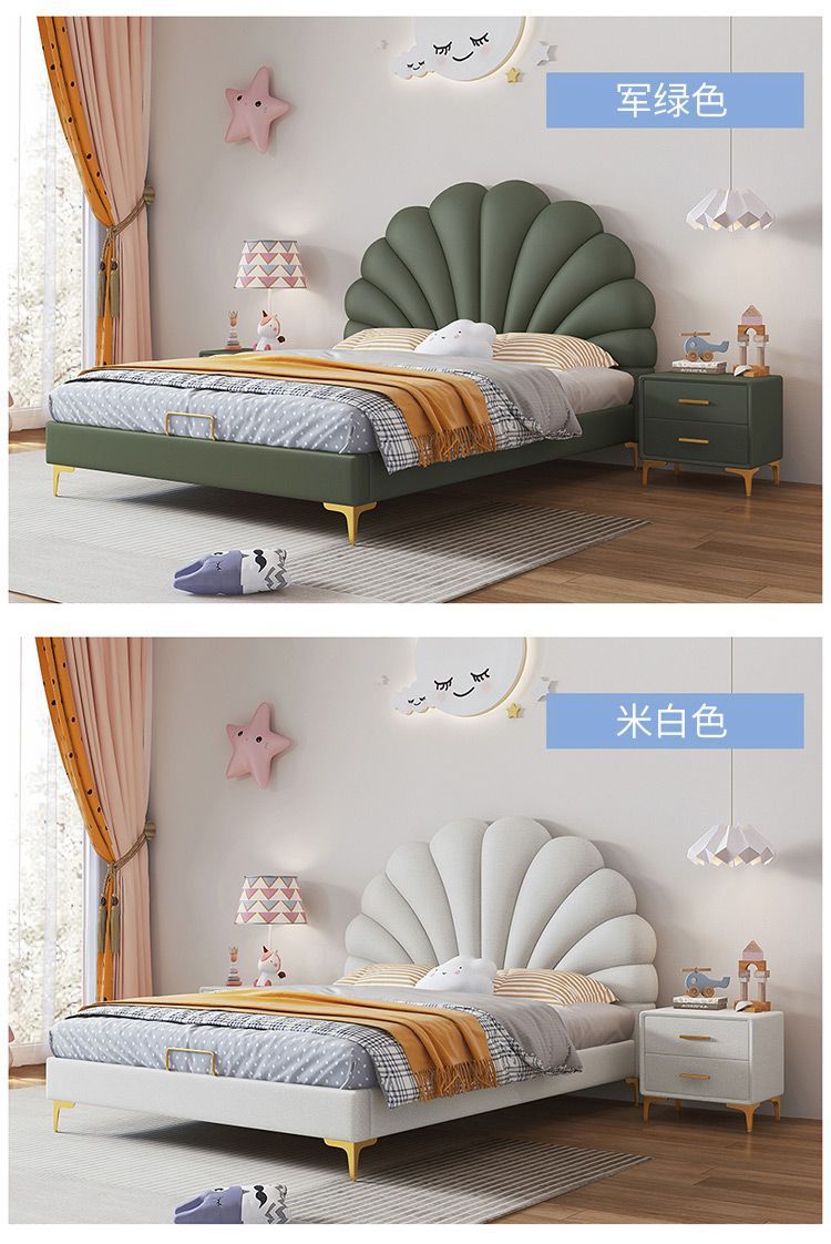 크림 스타일 꽃잎 가죽 침대 현대 간단한 작은 아파트 빛 럭셔리 미니멀리스트 소녀의 침실 대기 더블 보관 침대스토어 가기