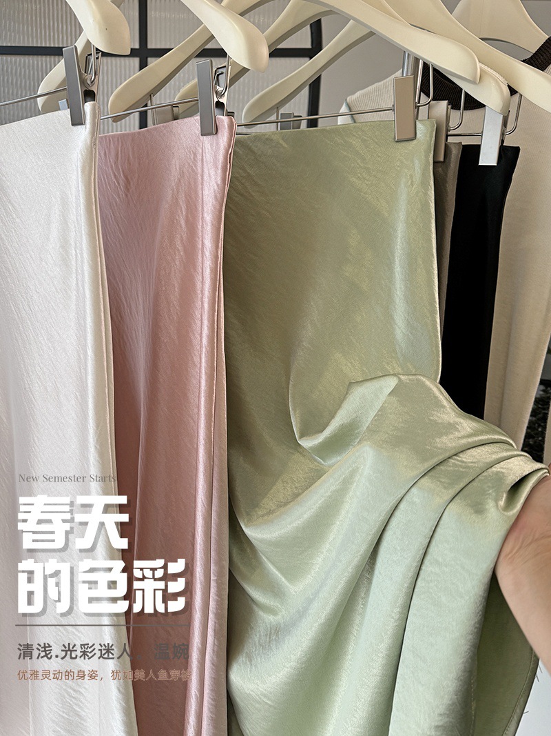Acetic Acid Satin Fishtail Skirt 여성의 2025 우아한 간단한 유두 슬리밍 엉덩이 A- Line 중간 길이 치마스토어 가기