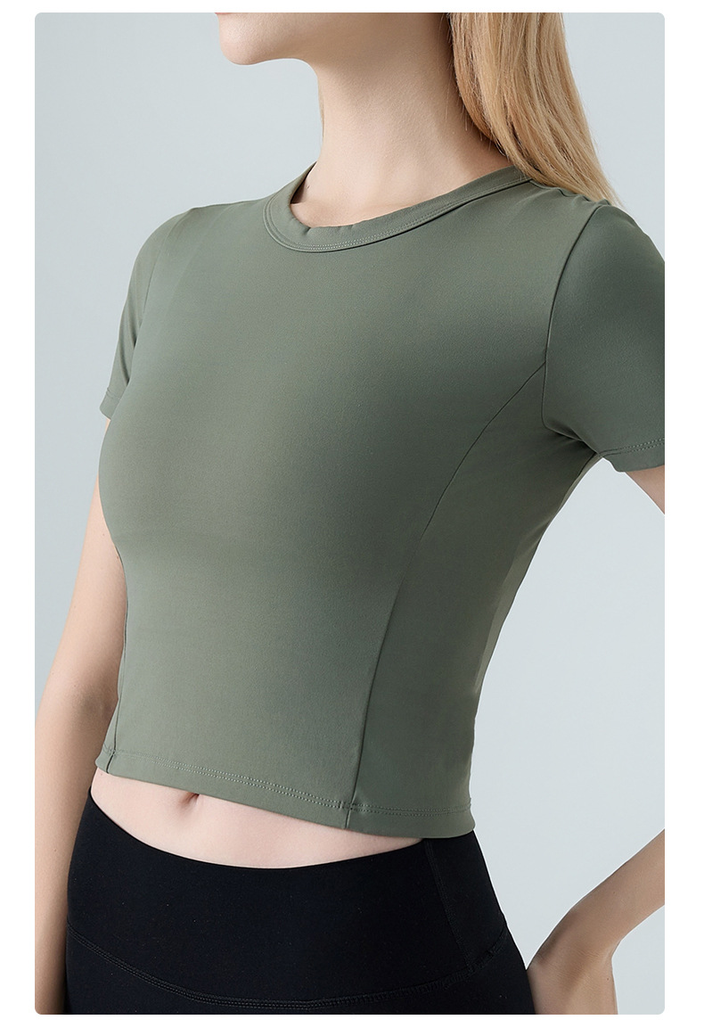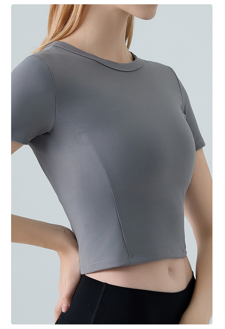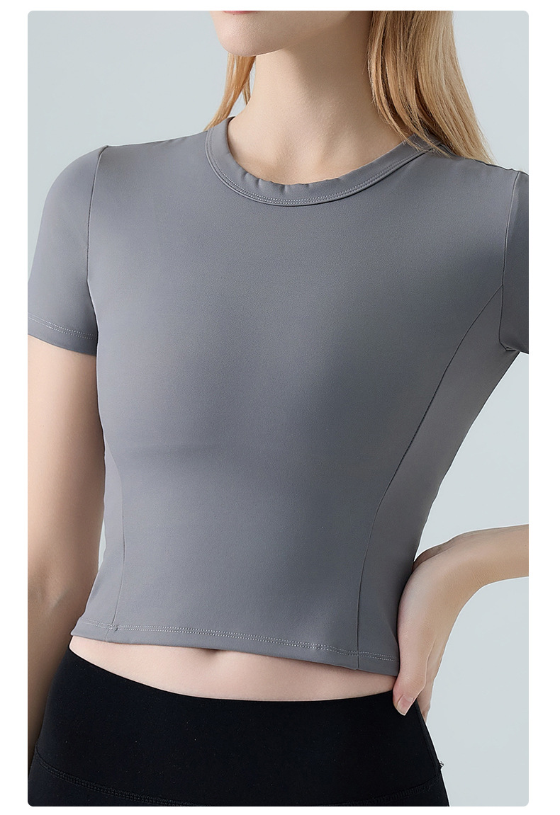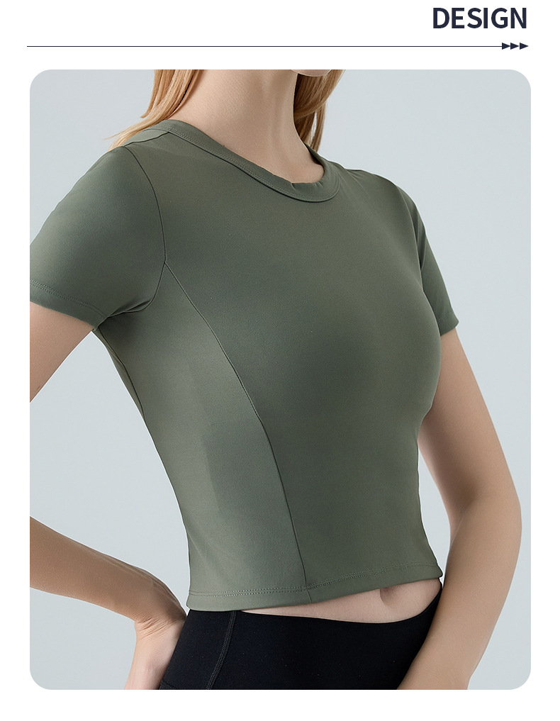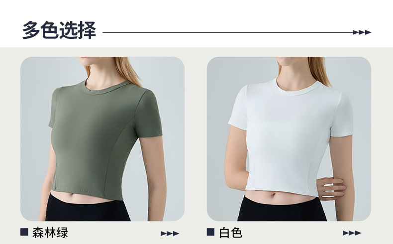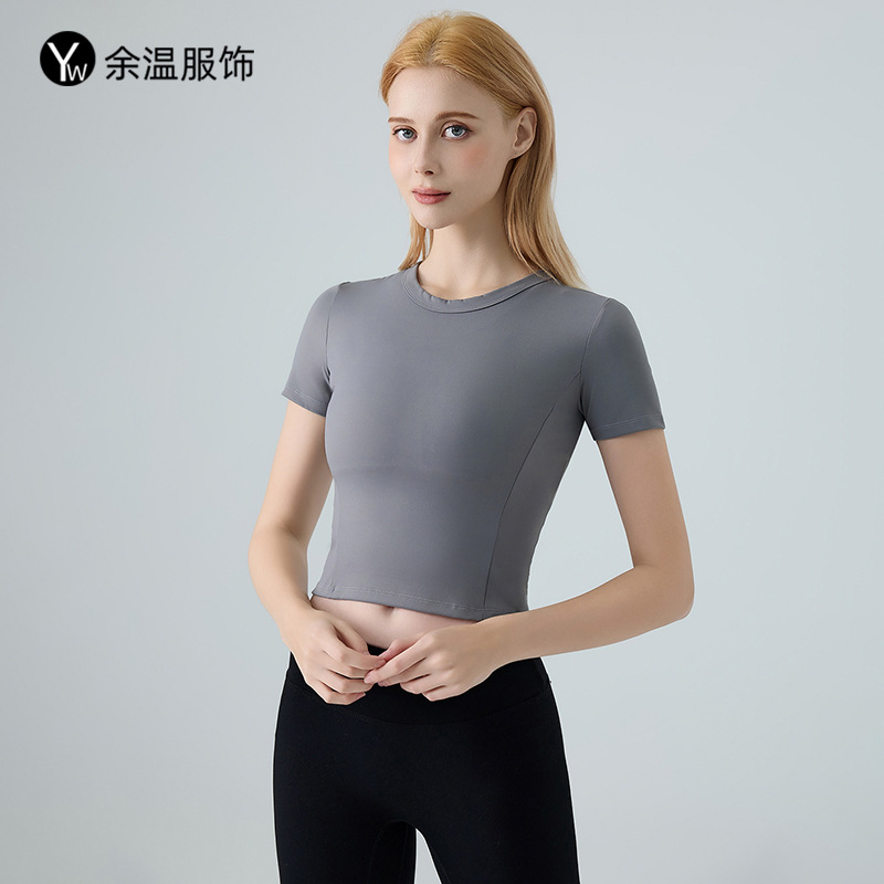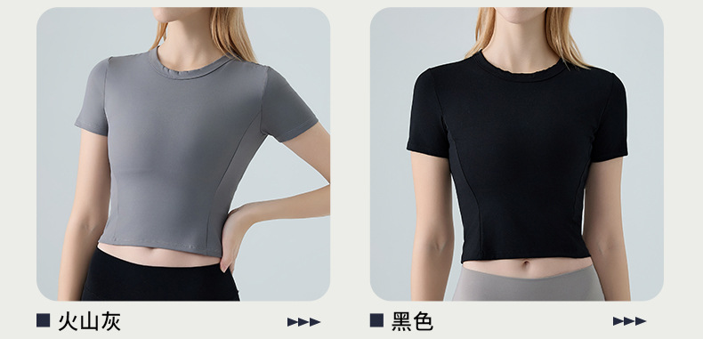 봄과 여름 피트니스 요가 의류 여성용 반팔 크루 넥 빠른 건조 스포츠 탑 러닝 솔리드 컬러 타이트 티셔츠 크로스 보더스토어 가기