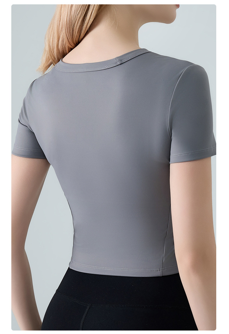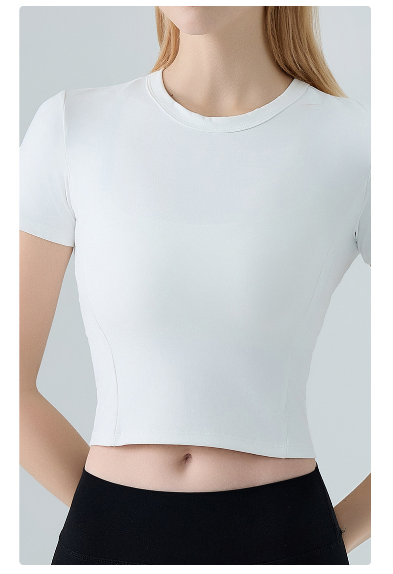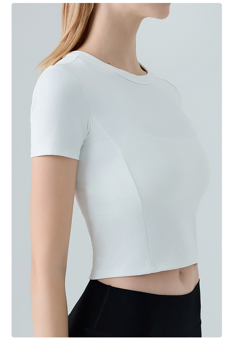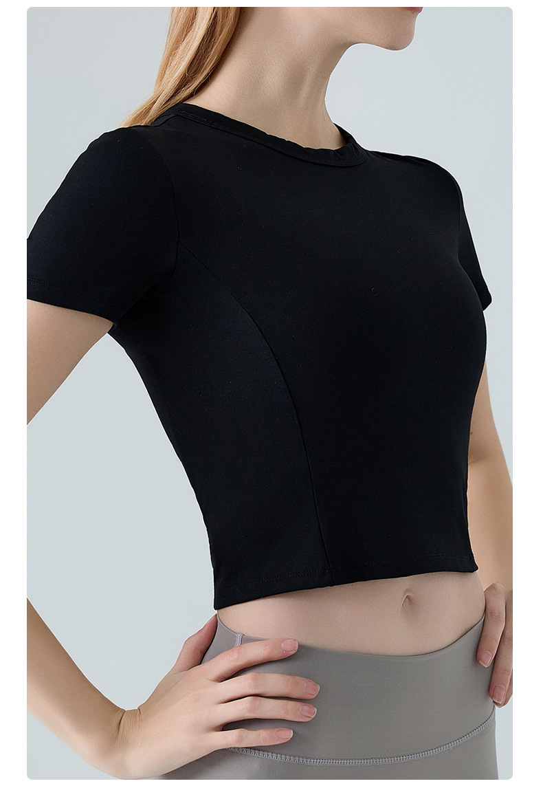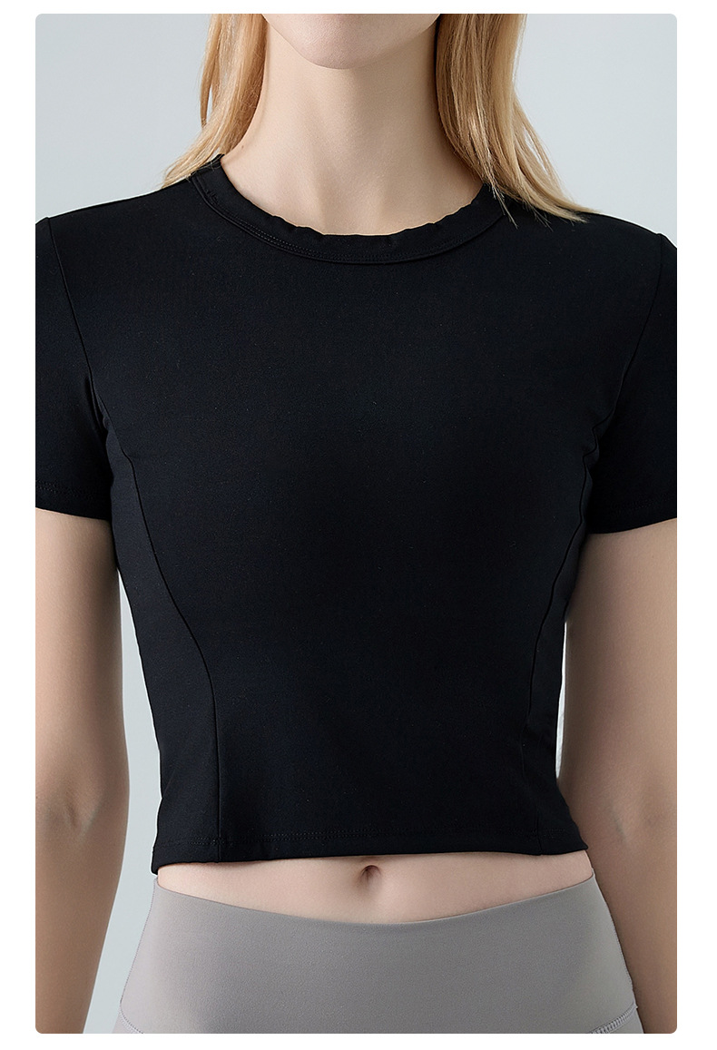 봄과 여름 피트니스 요가 의류 여성용 반팔 크루 넥 빠른 건조 스포츠 탑 러닝 솔리드 컬러 타이트 티셔츠 크로스 보더스토어 가기
