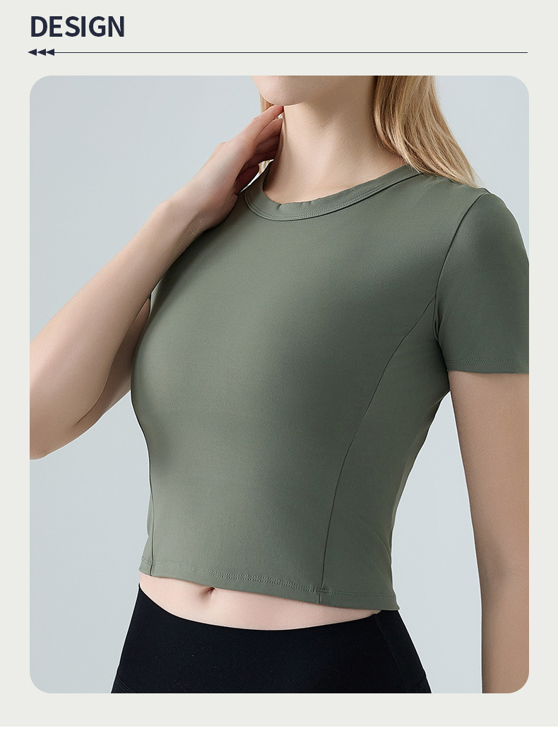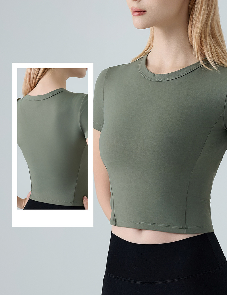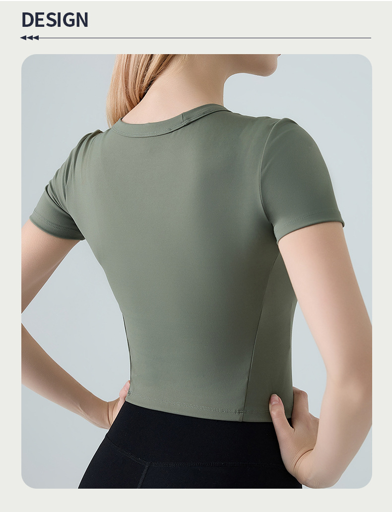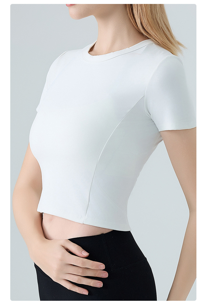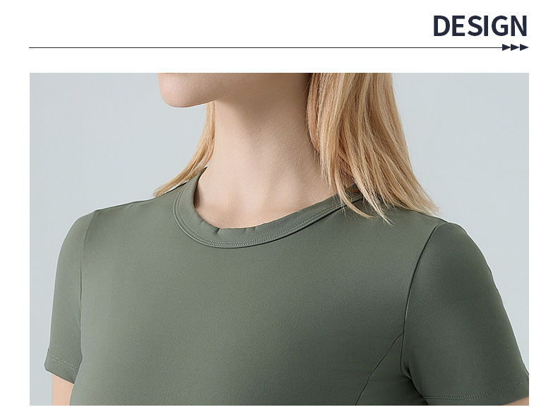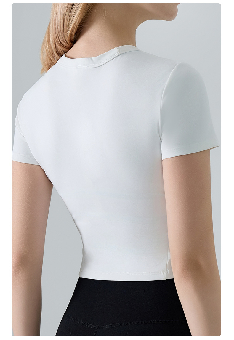 봄과 여름 피트니스 요가 의류 여성용 반팔 크루 넥 빠른 건조 스포츠 탑 러닝 솔리드 컬러 타이트 티셔츠 크로스 보더스토어 가기