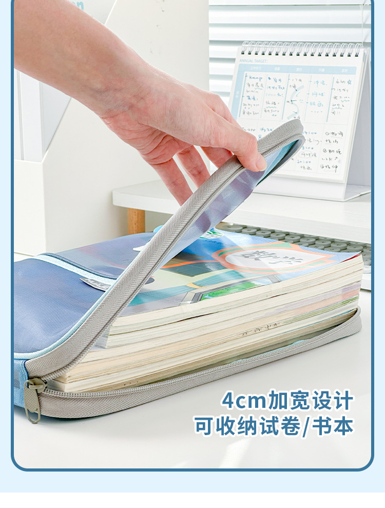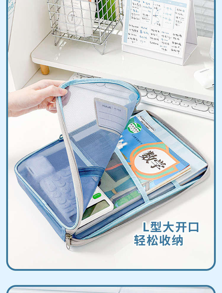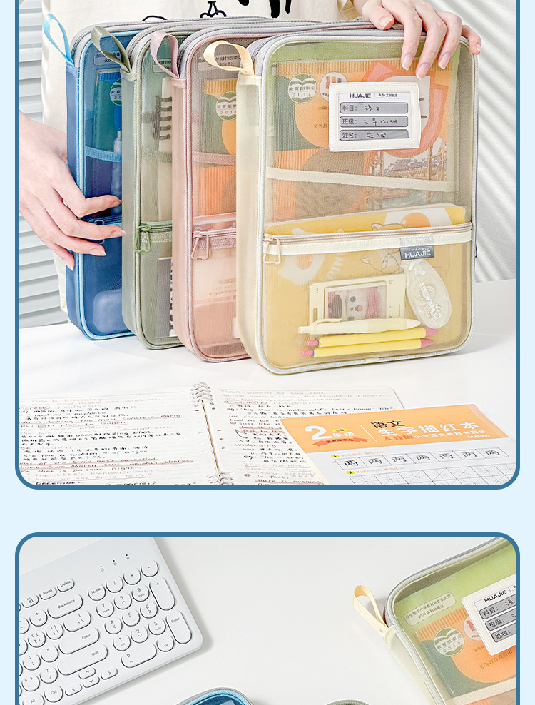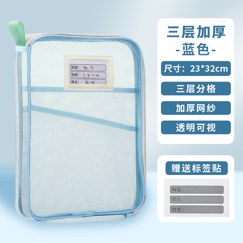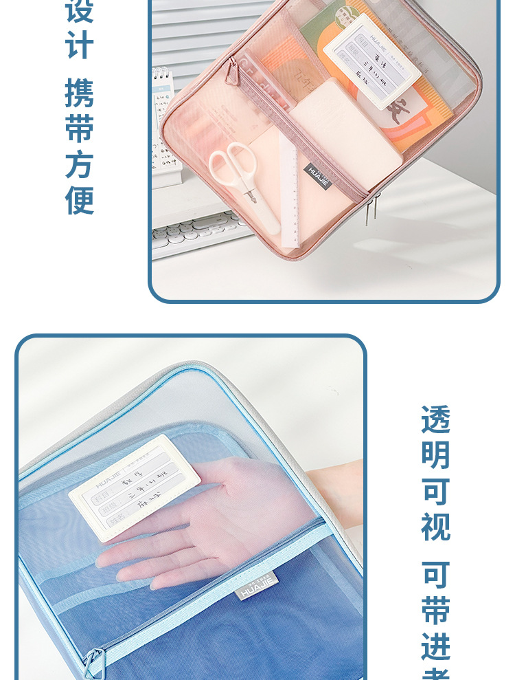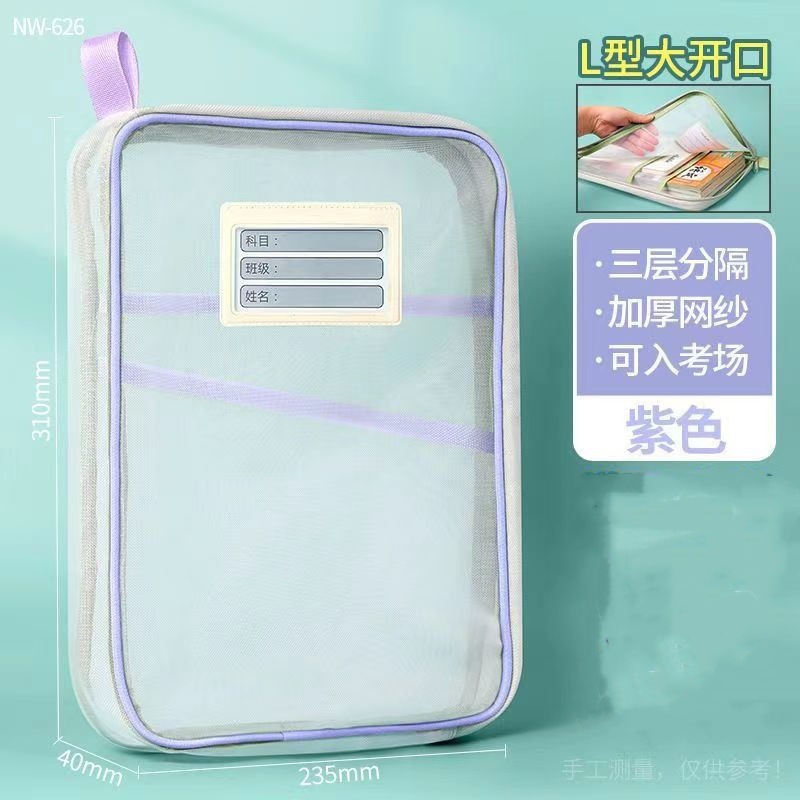 문서 가방 L 자형 큰 오프닝 학생 시험 종이 분류 접이식 보관 가방 투명 메쉬 숙제 구획 핸드백