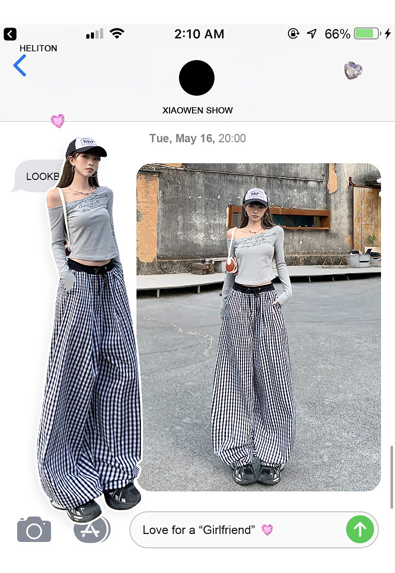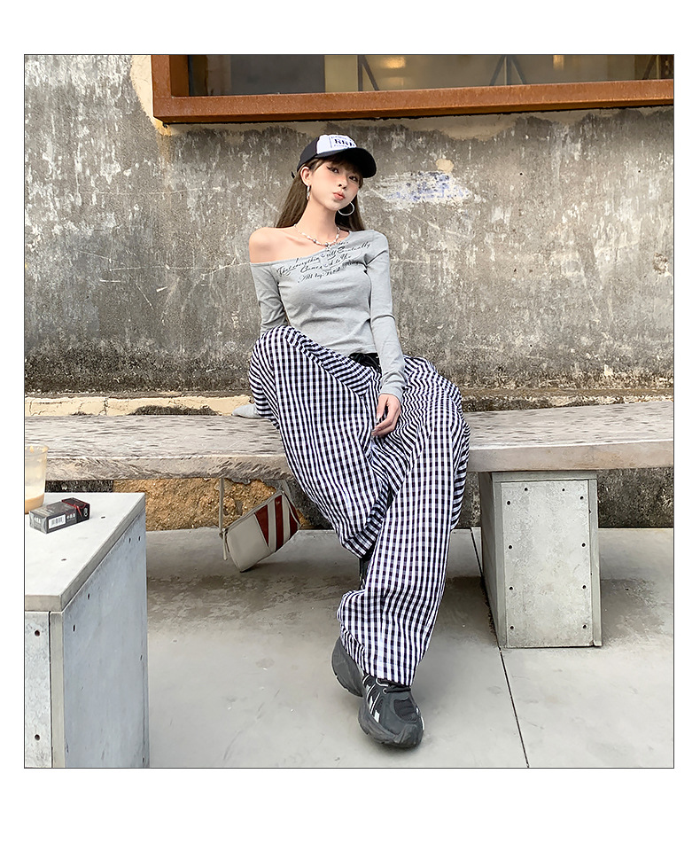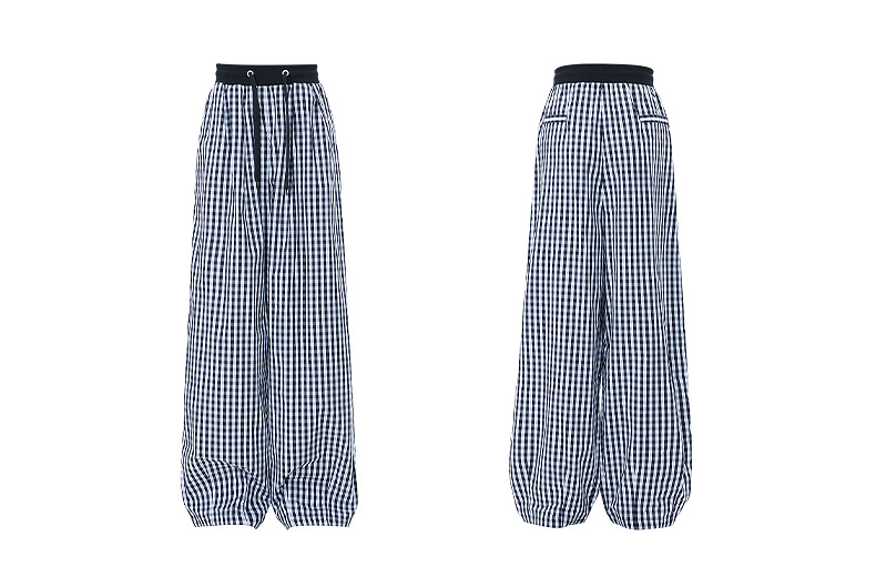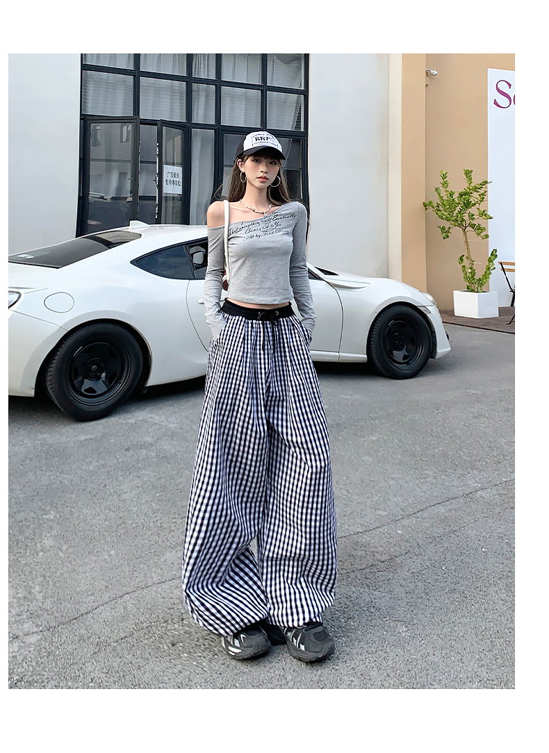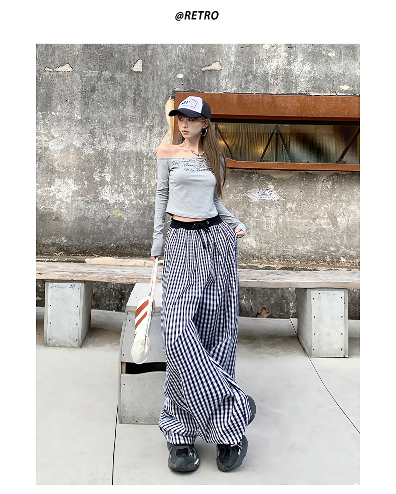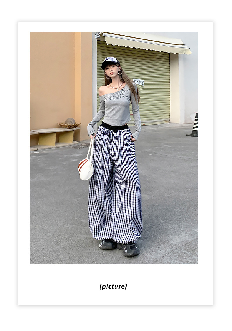 2025 봄 새로운 패션 디자인 바느질 격자 무늬 바지 여성 올매치 캐주얼 연령 감소 슬리밍 와이드 레그 바지