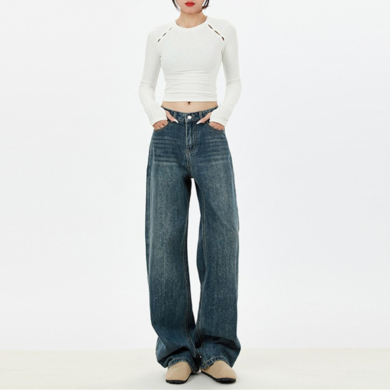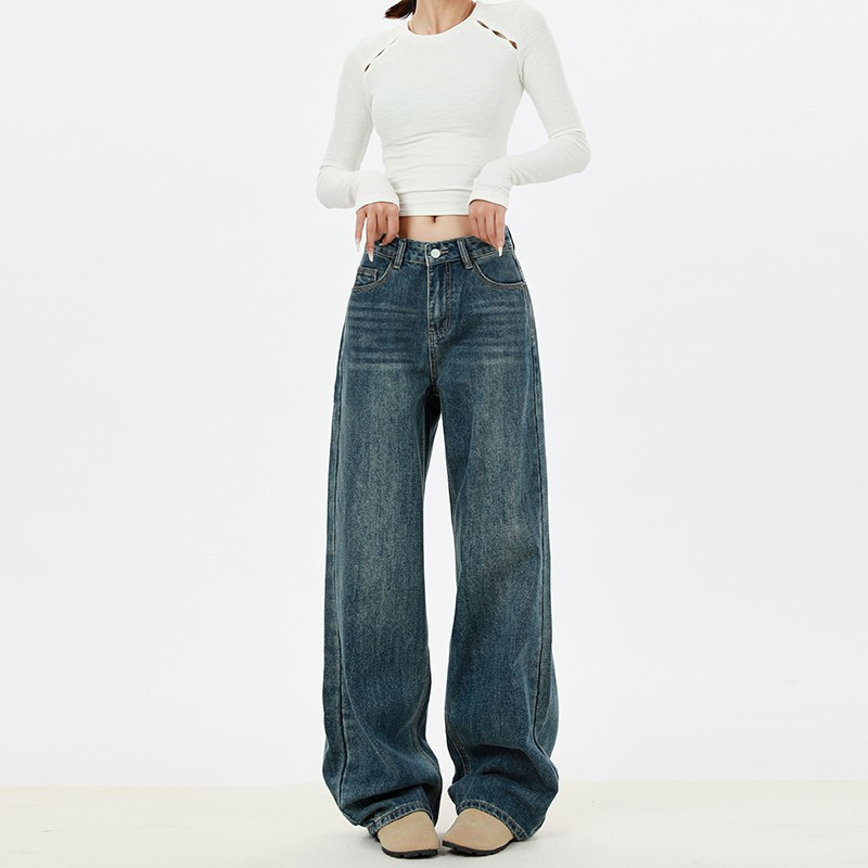 아메리칸 스타일 하이 스트리트 스트레이트 레그 청바지 여성의 2025 년 봄과 가을 느슨한 캐주얼 좁은 버전 레트로 슬리밍 와이드 레그 트렌디