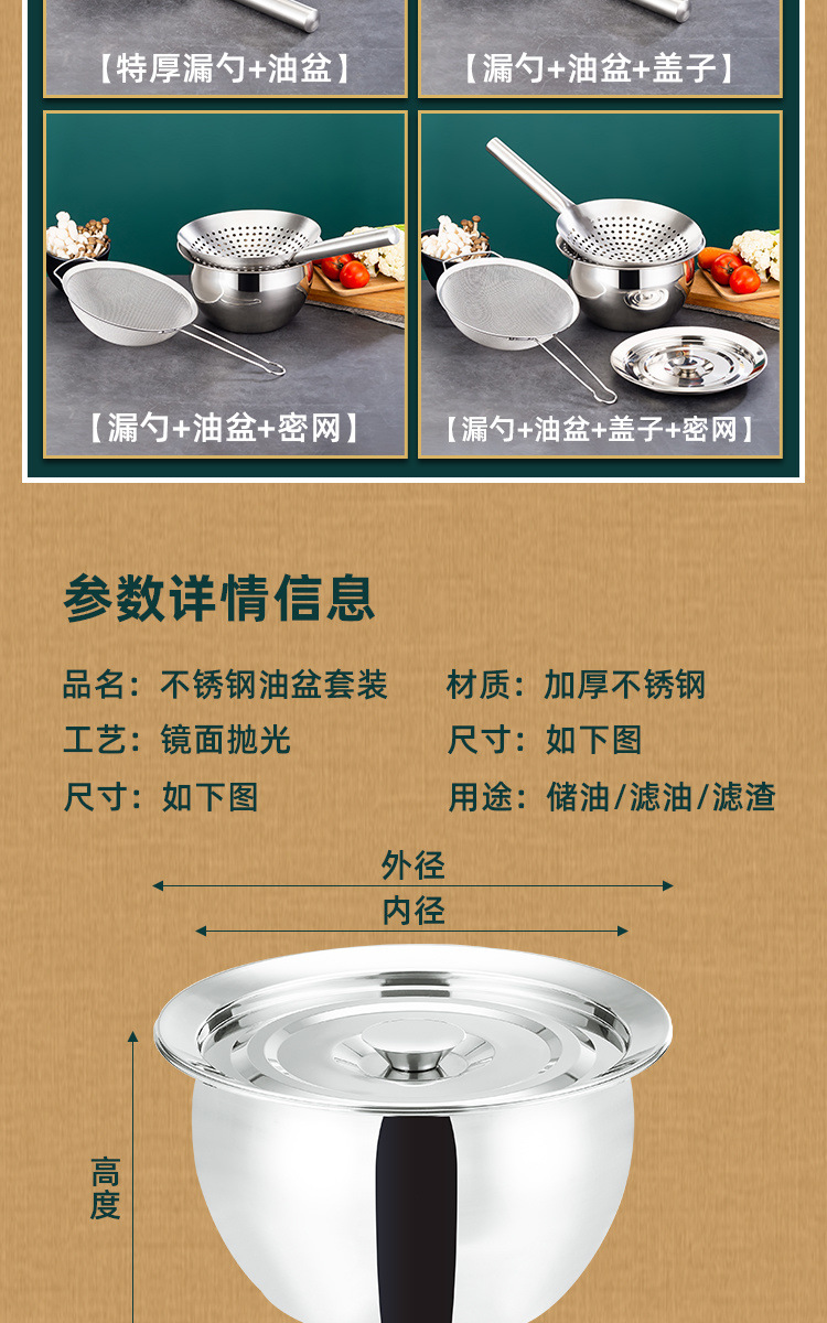 • ⭐⭐【304】소쿠리 + 기름통 + 촘촘한 메쉬 + 뚜껑⭐⭐