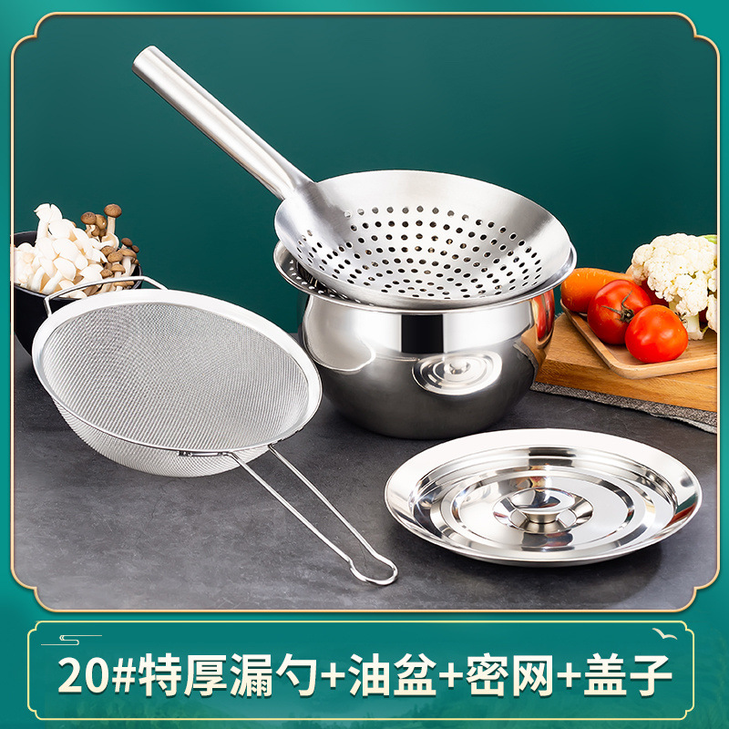 Extrathick 304 스테인레스 스틸 소쿠리 튀김 국수 필터 스크린 가정용 오일 분지 상업용 주방 라드 분지 및 분지스토어 가기