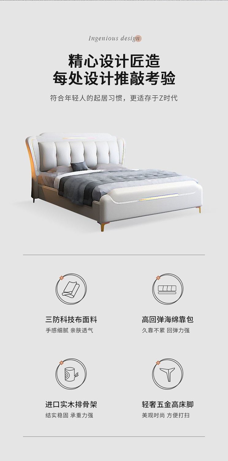 • 가죽 침대 + 5D 라텍스 매트리스