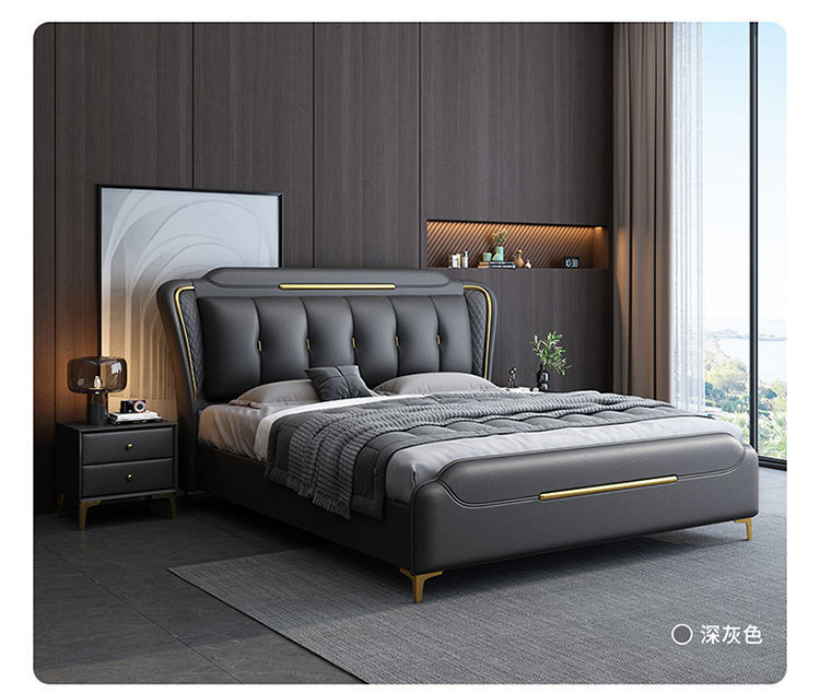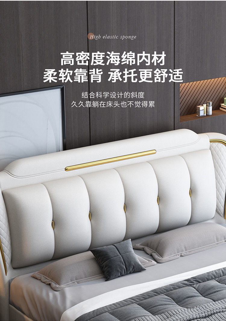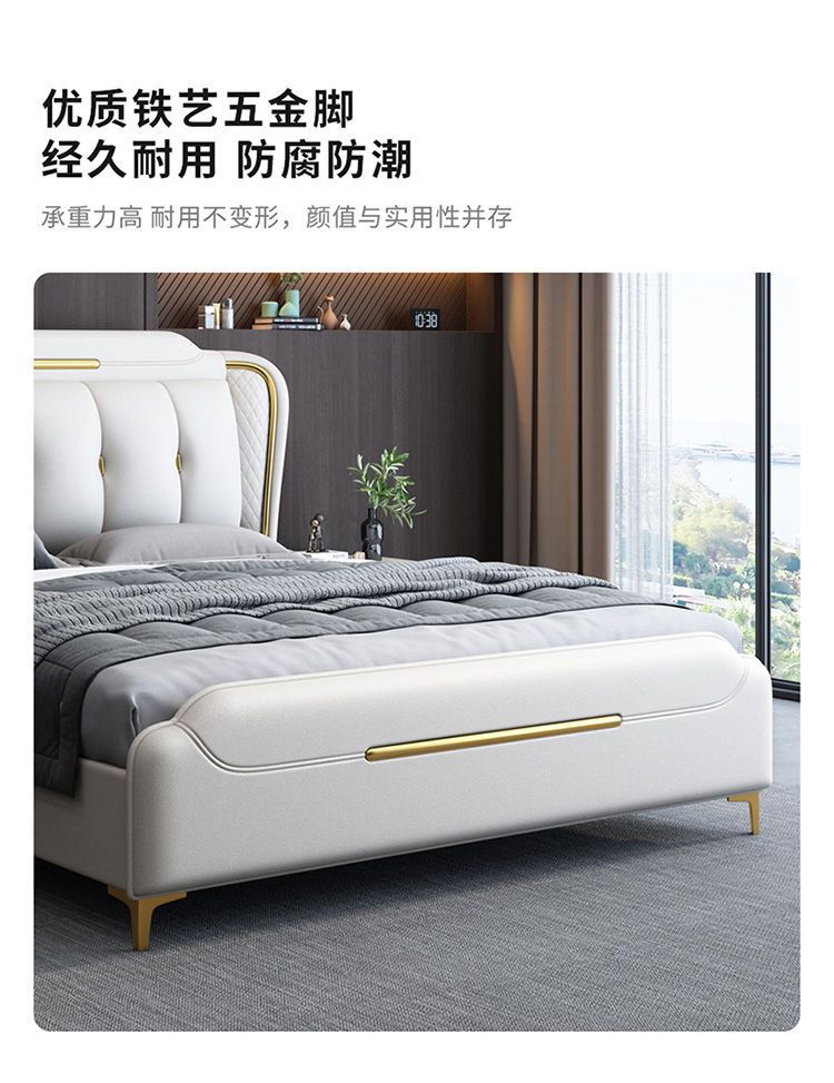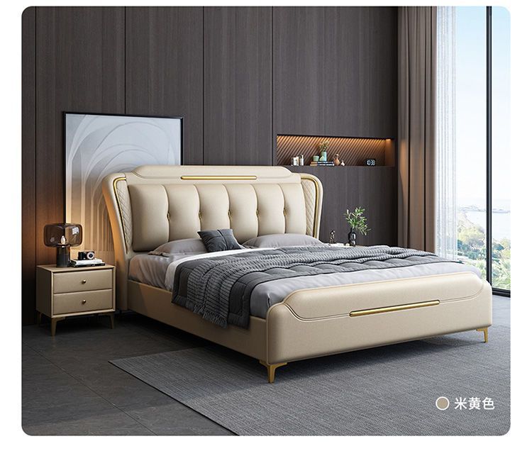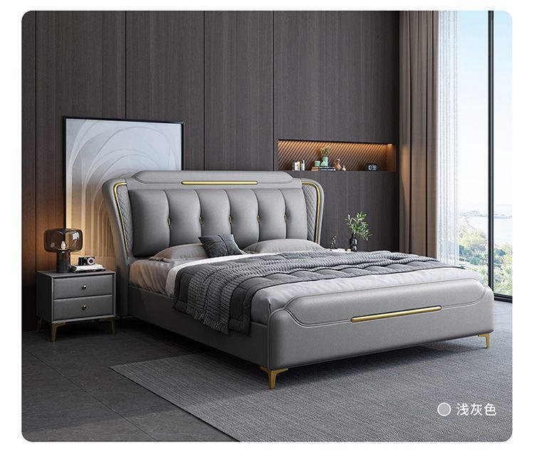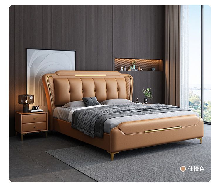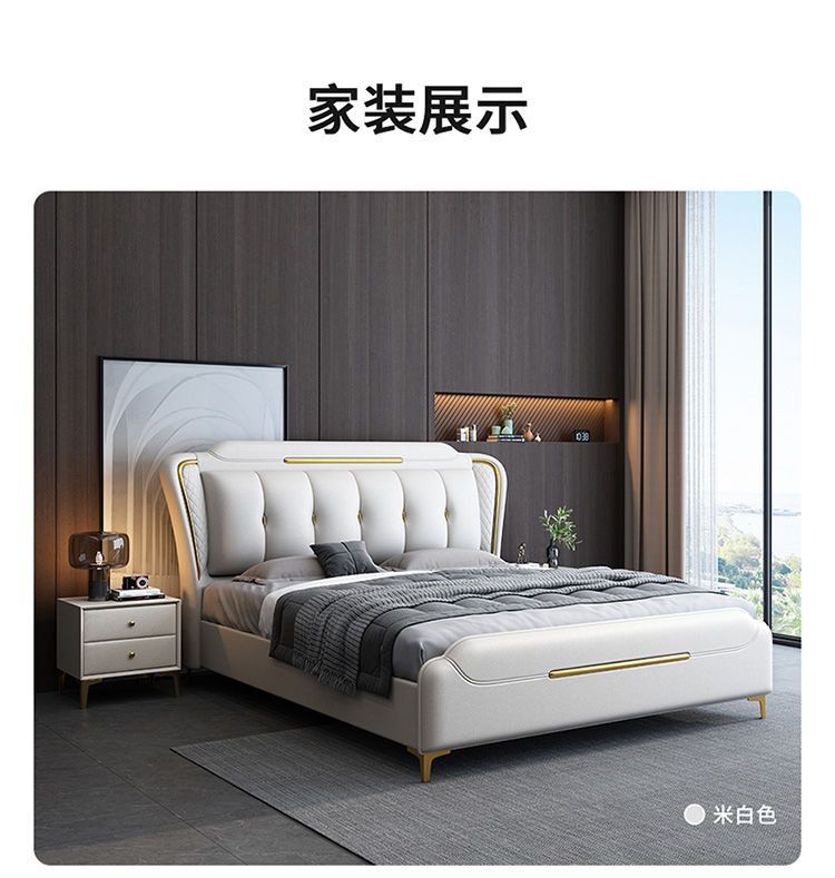 이탈리아 스타일의 가벼운 고급 가죽 침대 현대 간단한 더블 침대 마스터 침실 2 m 1.5 m 퀸 침대 1.8 m 웨딩 침대 미니멀리스트 가죽스토어 가기