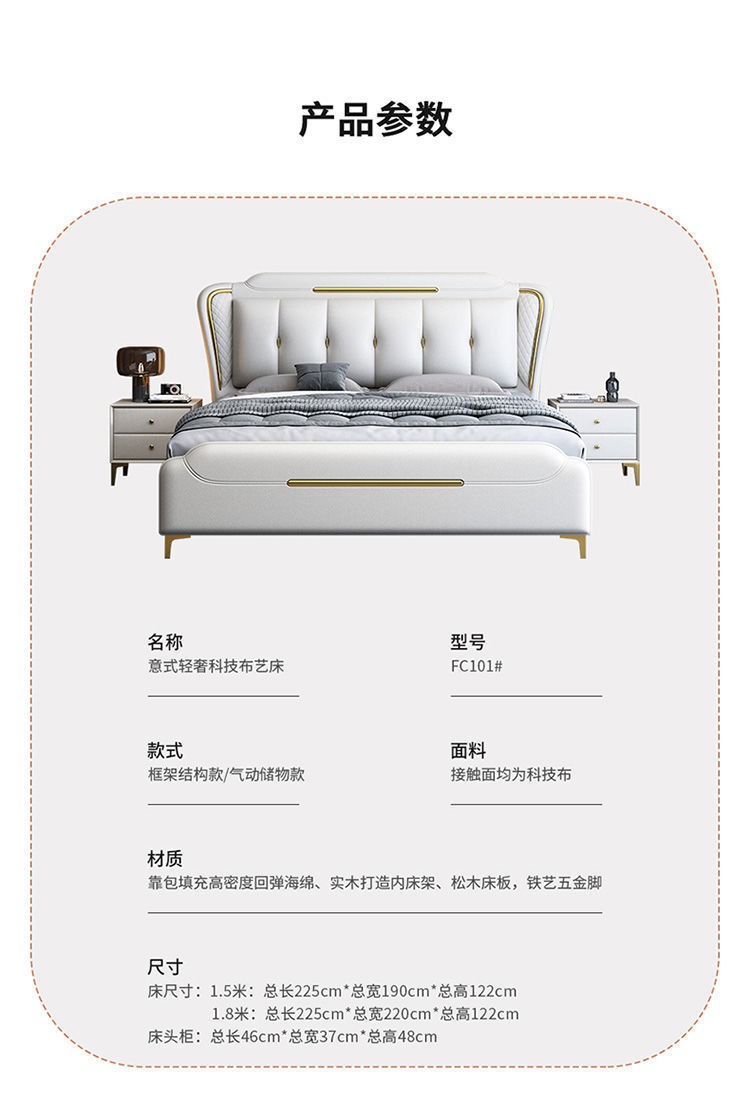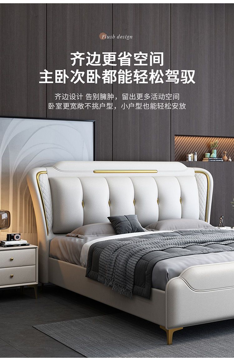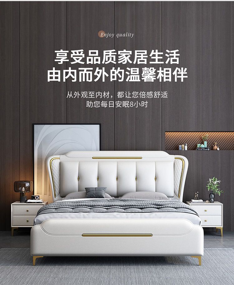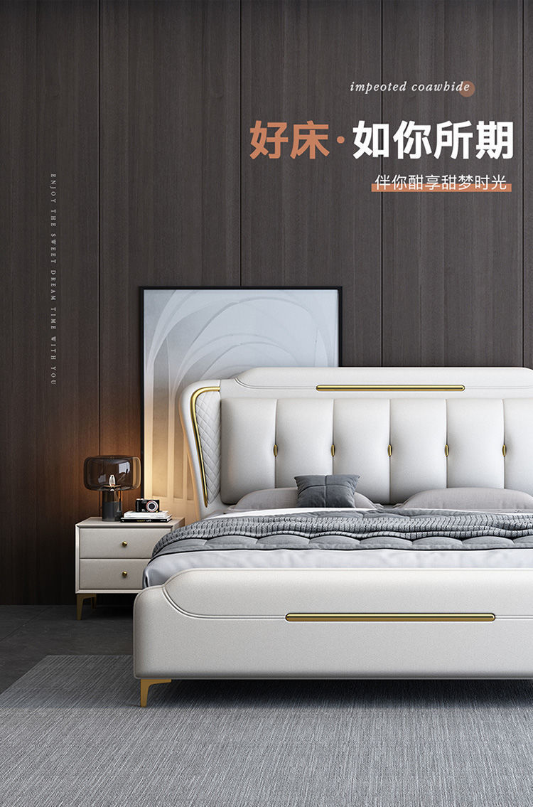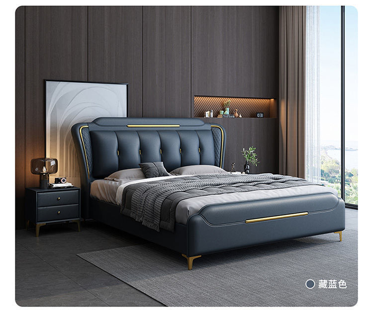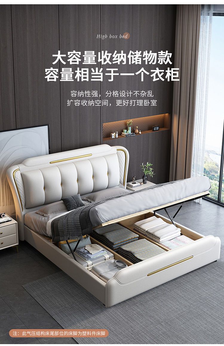 이탈리아 스타일의 가벼운 고급 가죽 침대 현대 간단한 더블 침대 마스터 침실 2 m 1.5 m 퀸 침대 1.8 m 웨딩 침대 미니멀리스트 가죽스토어 가기