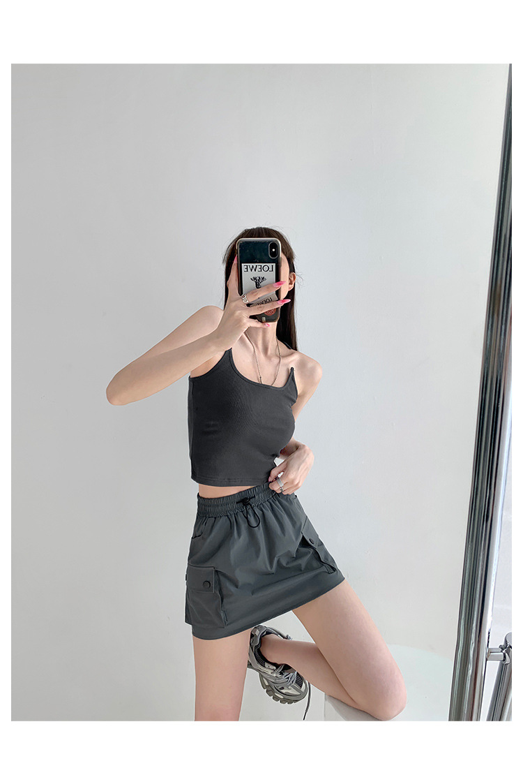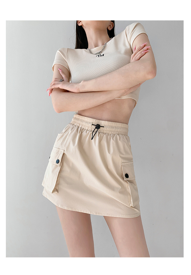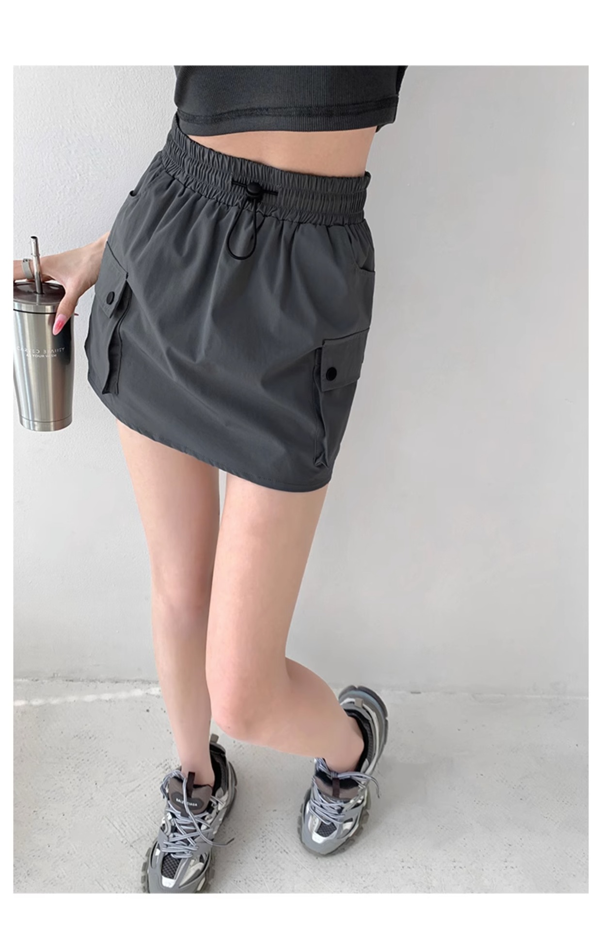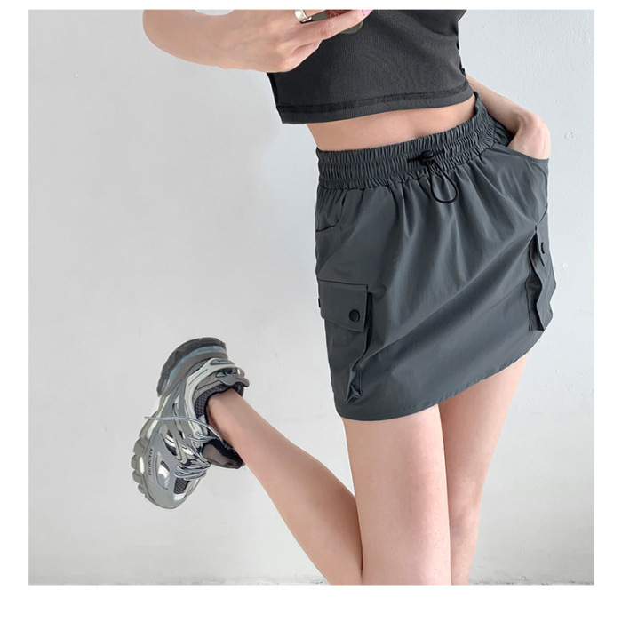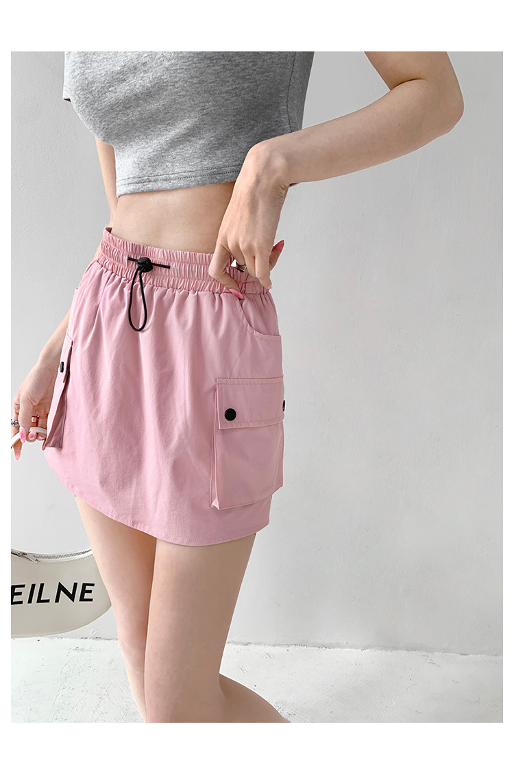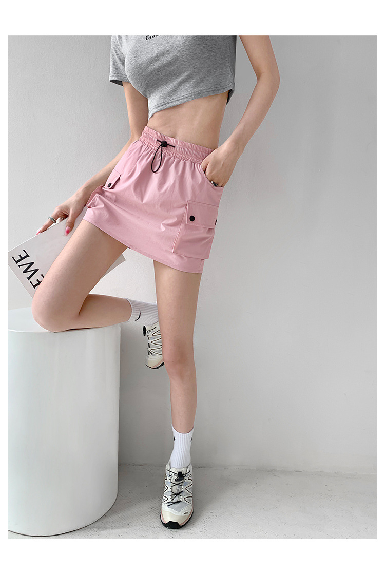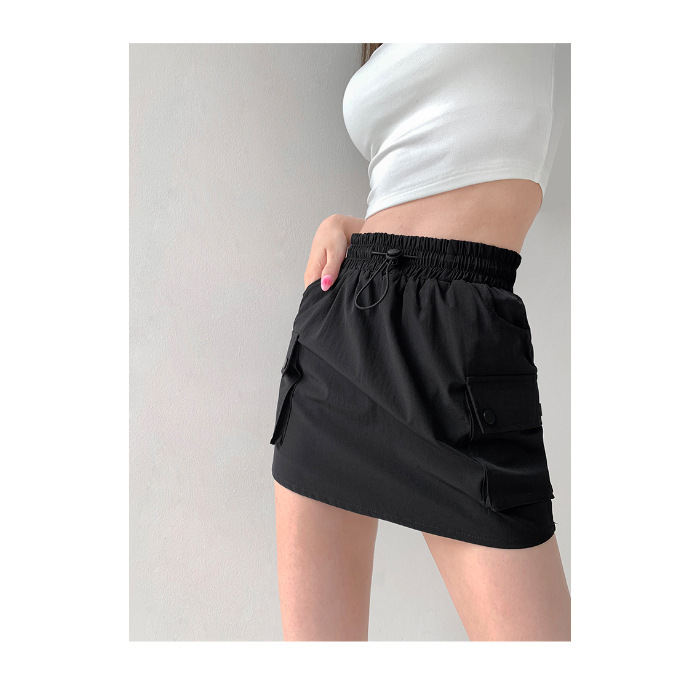 유럽과 미국의 거리 뜨거운 소녀 drawstring 탄성 허리 작업 스커트 복고풍 여름 슬리밍 대학 스타일 엉덩이 치마 조수