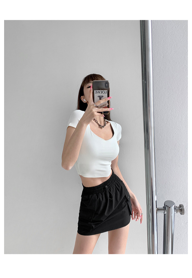 유럽과 미국의 거리 뜨거운 소녀 drawstring 탄성 허리 작업 스커트 복고풍 여름 슬리밍 대학 스타일 엉덩이 치마 조수스토어 가기