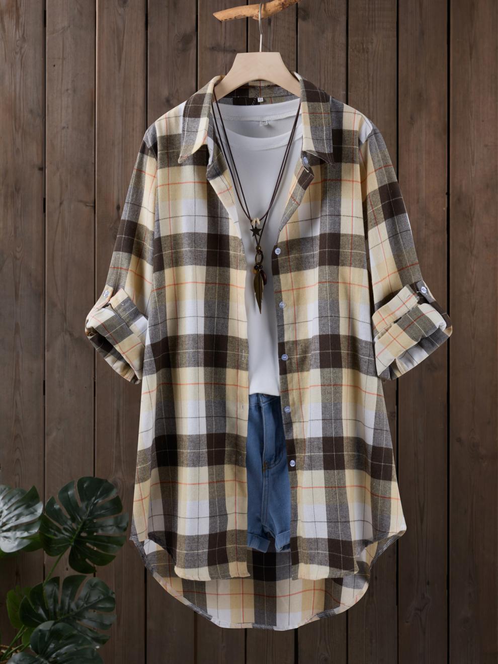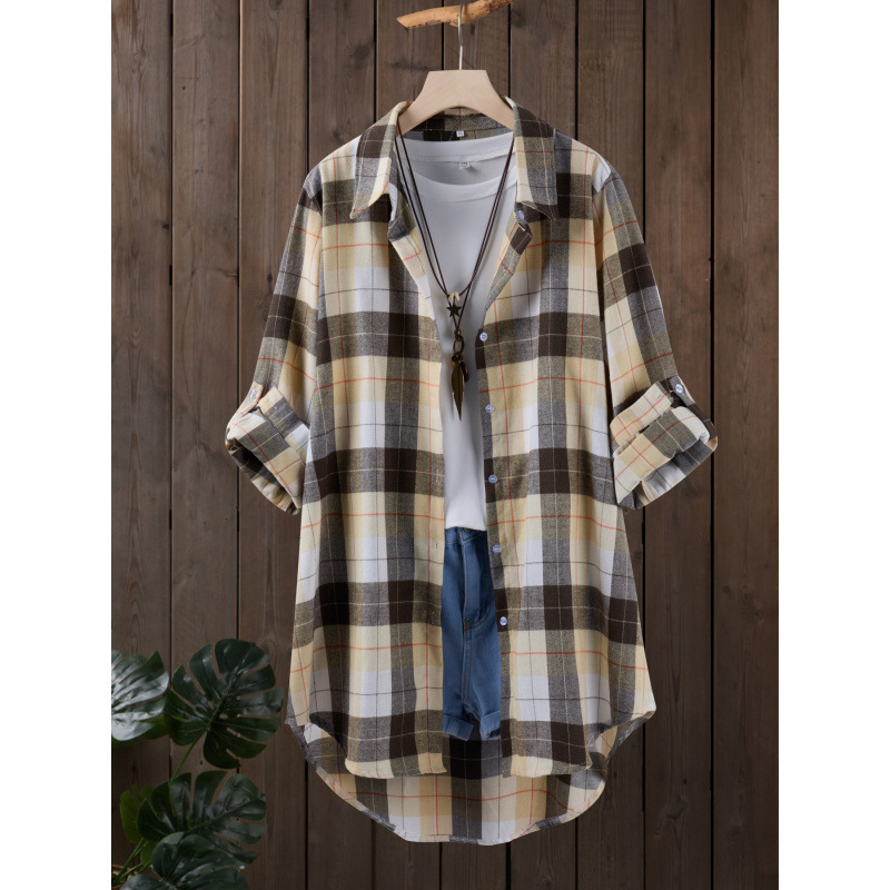 유럽과 미국의 플러스 사이즈 여성 의류 2025 봄 새로운 격자 무늬 셔츠 긴 소매 한국 스타일 느슨한 다목적 셔츠스토어 가기