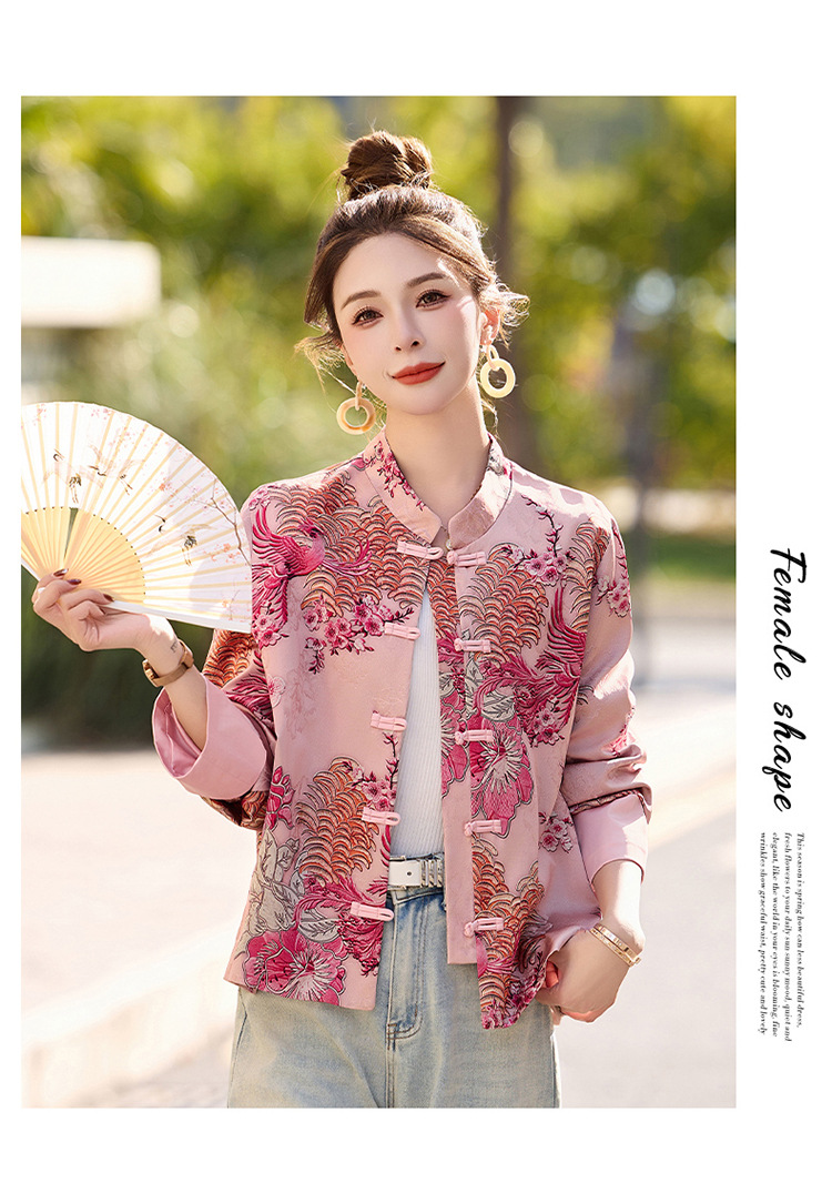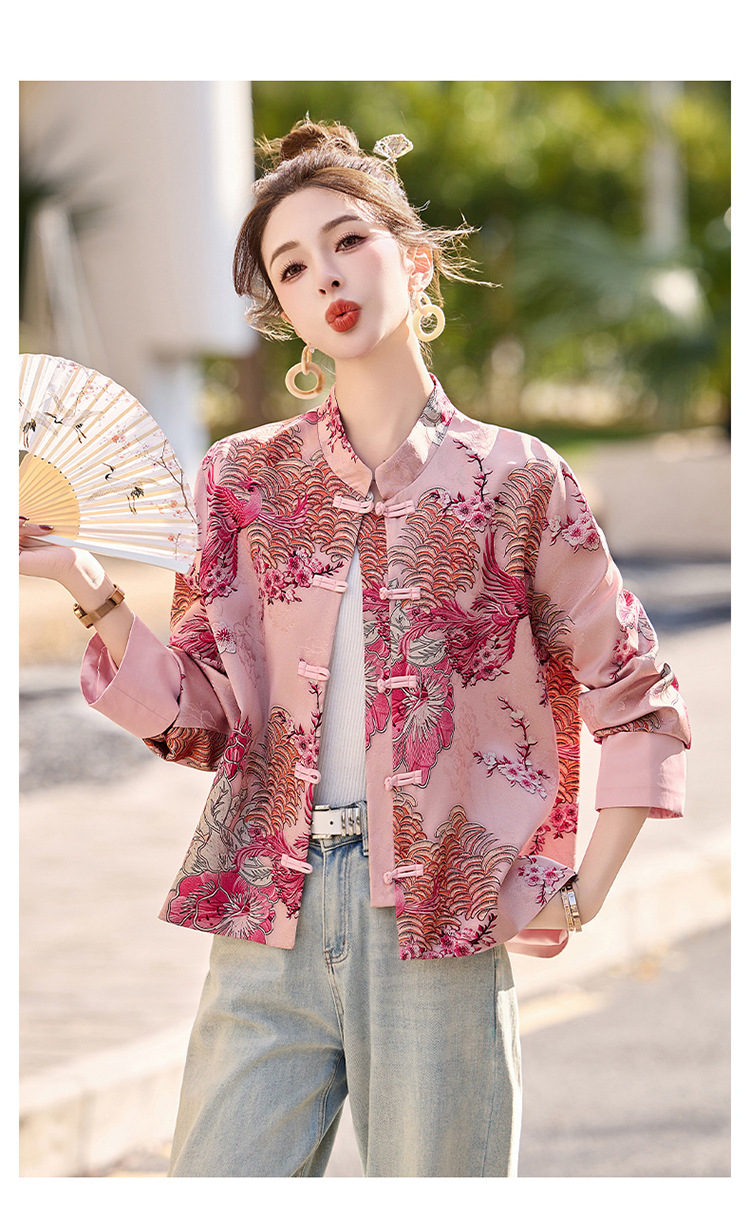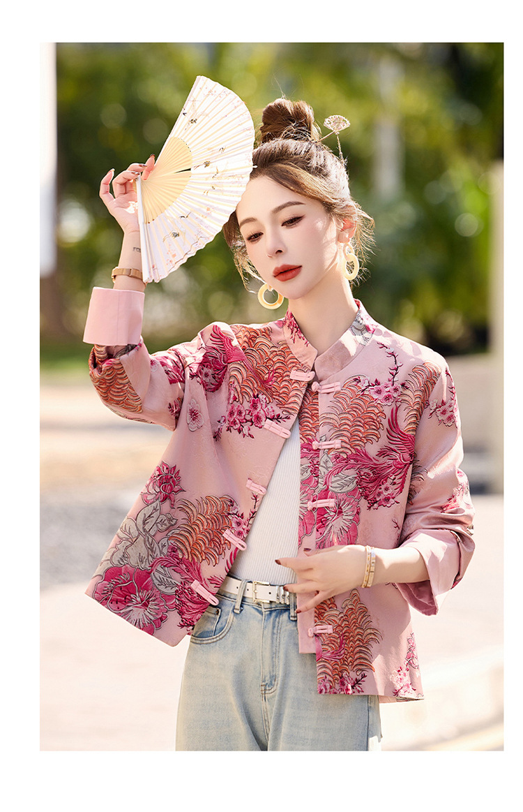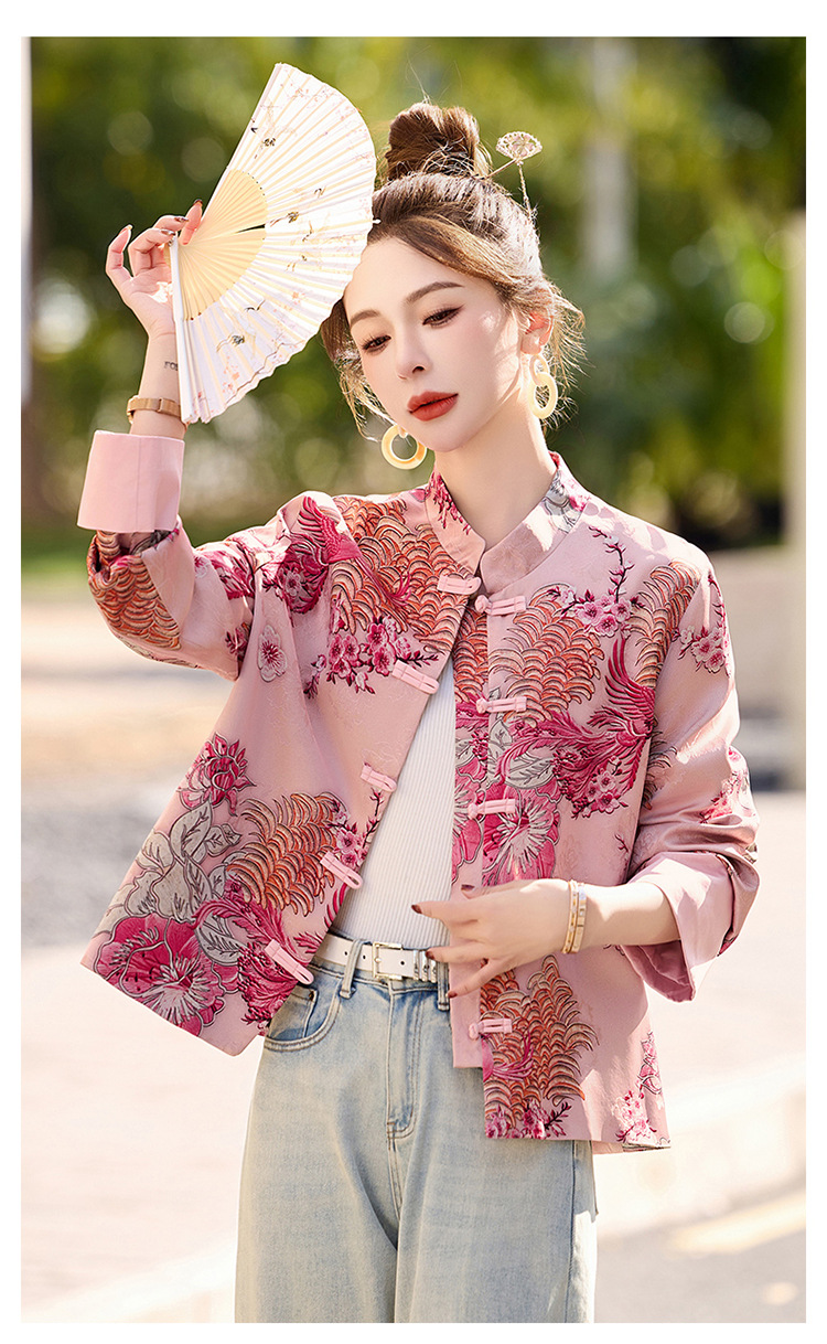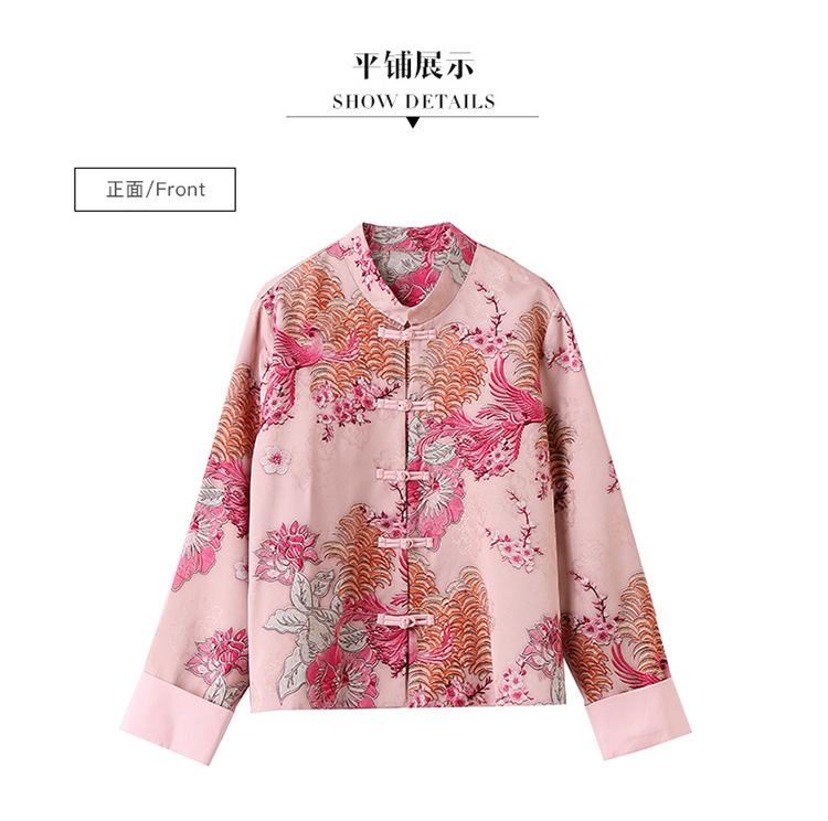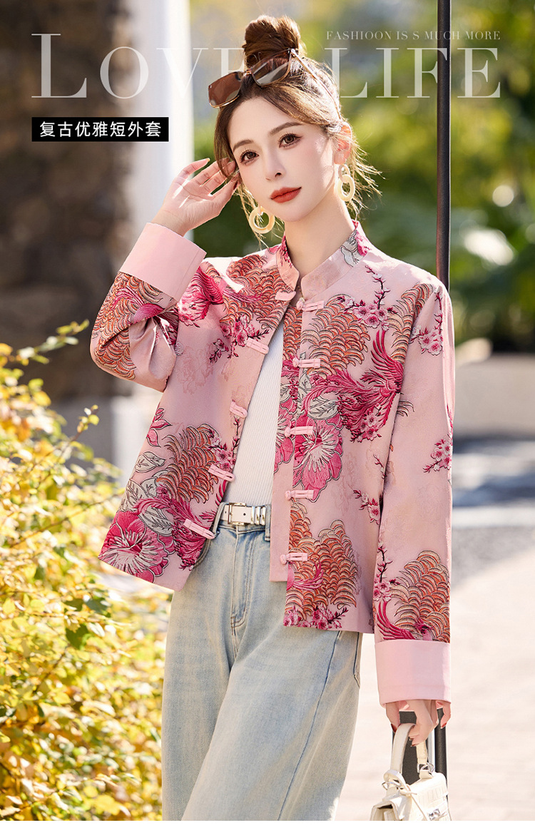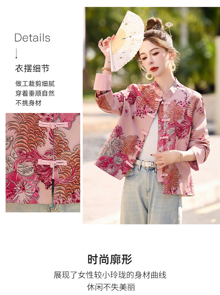 새로운 중국 스타일 국가 스타일 코트 여성의 2025 봄과 가을 새로운 디자인 복고풍 우아한 중공업 버튼 자카드 탑스토어 가기