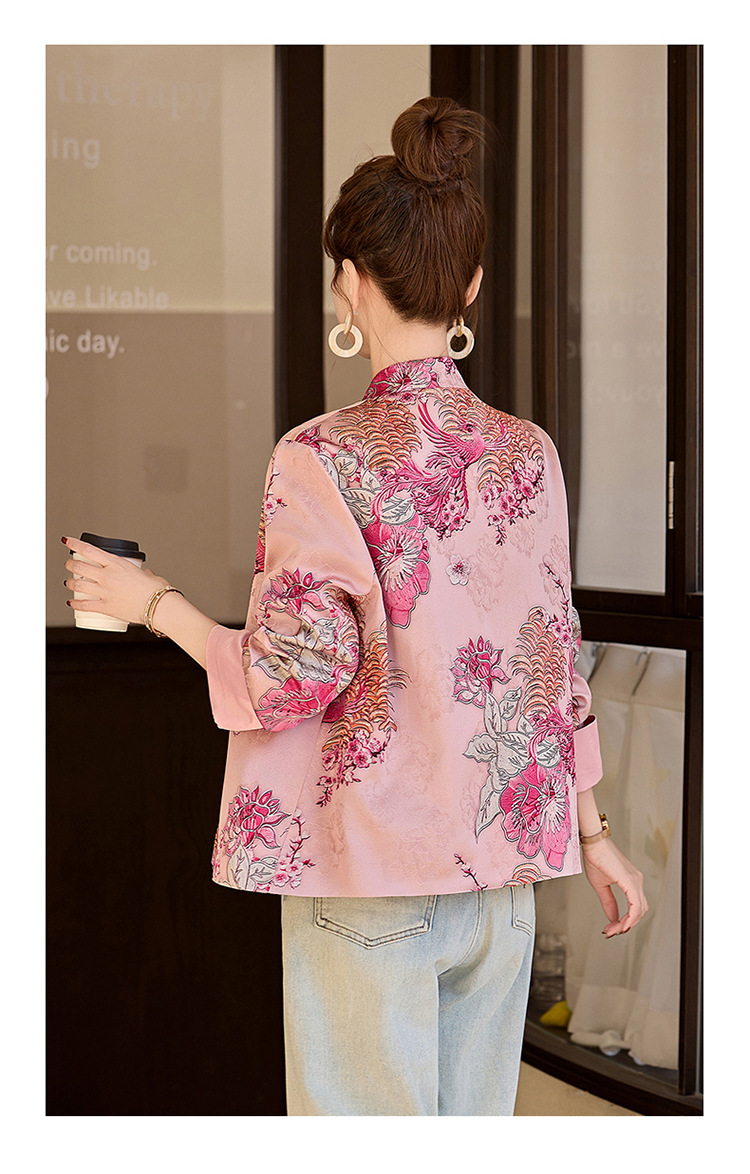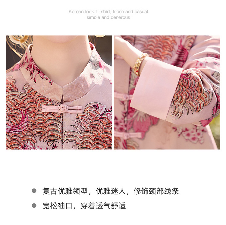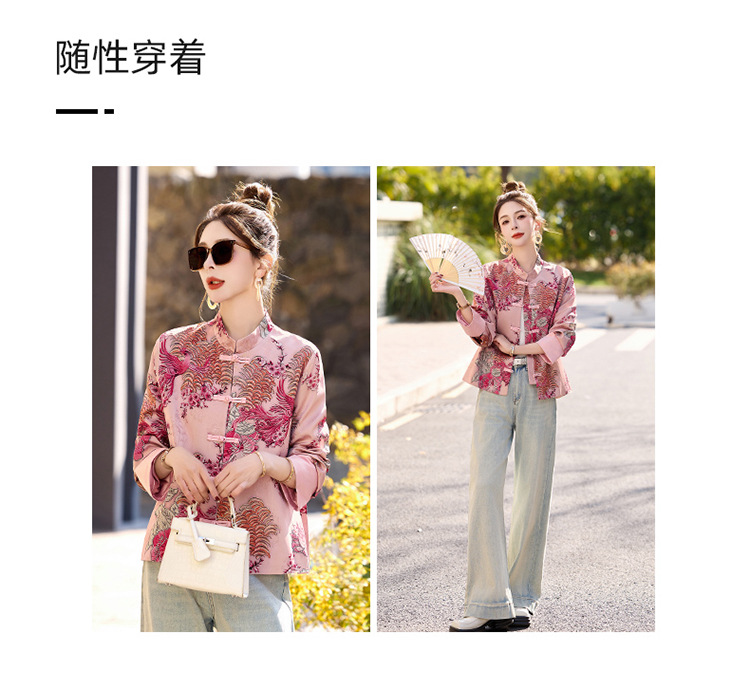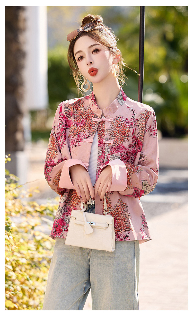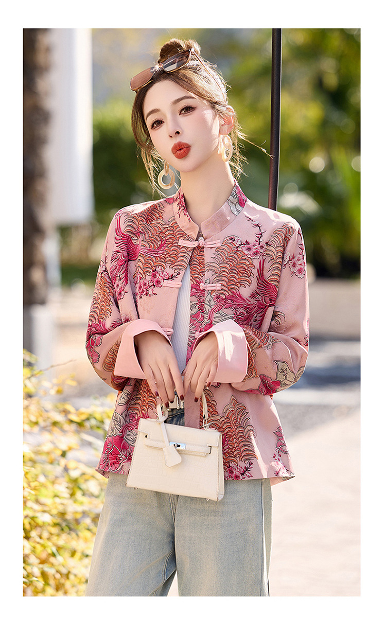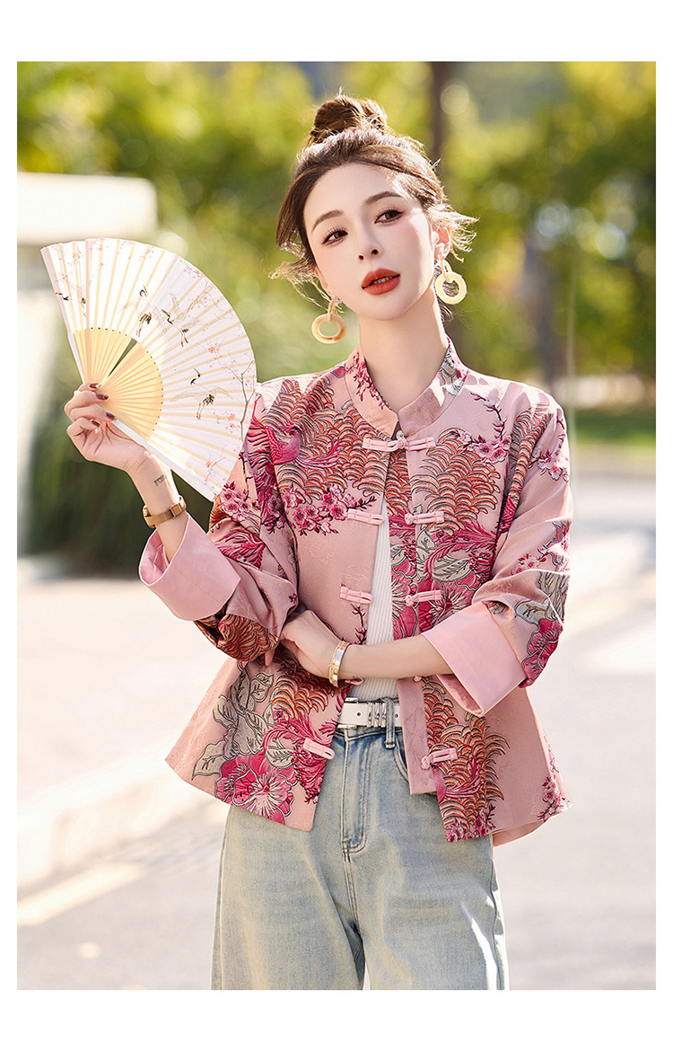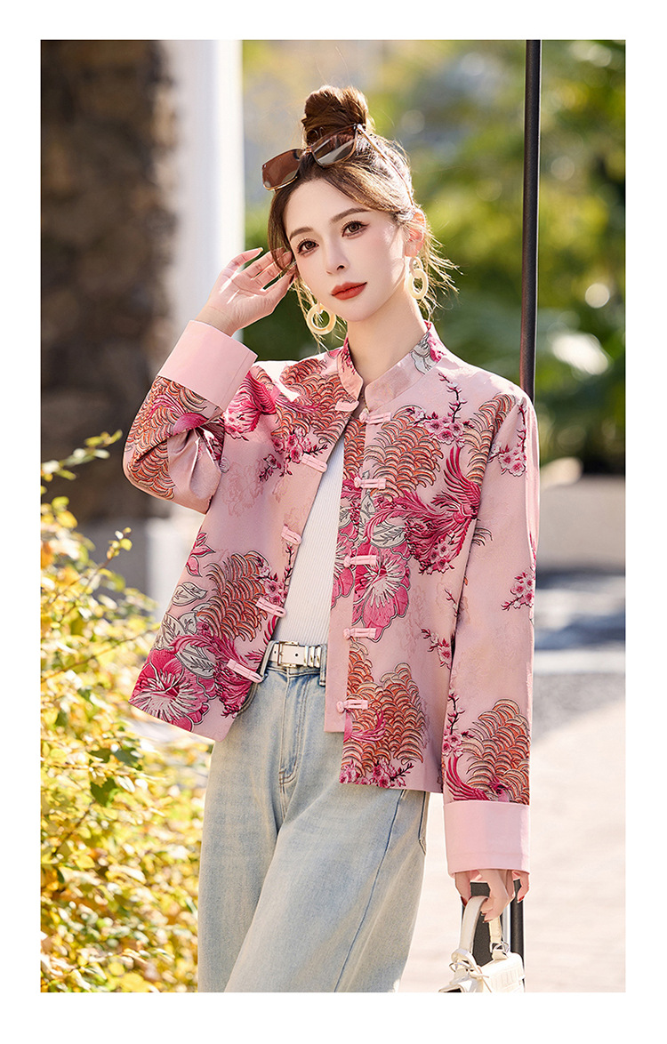 새로운 중국 스타일 국가 스타일 코트 여성의 2025 봄과 가을 새로운 디자인 복고풍 우아한 중공업 버튼 자카드 탑스토어 가기