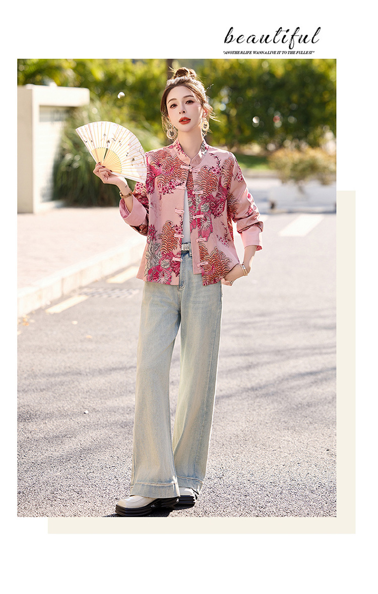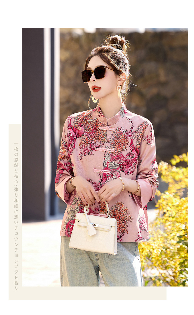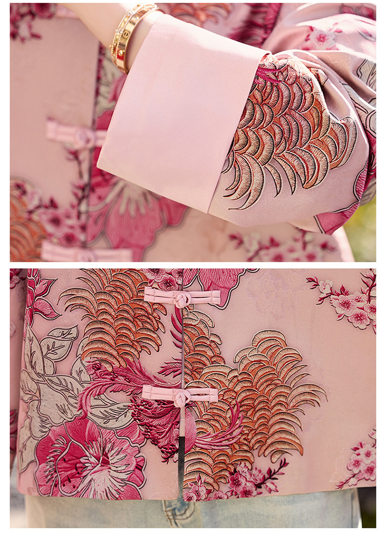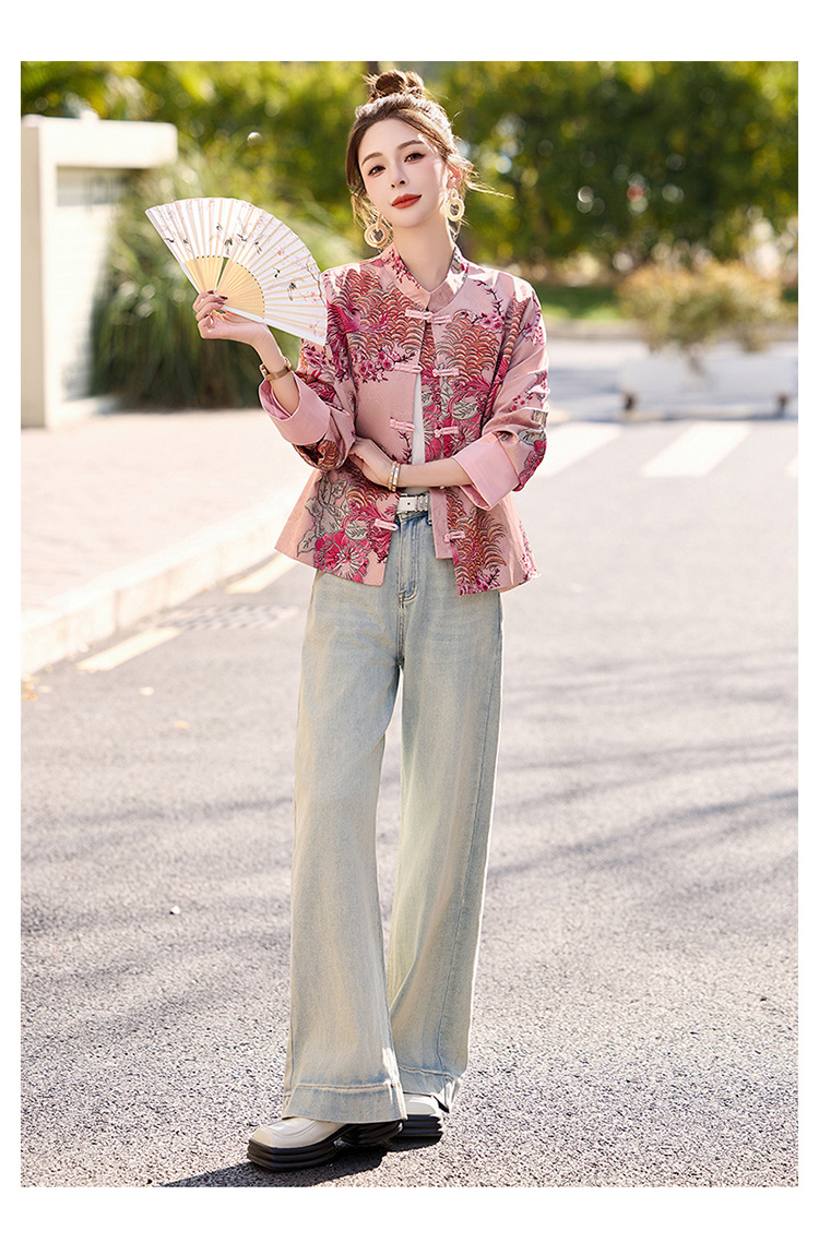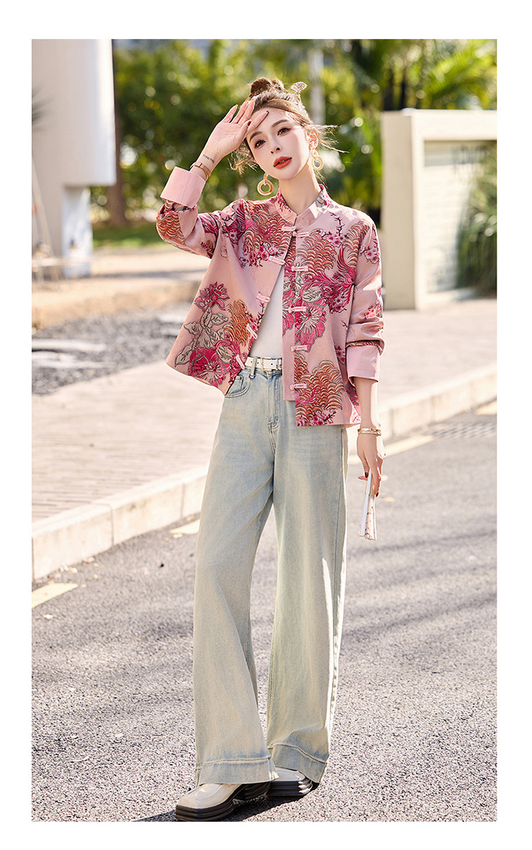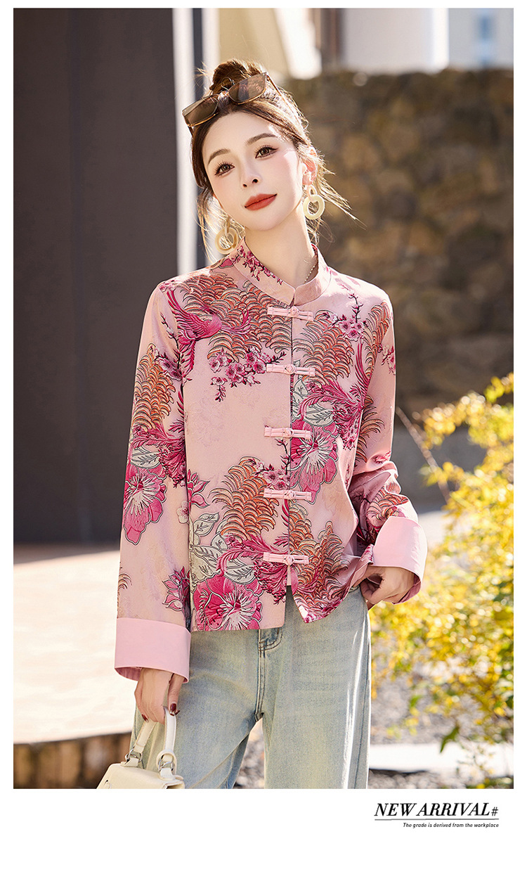 새로운 중국 스타일 국가 스타일 코트 여성의 2025 봄과 가을 새로운 디자인 복고풍 우아한 중공업 버튼 자카드 탑스토어 가기
