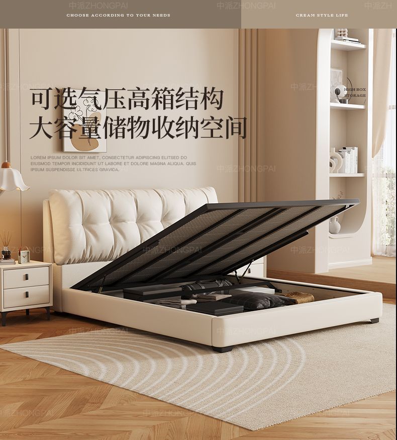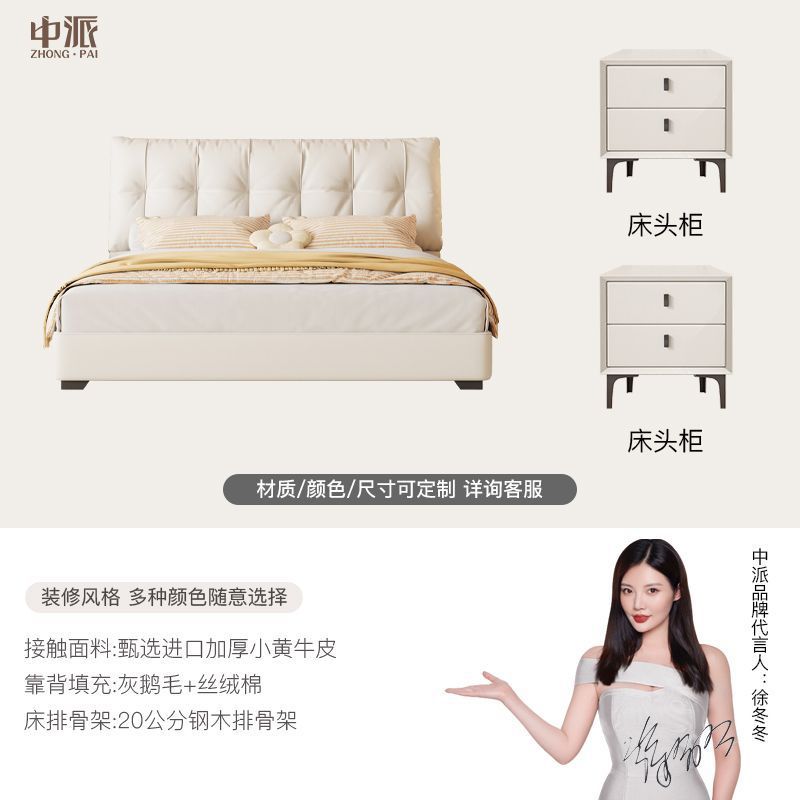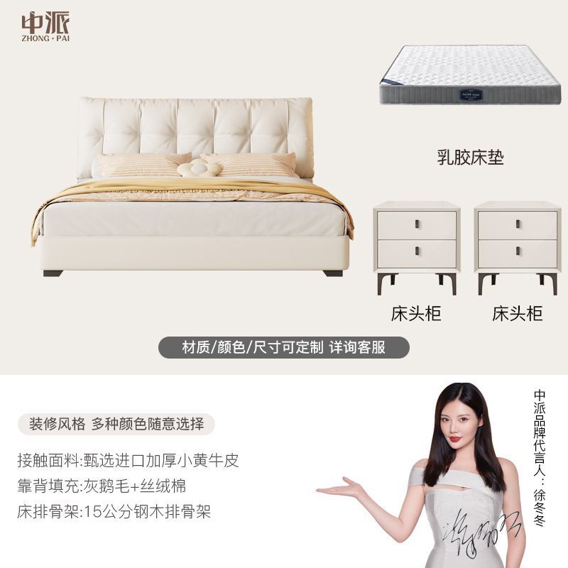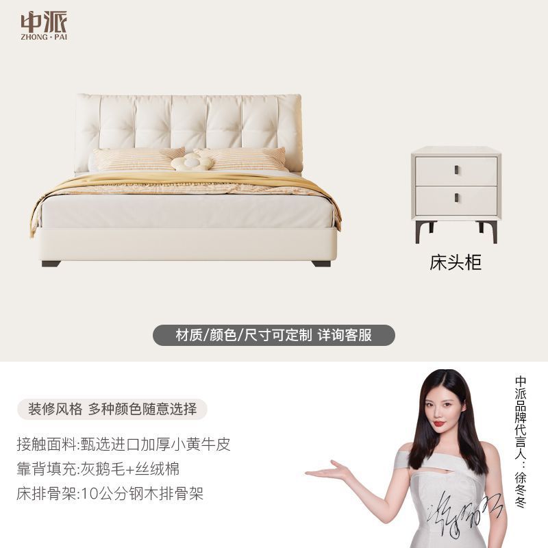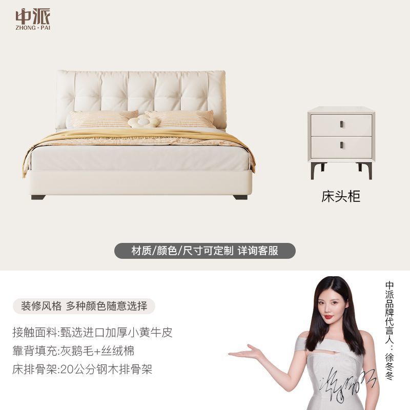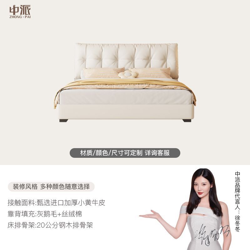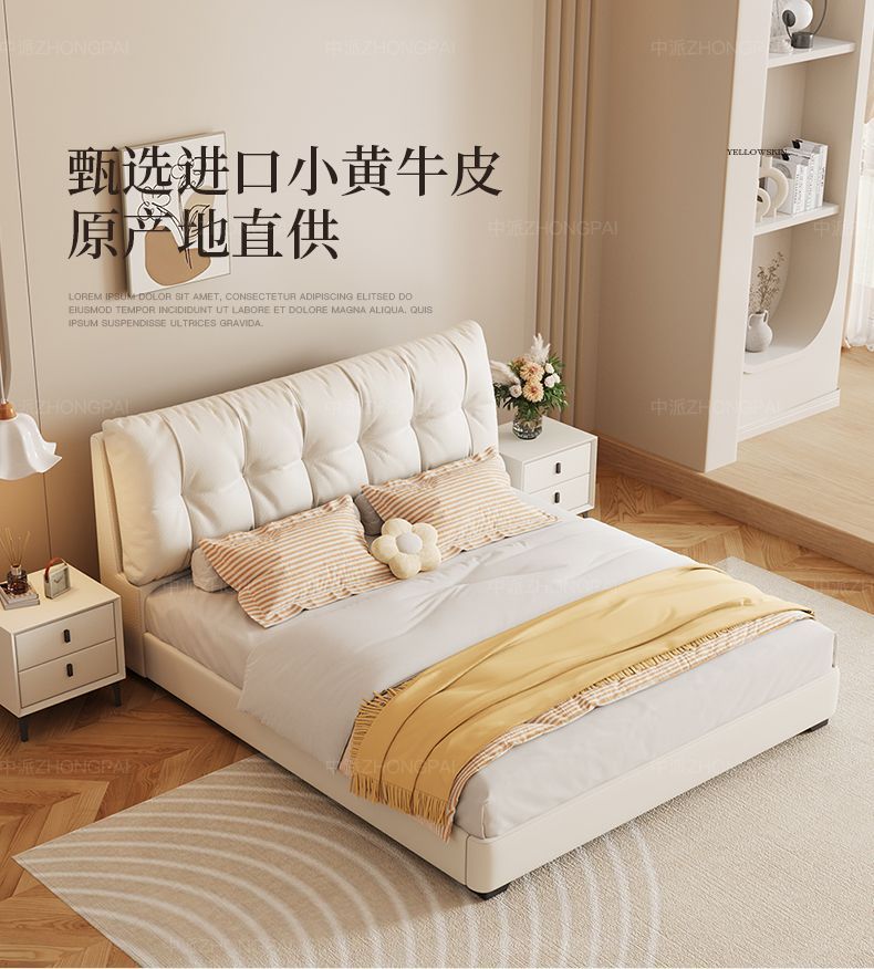 [브랜드 핫 판매 10.968 백만 조각] 중국 현대 단순 정품 가죽 구름 침대 프렌치 크림 스타일 라이트 럭셔리