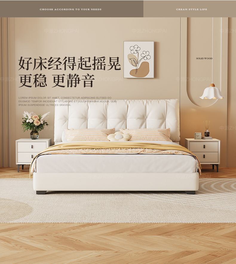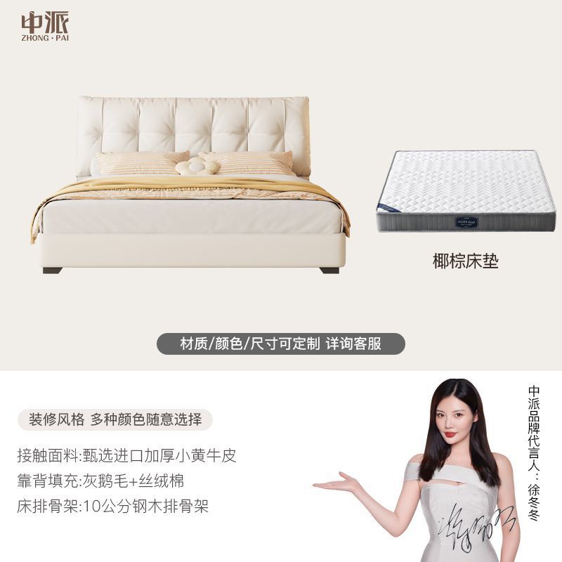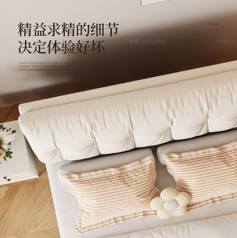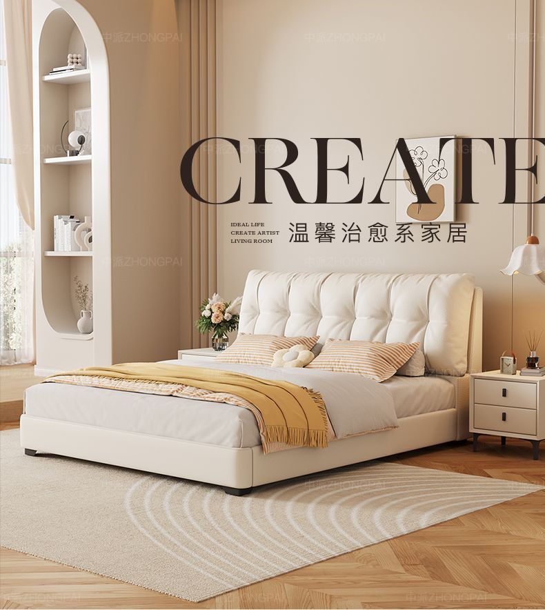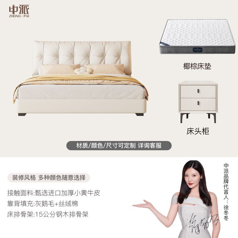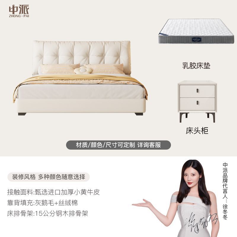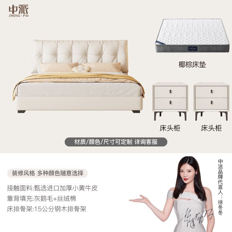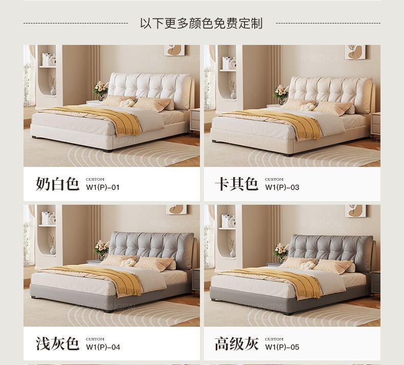 [브랜드 핫 판매 10.968 백만 조각] 중국 현대 단순 정품 가죽 구름 침대 프렌치 크림 스타일 라이트 럭셔리
