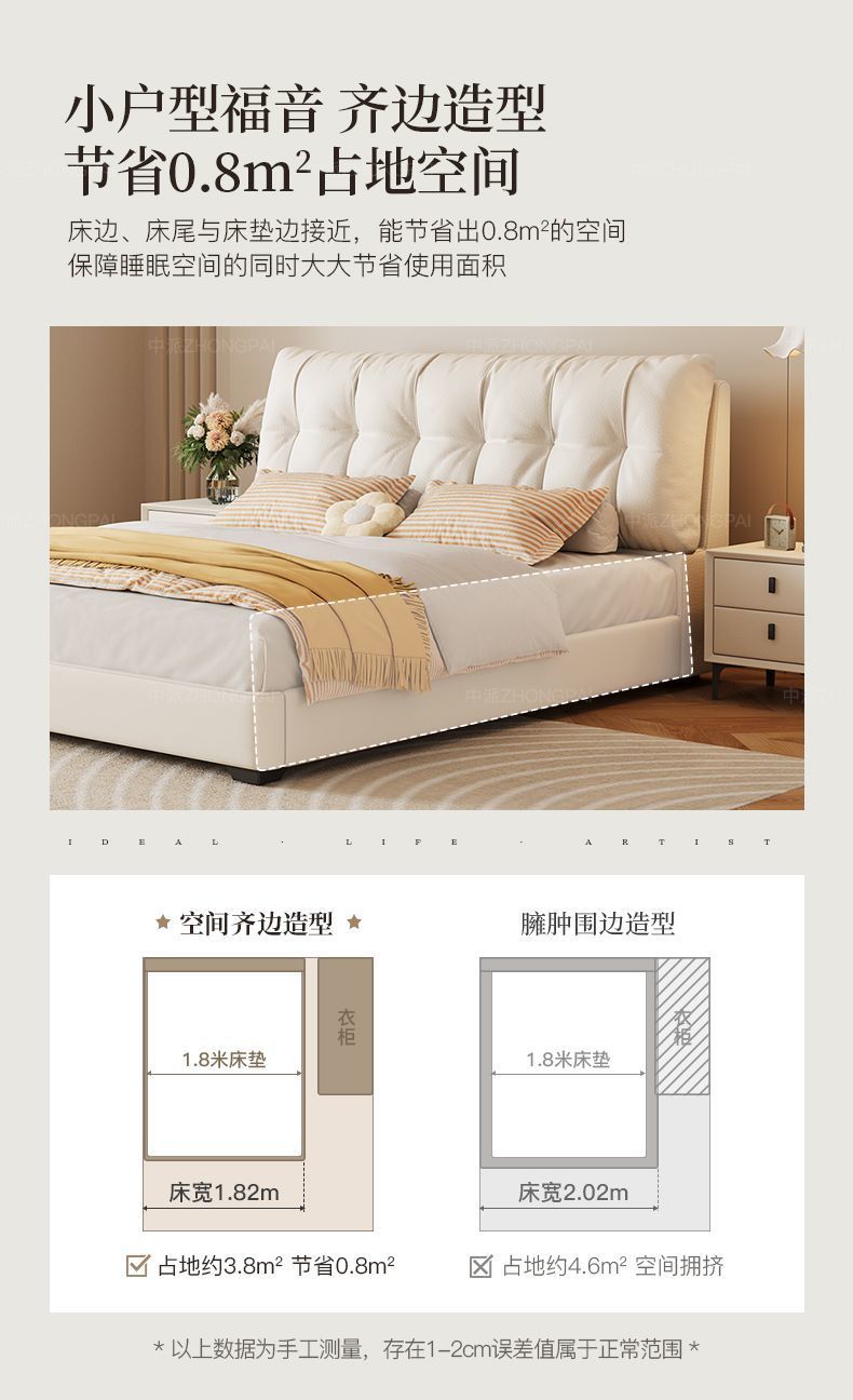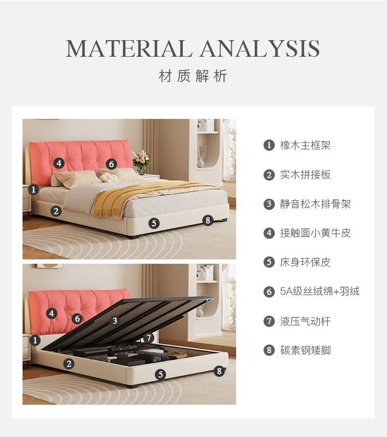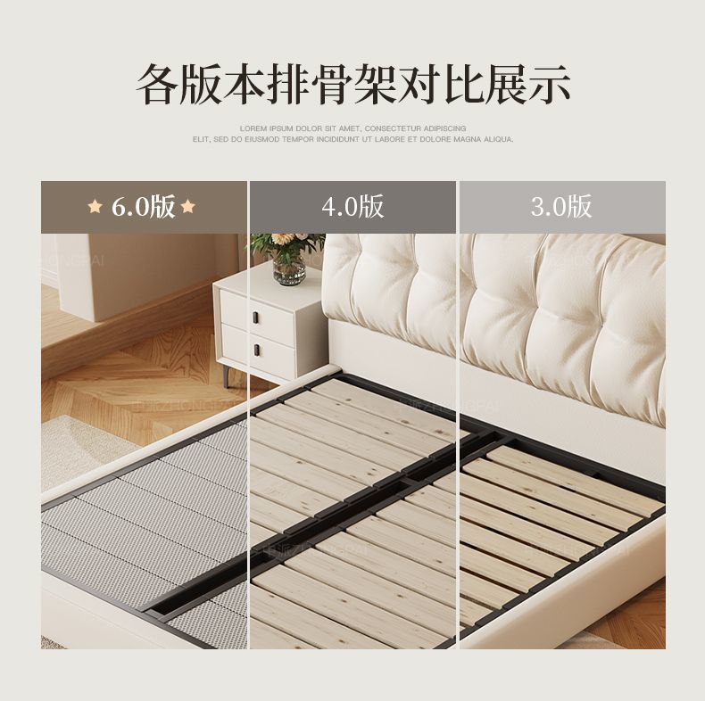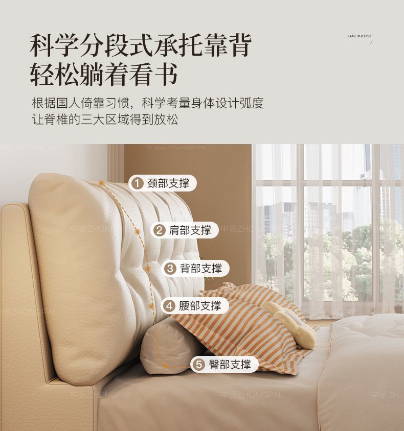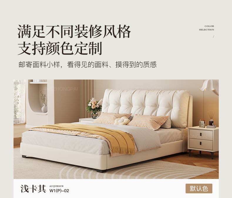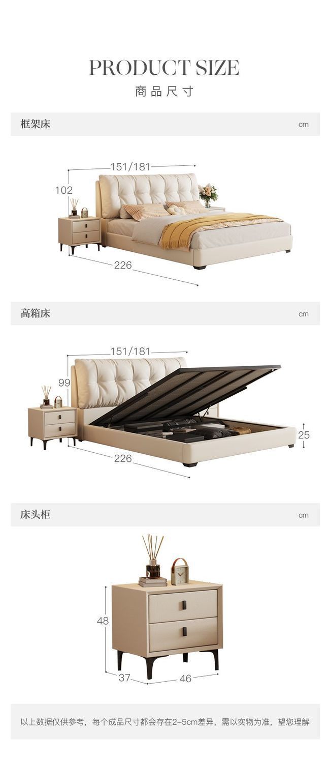 [브랜드 핫 판매 10.968 백만 조각] 중국 현대 단순 정품 가죽 구름 침대 프렌치 크림 스타일 라이트 럭셔리