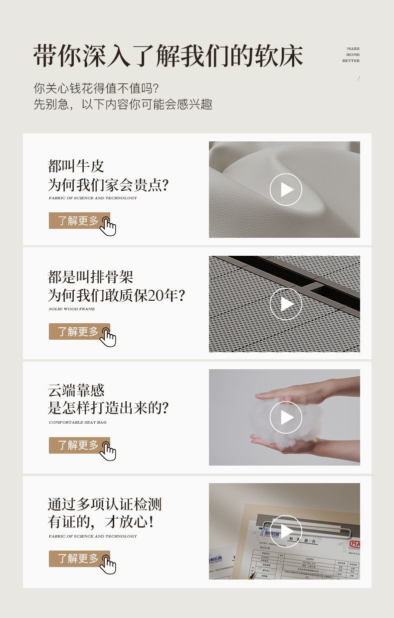 [브랜드 핫 판매 10.968 백만 조각] 중국 현대 단순 정품 가죽 구름 침대 프렌치 크림 스타일 라이트 럭셔리스토어 가기