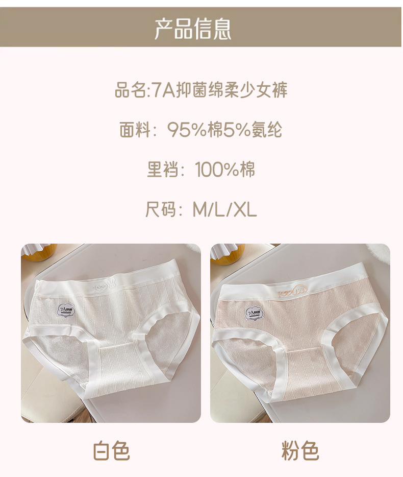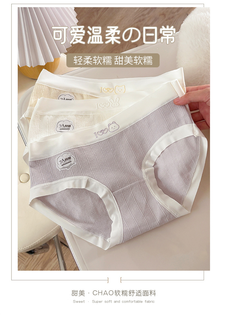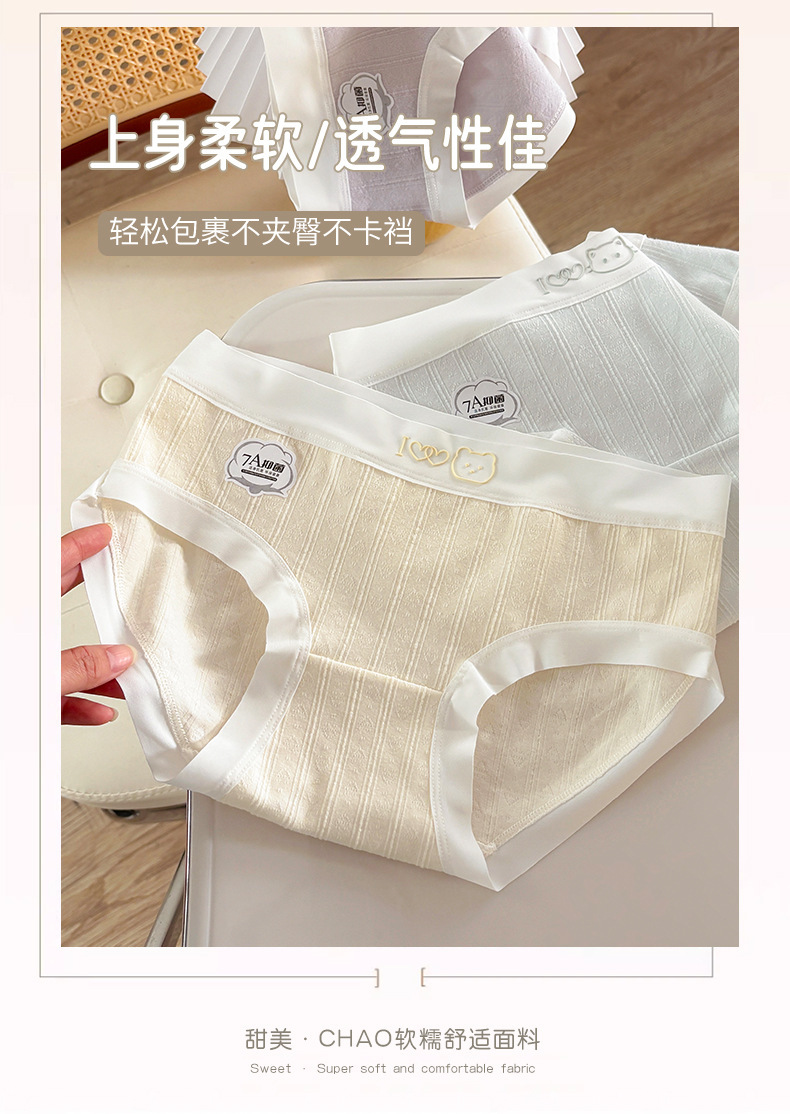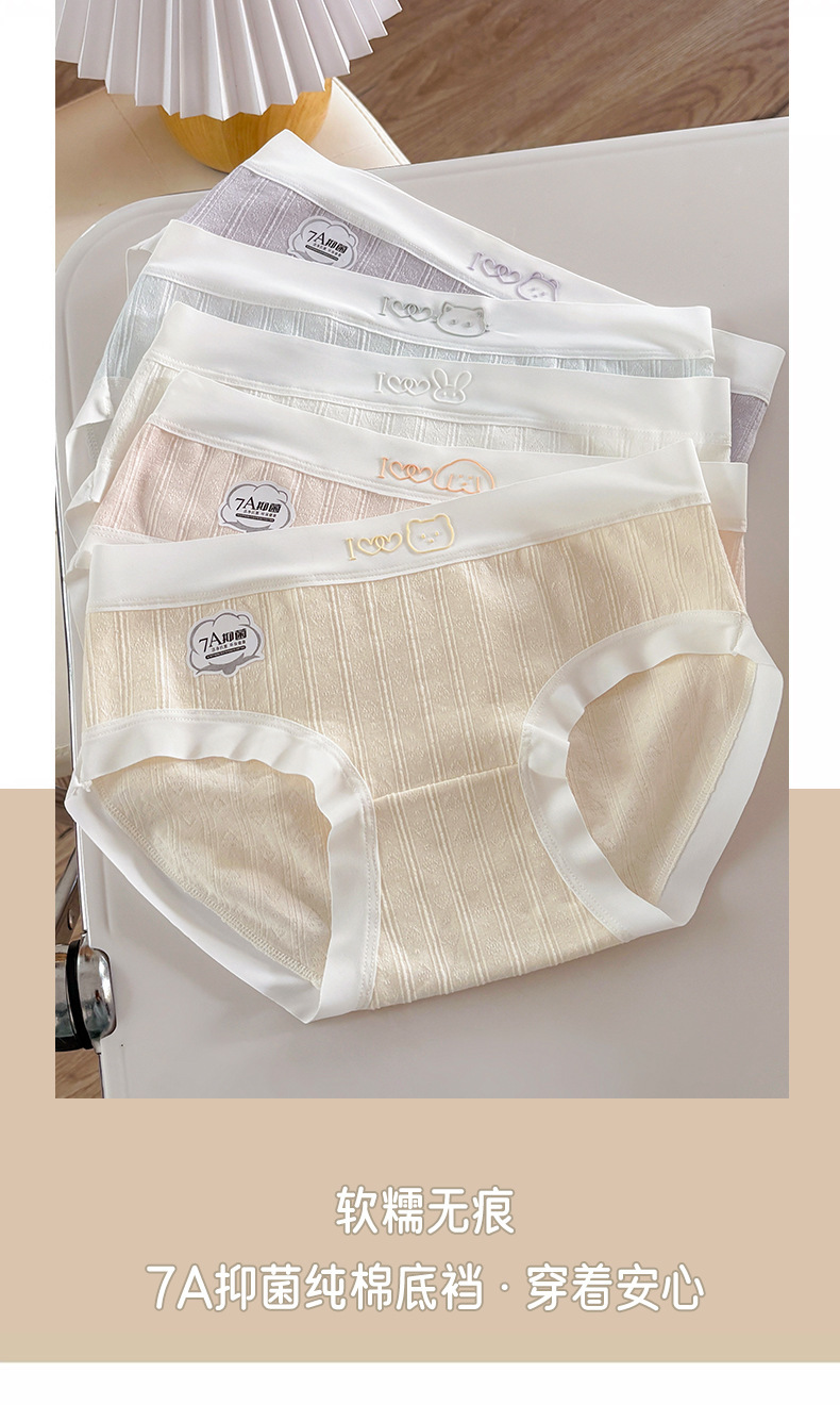 7A Bacteriostic 소녀 편안한 피부 친화적 인 높은 탄성 단색 경량 통기성 중간 허리 새끼 고양이 크로트 여성 브리프