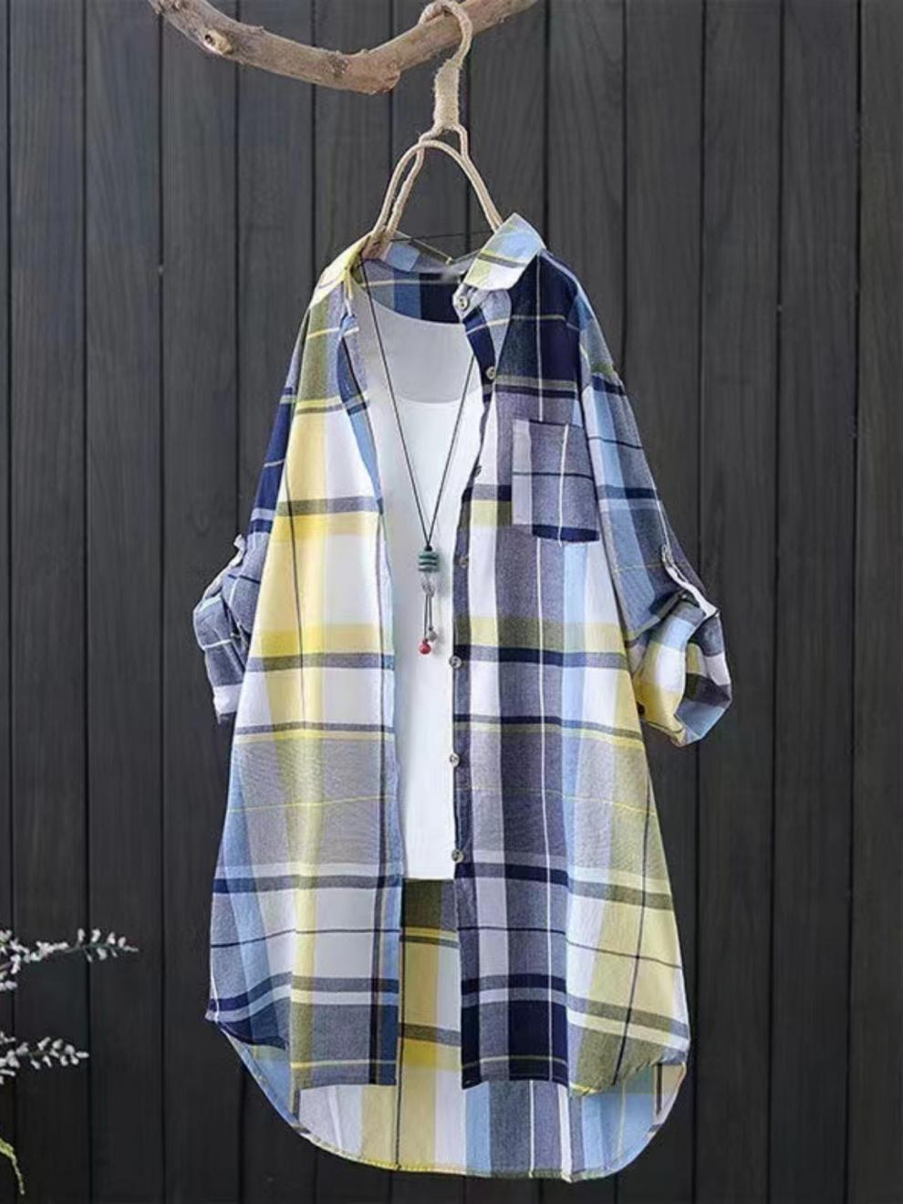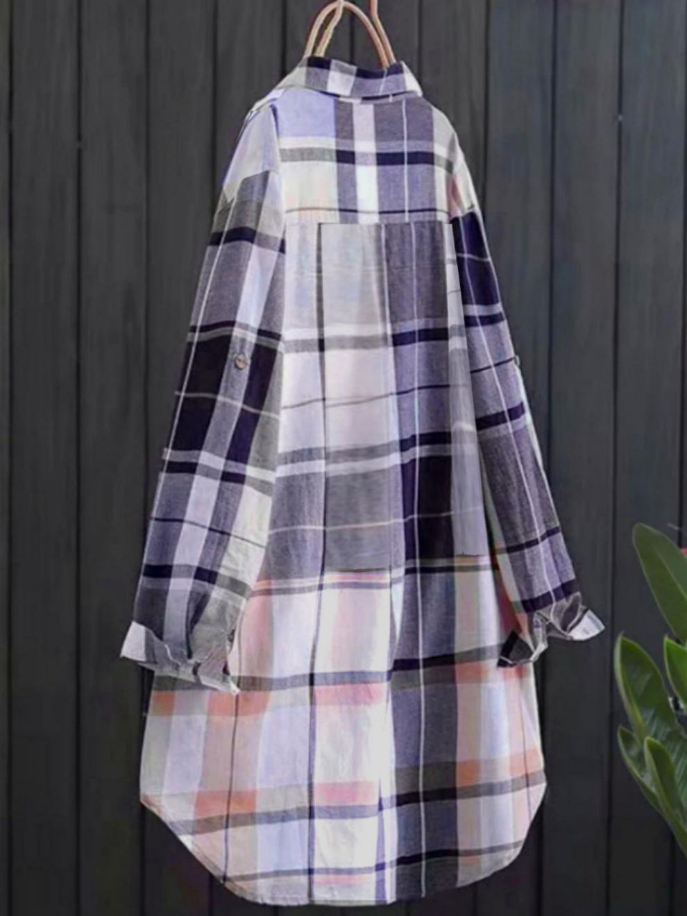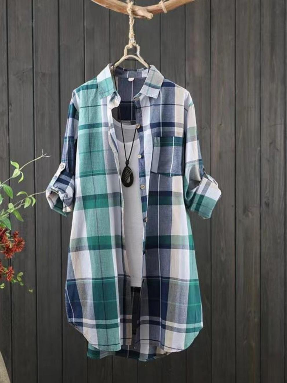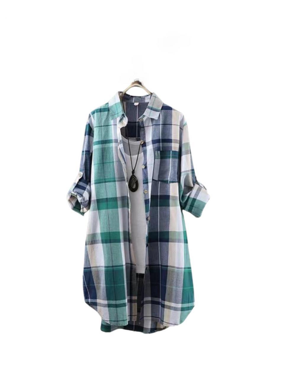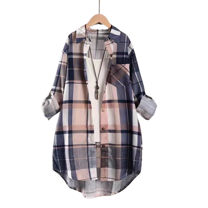 유럽과 미국의 플러스 사이즈 격자 무늬 셔츠 여자의 2024 긴팔 레트로 탑 느슨한 올매치 슬리밍 화려한 셔츠 카디건스토어 가기