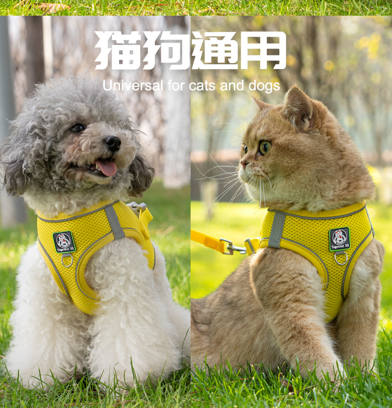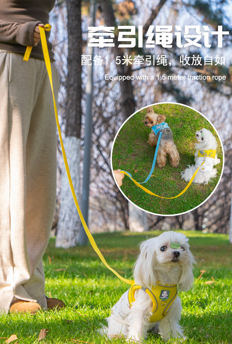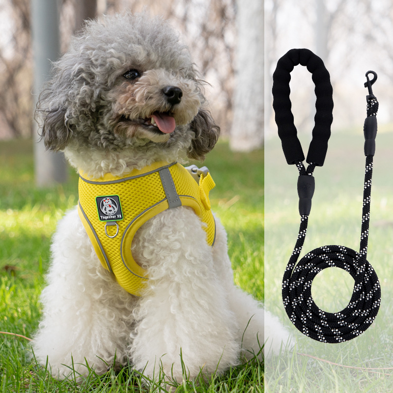 • 노란색 하네스 - 1.5m 검정색 반사 원형 로프