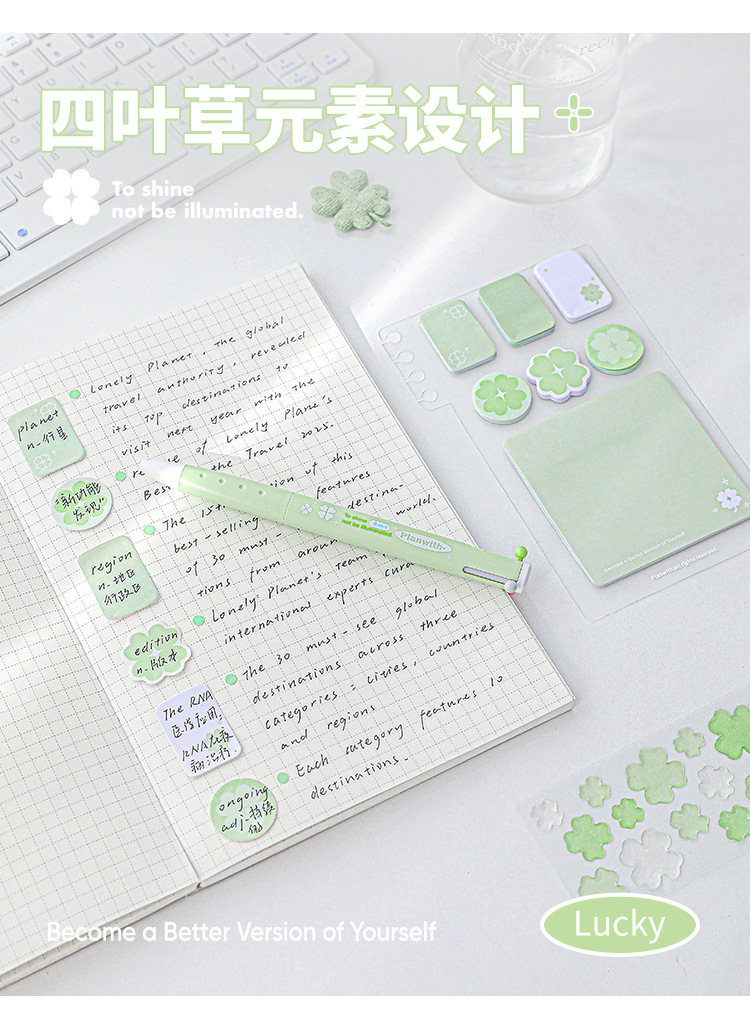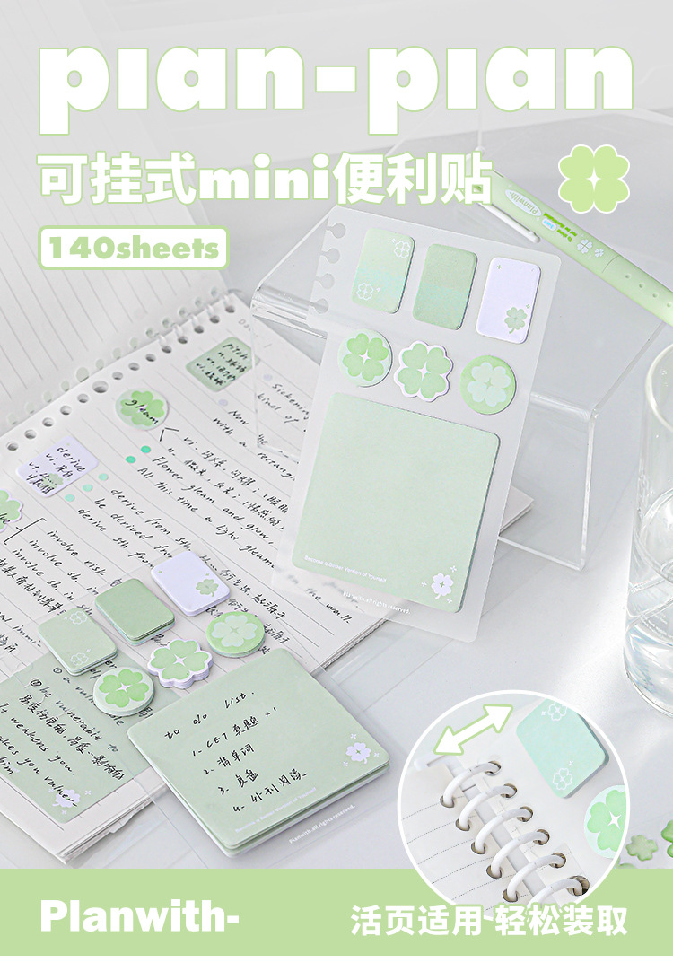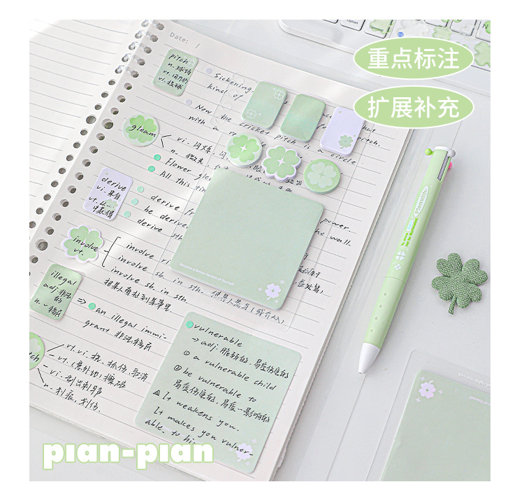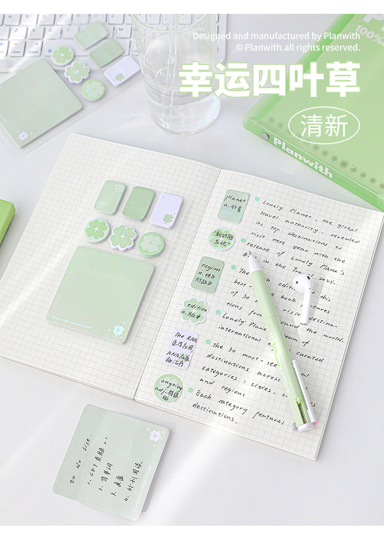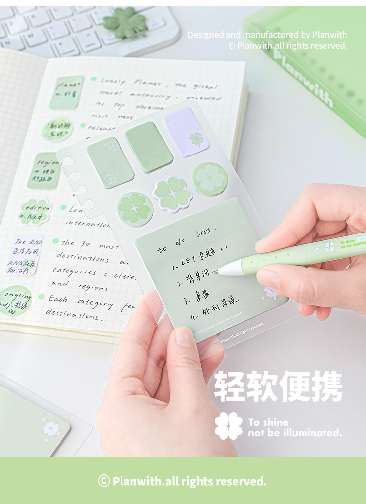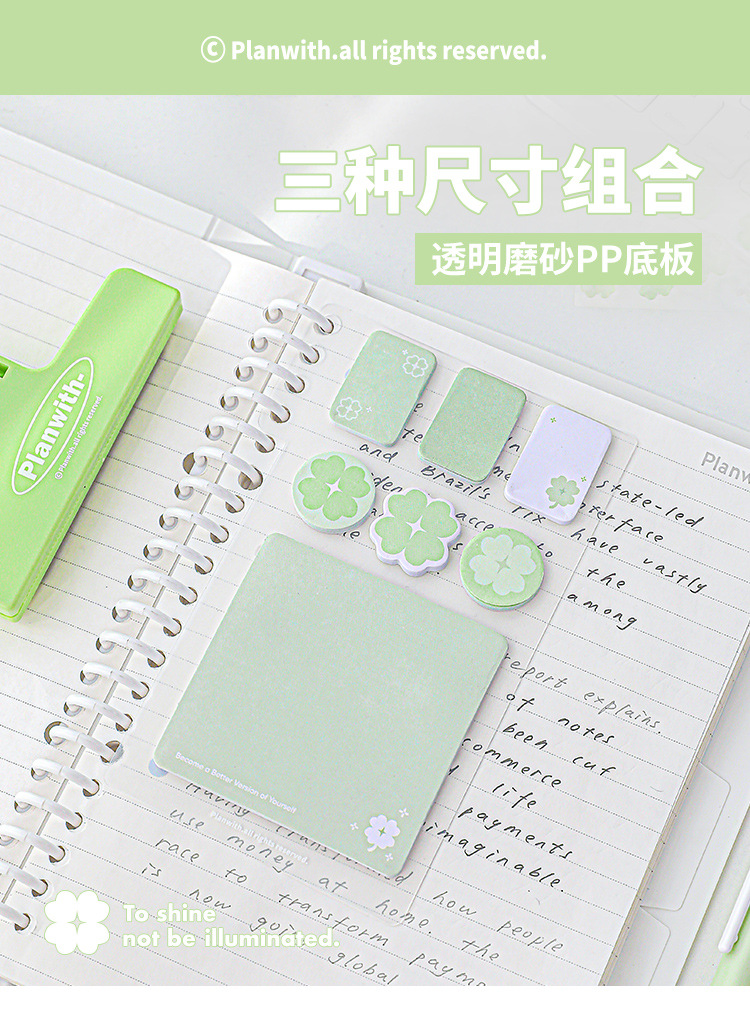 Planwith Loose-leaf 노트북 사용 가능한 4 잎 클로버 포스트잇 노트 강조 다기능 휴대용 노트 마커