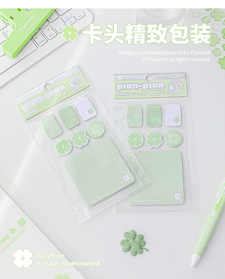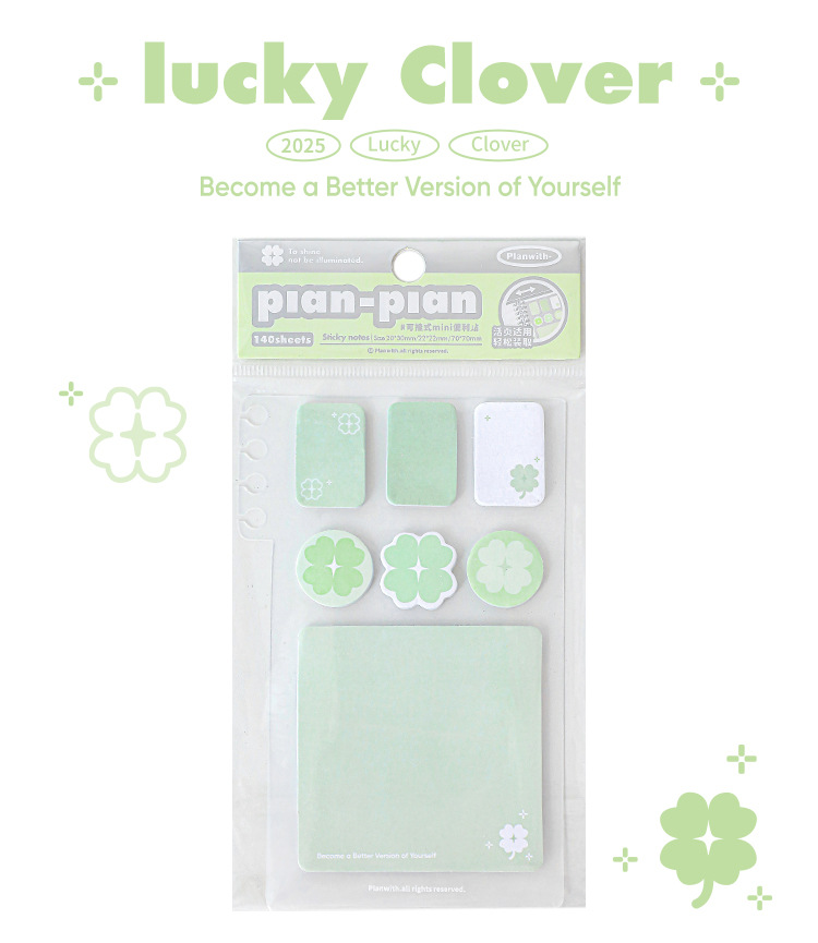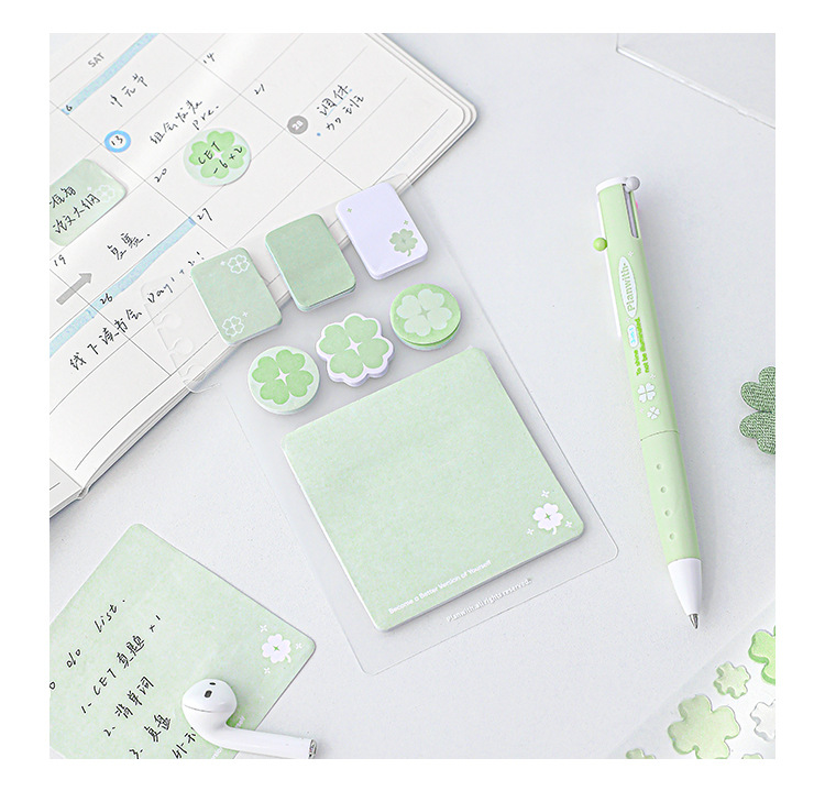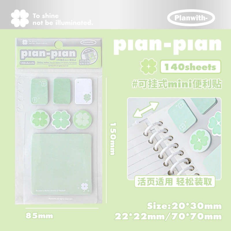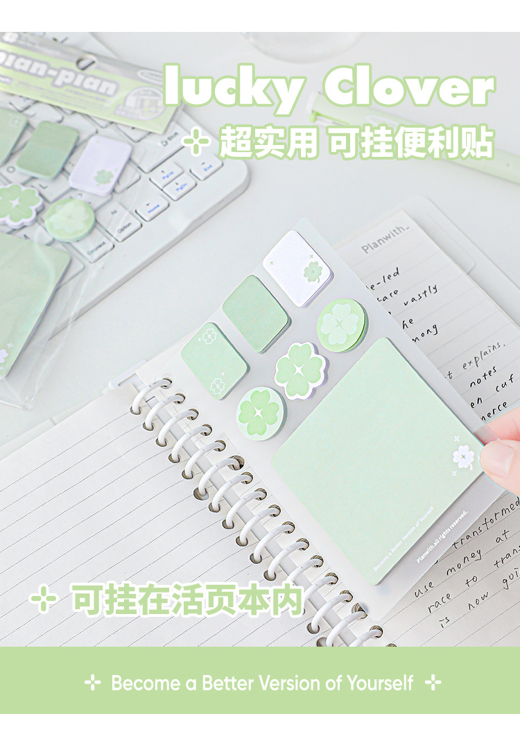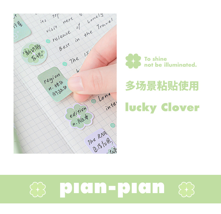 Planwith Loose-leaf 노트북 사용 가능한 4 잎 클로버 포스트잇 노트 강조 다기능 휴대용 노트 마커