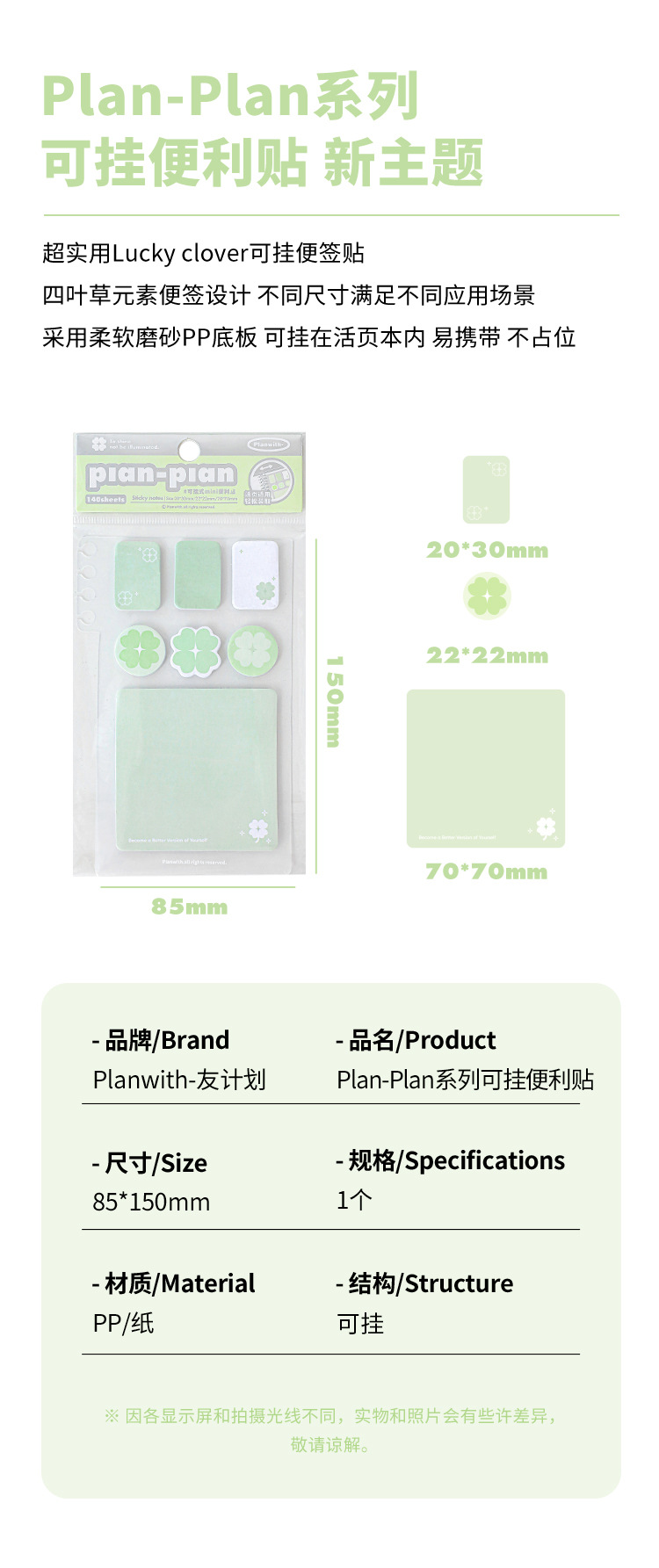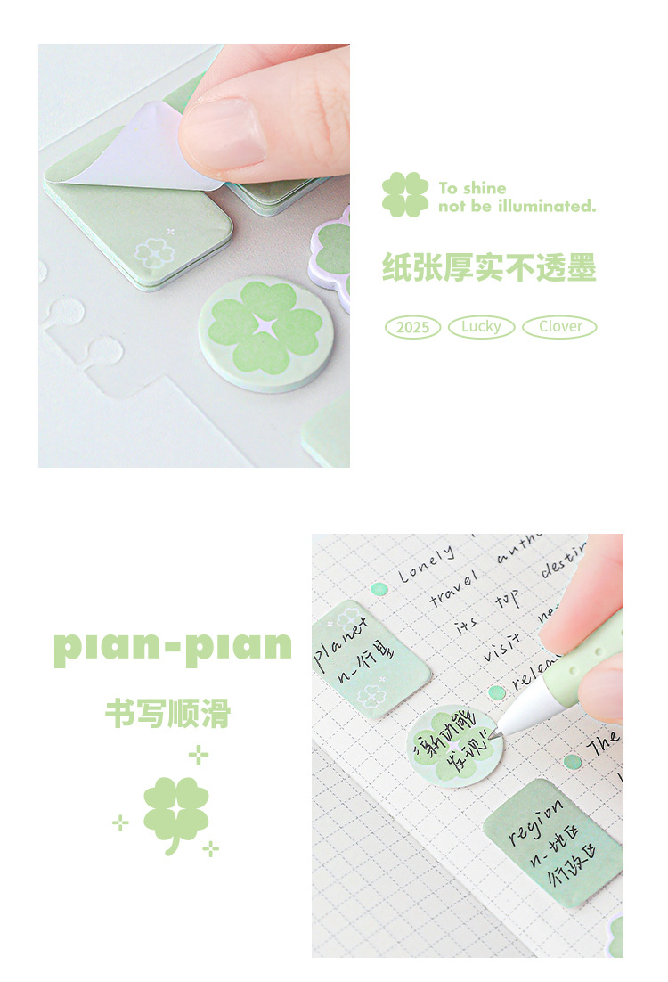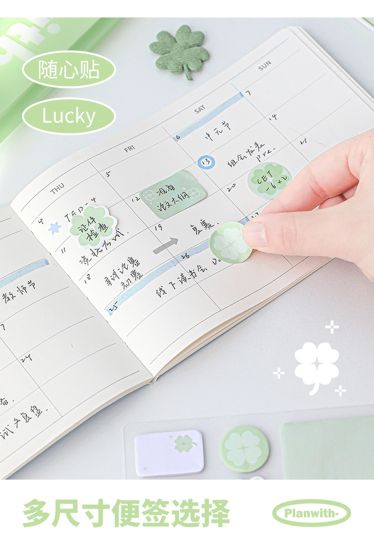 Planwith Loose-leaf 노트북 사용 가능한 4 잎 클로버 포스트잇 노트 강조 다기능 휴대용 노트 마커스토어 가기