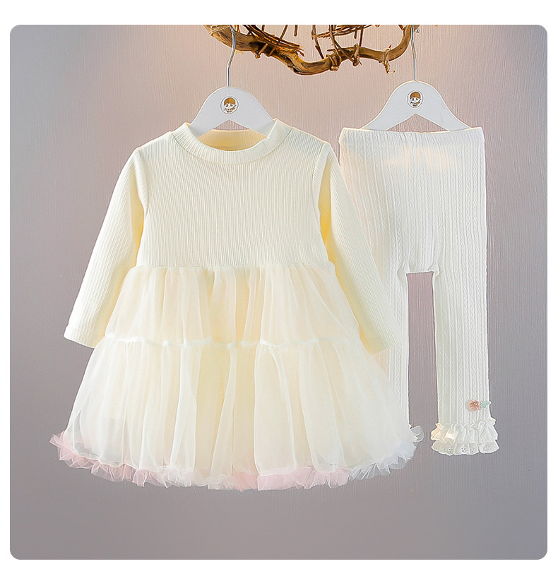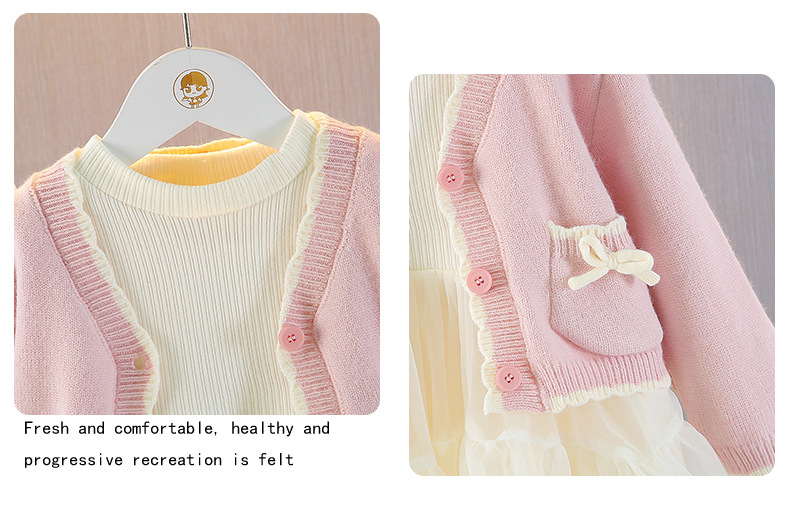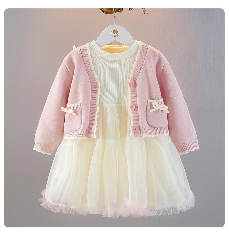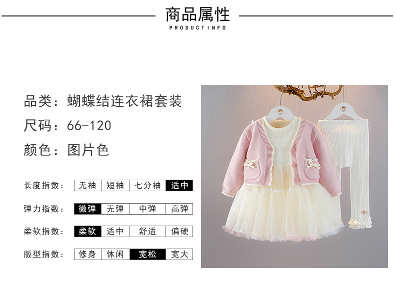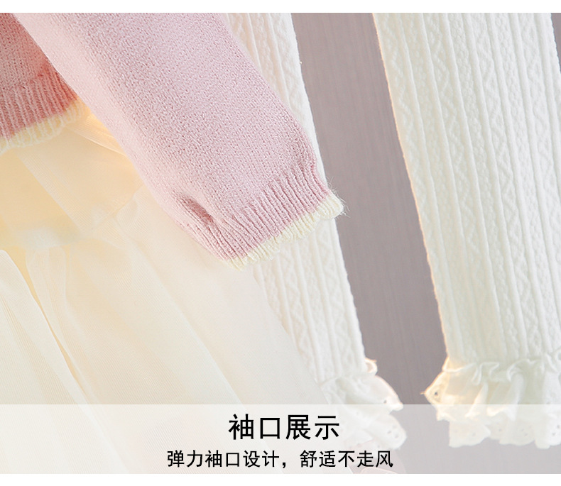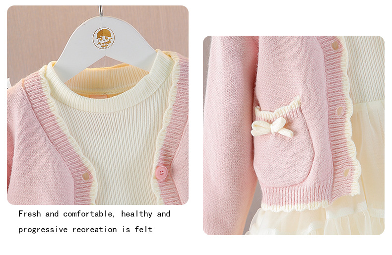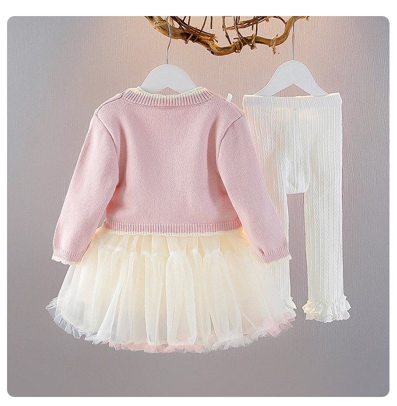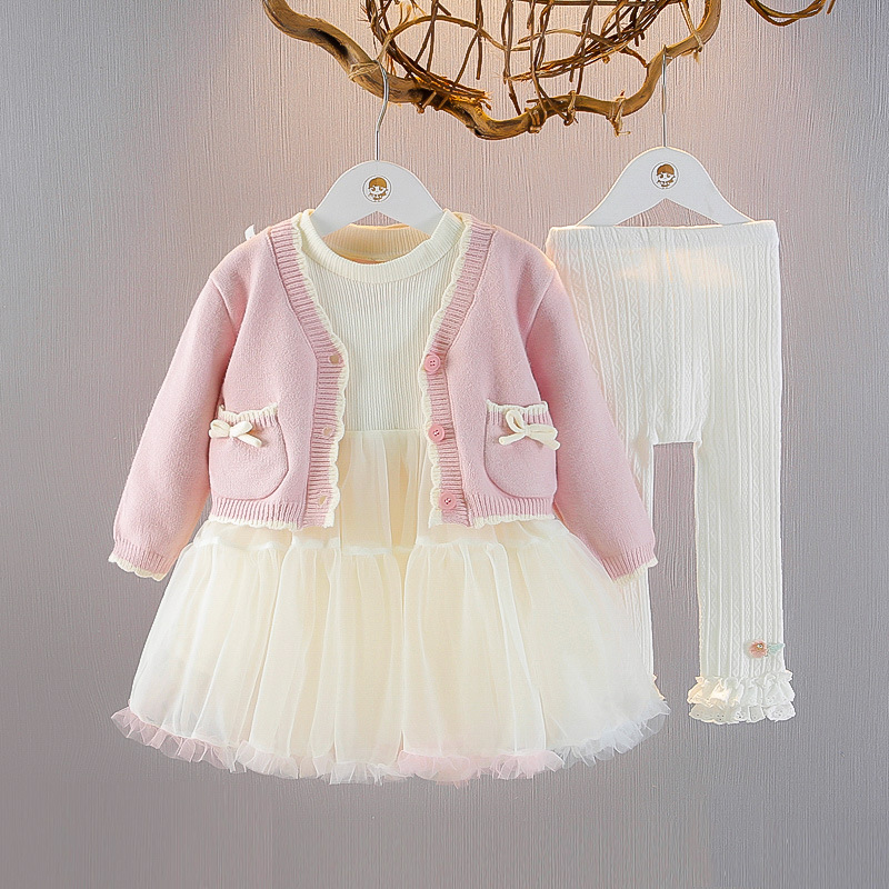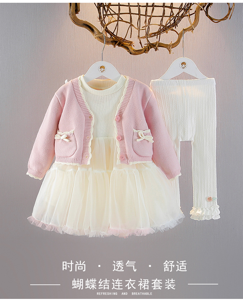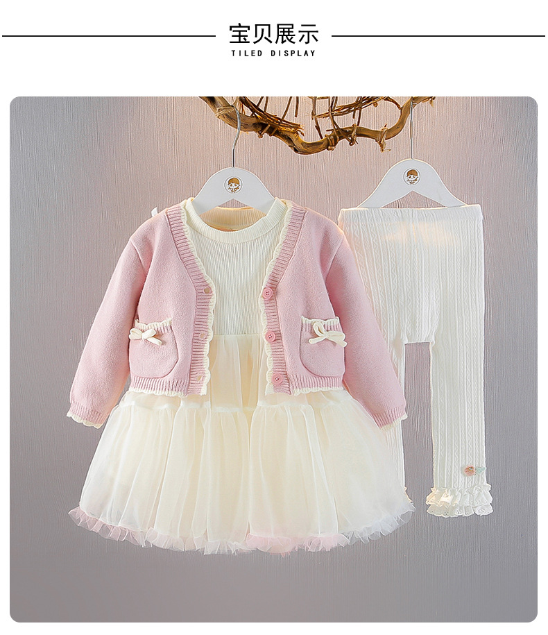 아기 소녀 봄 서양식 니트웨어 긴 소매 원피스 3 조각 세트 봄과 가을 아기 소녀 달콤한 베일 세트스토어 가기