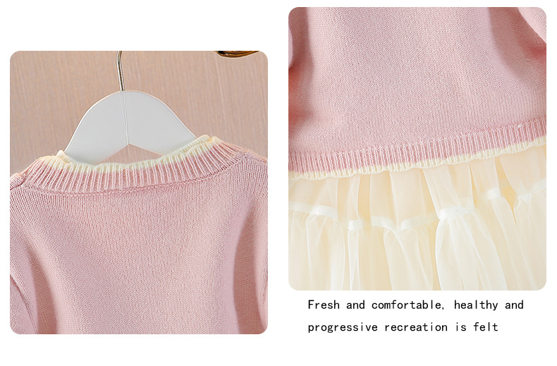 아기 소녀 봄 서양식 니트웨어 긴 소매 원피스 3 조각 세트 봄과 가을 아기 소녀 달콤한 베일 세트