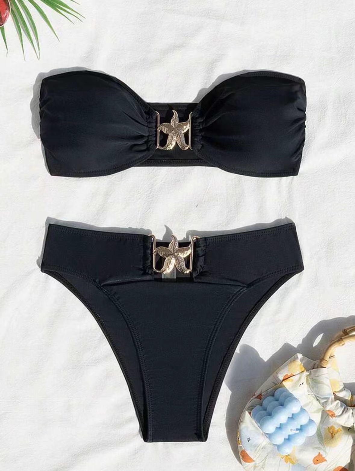 재고 유럽과 미국의 새로운 섹시한 불가사리 튜브 탑 솔리드 컬러 비키니 비키니 분할 여성 수영복 크로스 테두리스토어 가기