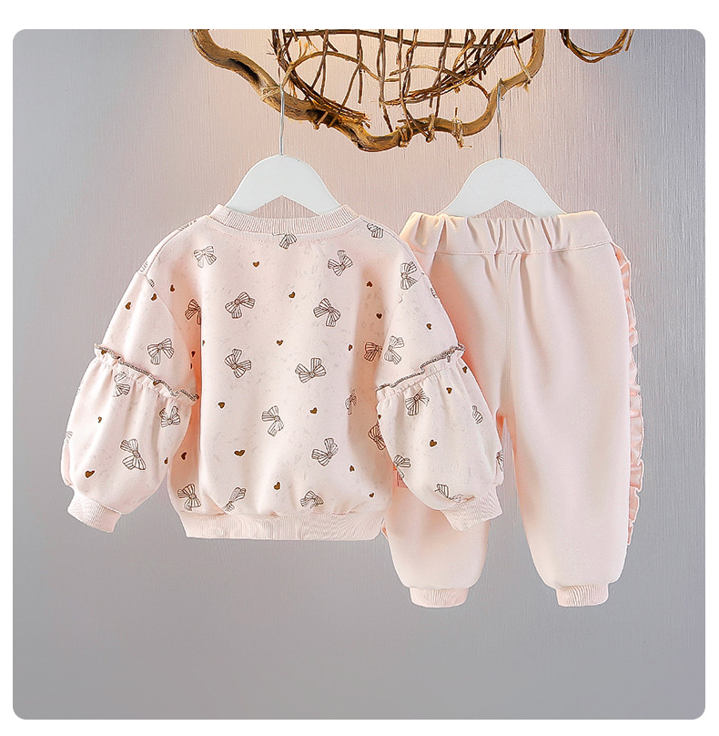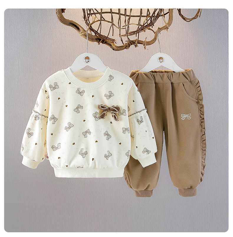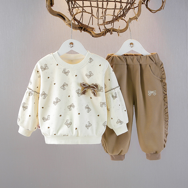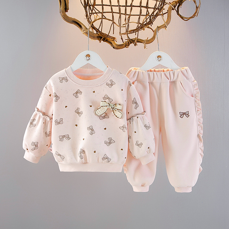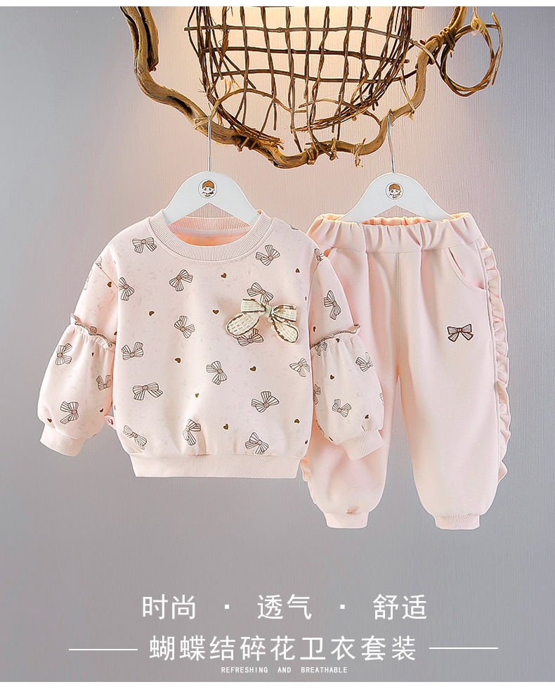 소녀 긴팔 스웨트 셔츠 세트 봄 1 살 아기 서양식 투피스 어린이 풀오버 티셔츠 봄과 가을 세트스토어 가기