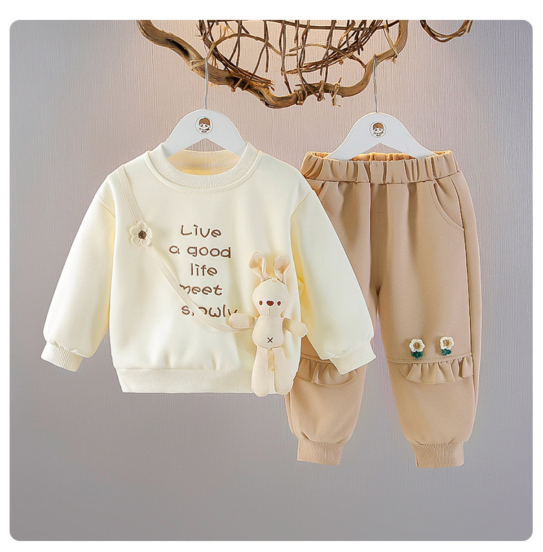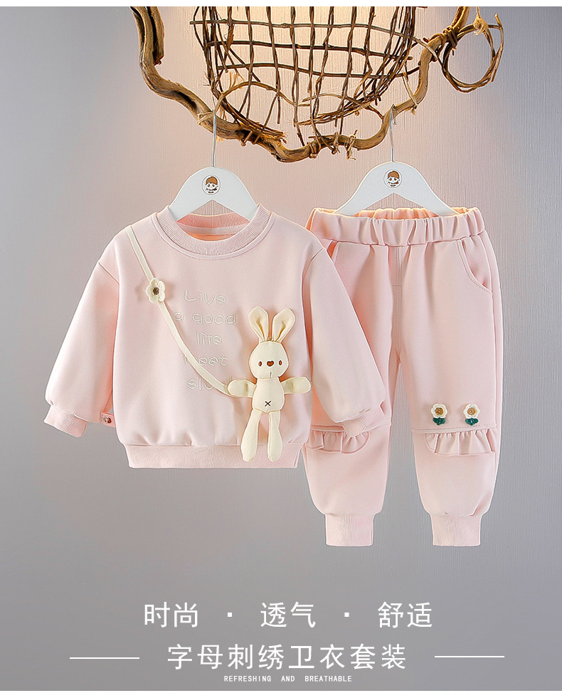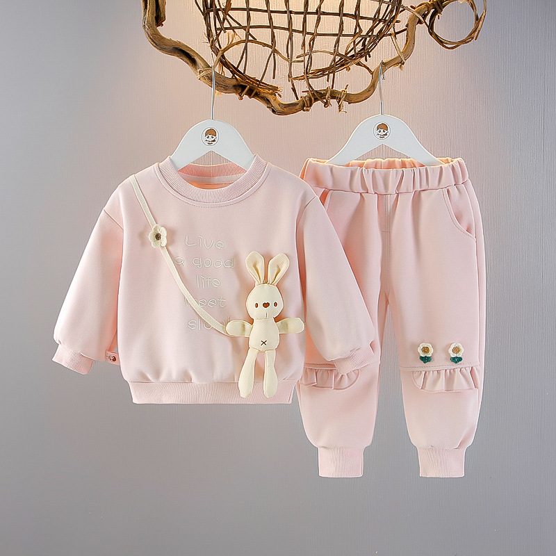 아기 소녀 봄 스포츠 두 조각 소녀 봄과 가을 새로운 어린이 세트 스타일 스웨트 바지 세트 트렌디스토어 가기