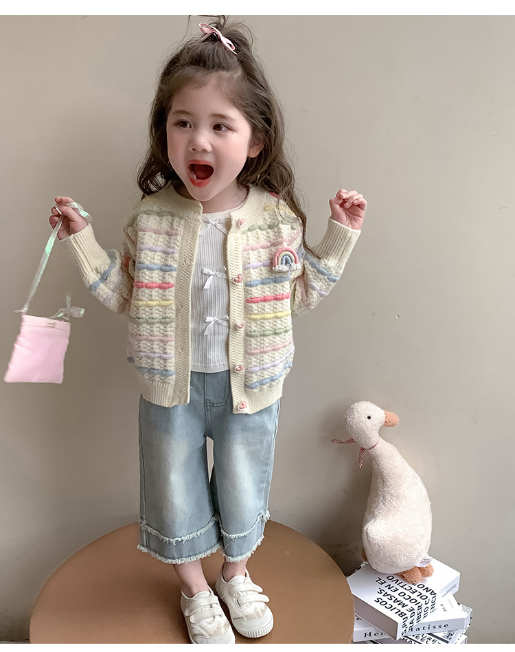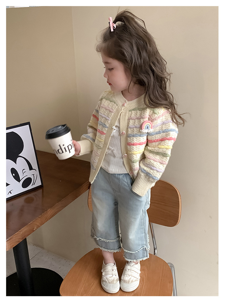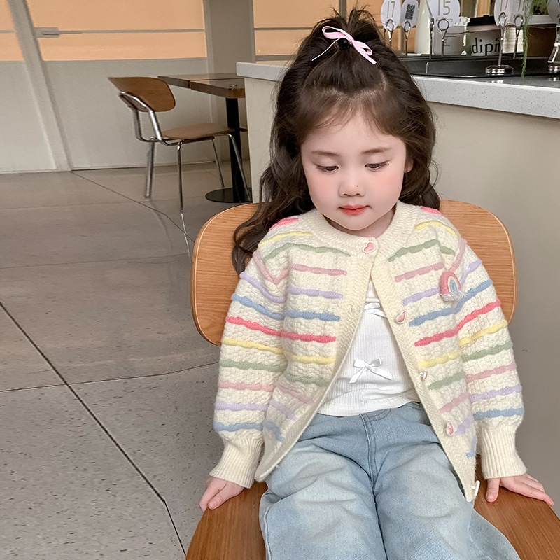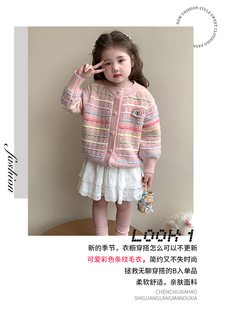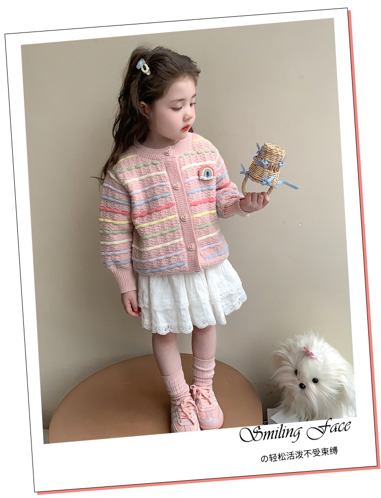 소녀 서양식 스웨터 코트 봄과 가을 어린이 니트 카디건 2025 봄 새 스타일 어린이 캐주얼 봄 복장스토어 가기