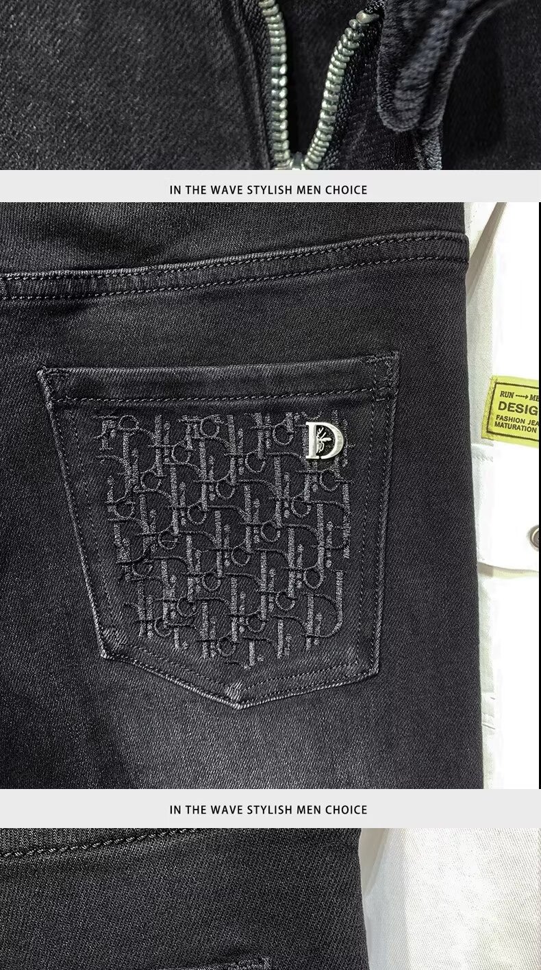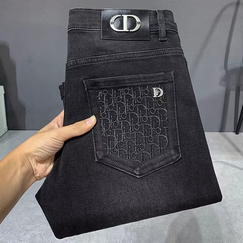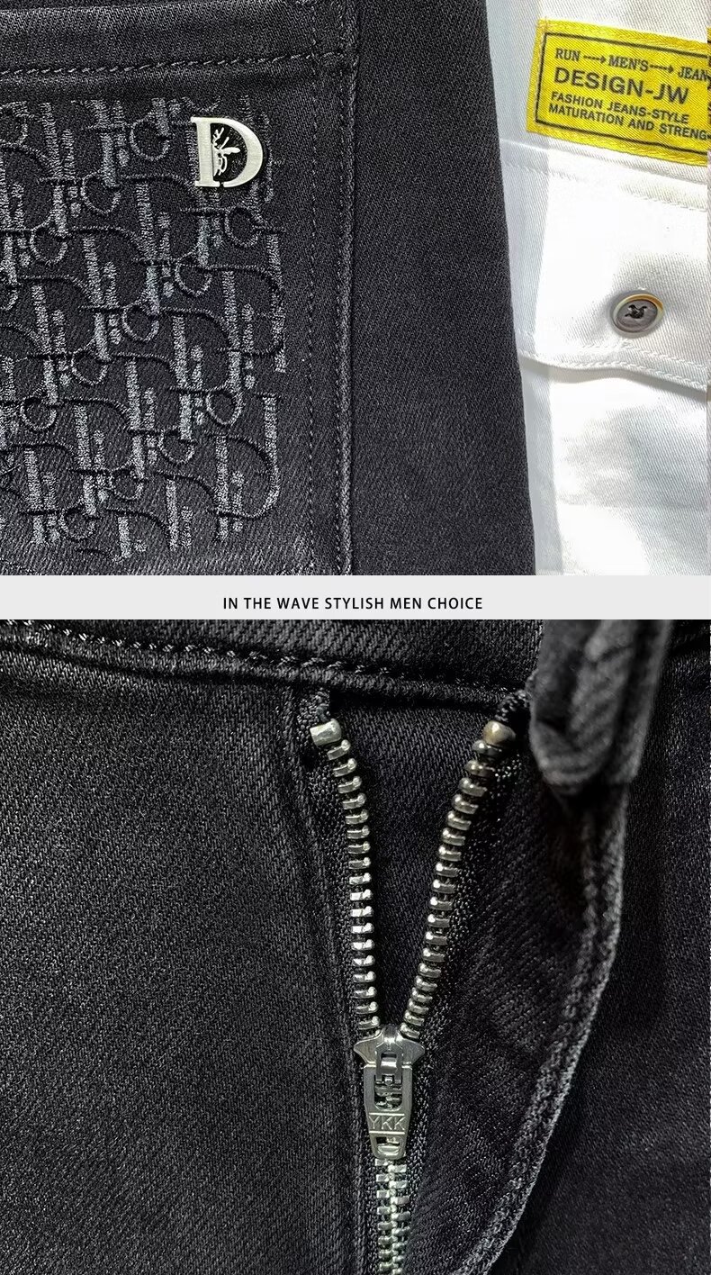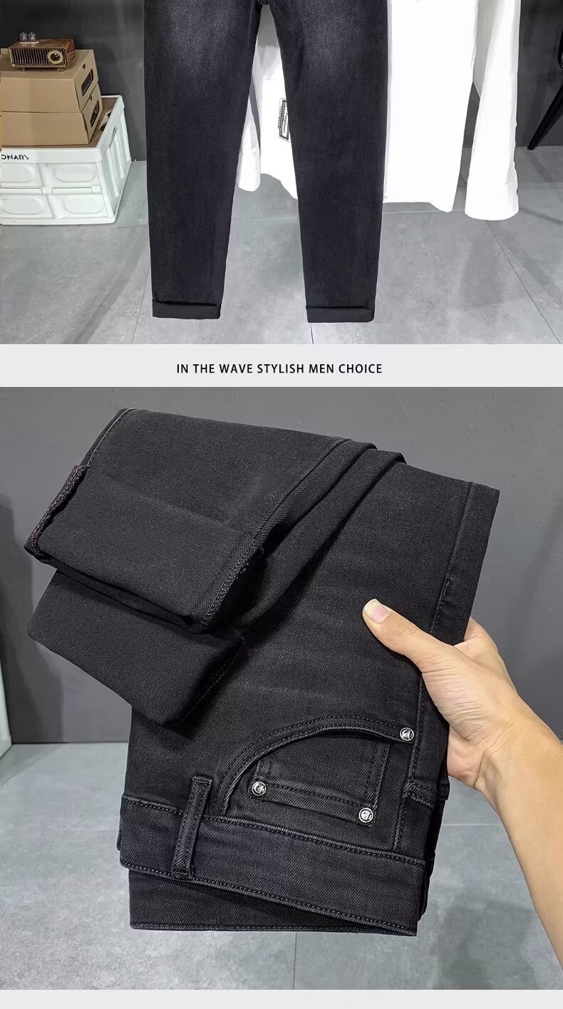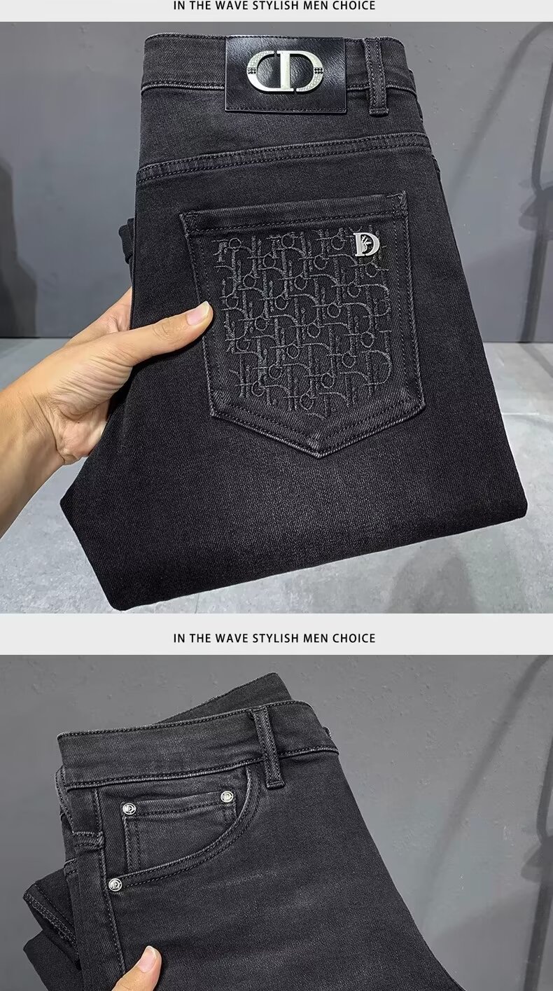 봄과 가을 하이 엔드 수 놓은 블랙 그레이 청바지 남성용 스트레치 슬림 핏 작은 스트레이트 패션 유럽 용품 하이 엔드 트렌디 브랜드스토어 가기