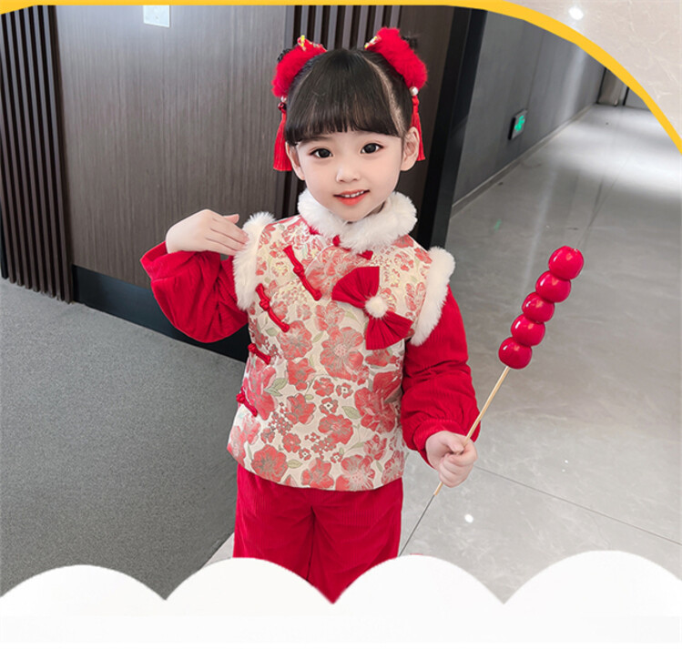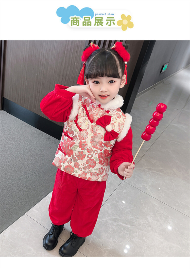 소녀들의 신년 옷 세트 겨울옷 소녀소녀들 중국식 신년 옷 소녀상 기모 당나라 옷 어린이 신년 옷스토어 가기
