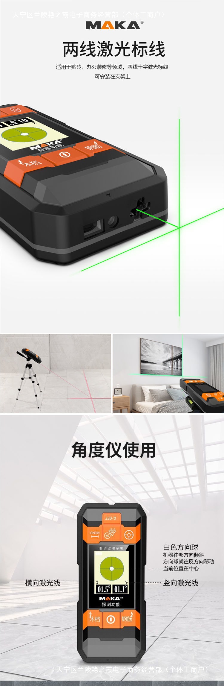 마르카 다기능 측정 악기 벽 와이어 강화 금속 탐지기 레이저 범위 찾기 장식스토어 가기