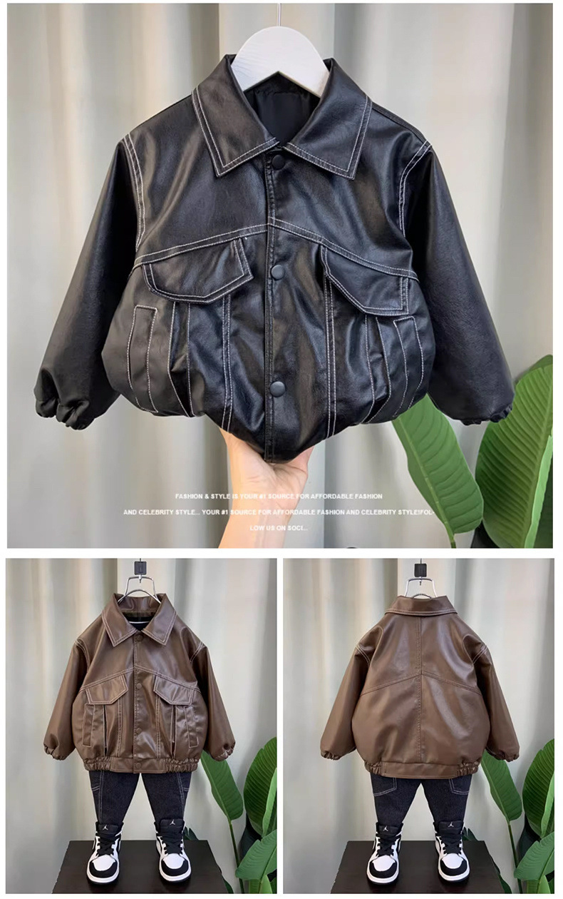 [2295 명 칭찬] 소년 겨울 코트 2024 새로운 외국식 아기 가을과 겨울 가죽 자켓 코트