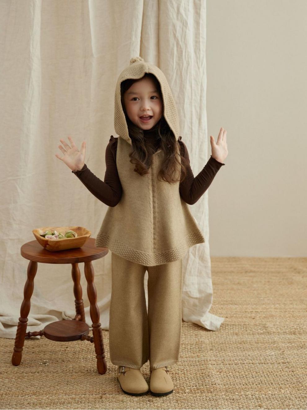 여자 스웨터 세트 2024 가을 새 유치원 아기 한국 조끼 바지 셔츠 넓은 다리 바지 3 조각 세트