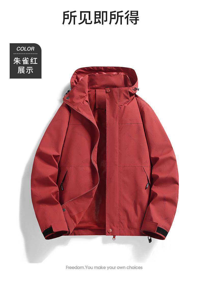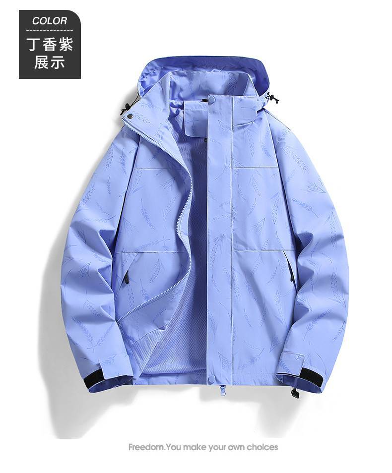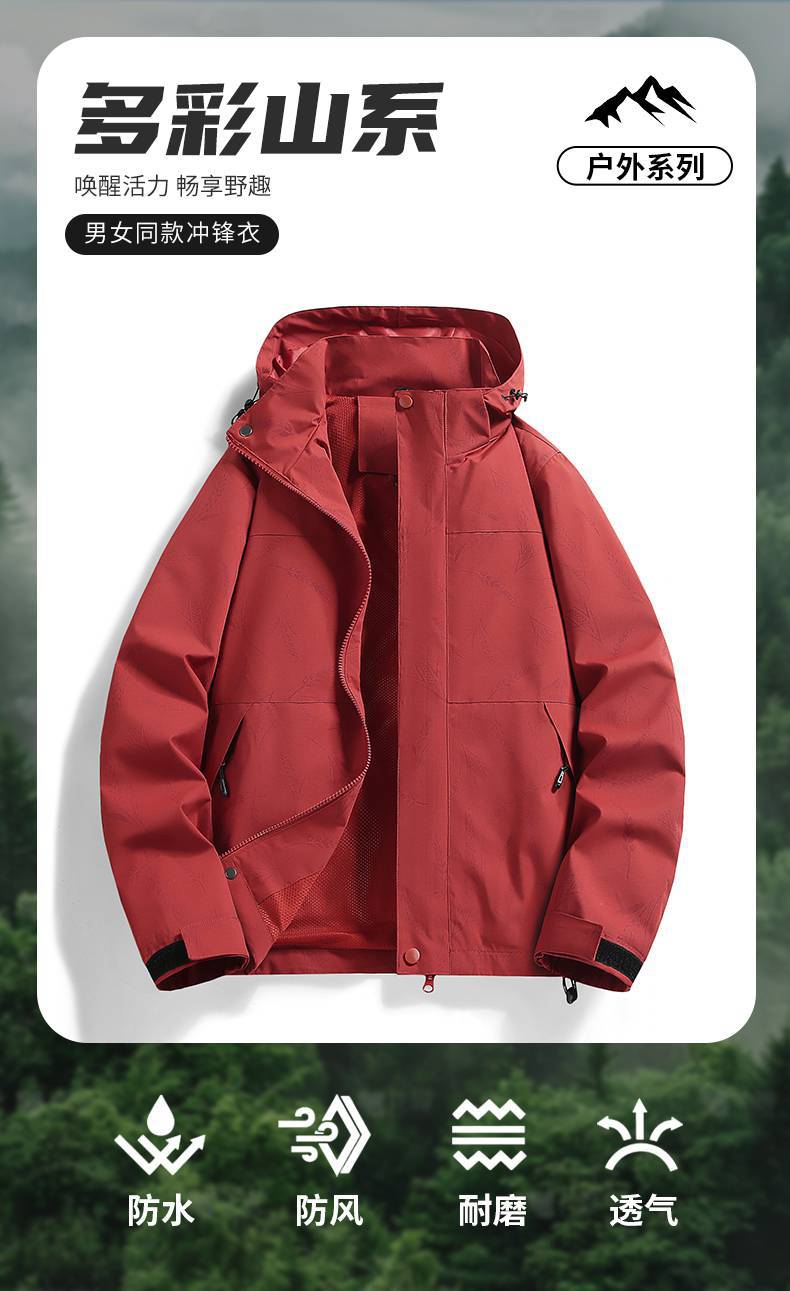 남성과 여성을위한 야외 충전 옷 봄과 가을 얇은 방풍 방수 등산 세트 재킷 코트 광고 그룹 의류 인쇄