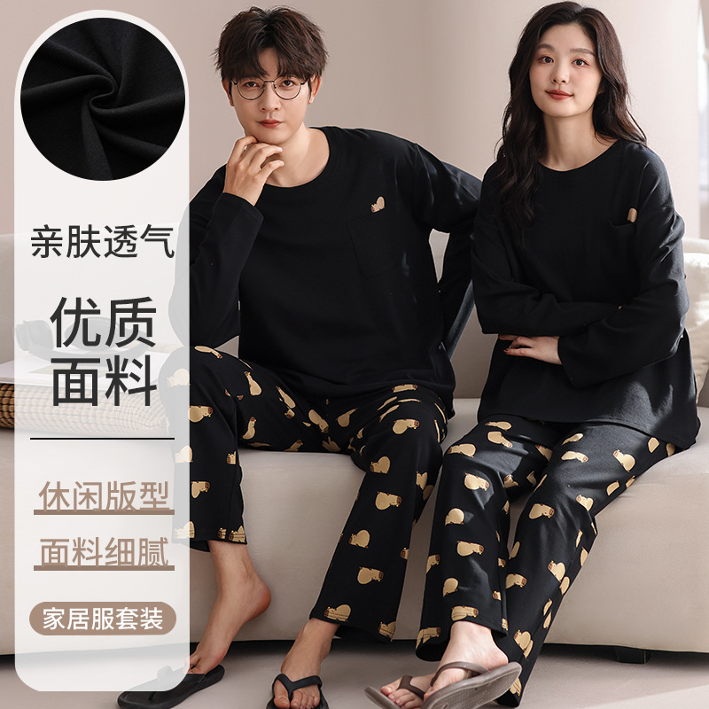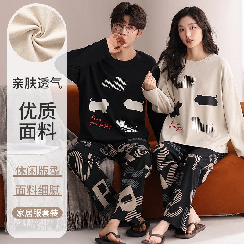 봄과 가을 잠옷 커플의 순면 플러스 사이즈 여성과 남성 긴팔 바지 캐주얼 세트 풀리기 여름 가을 겨울 홈 옷스토어 가기