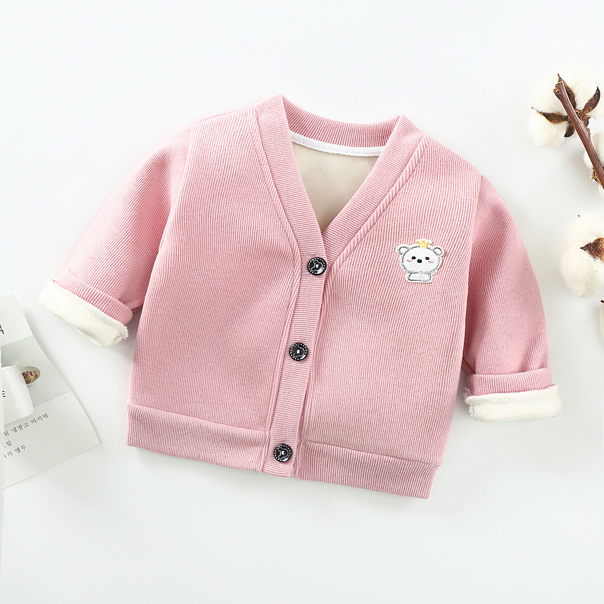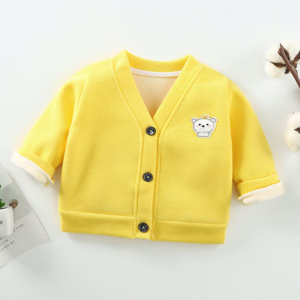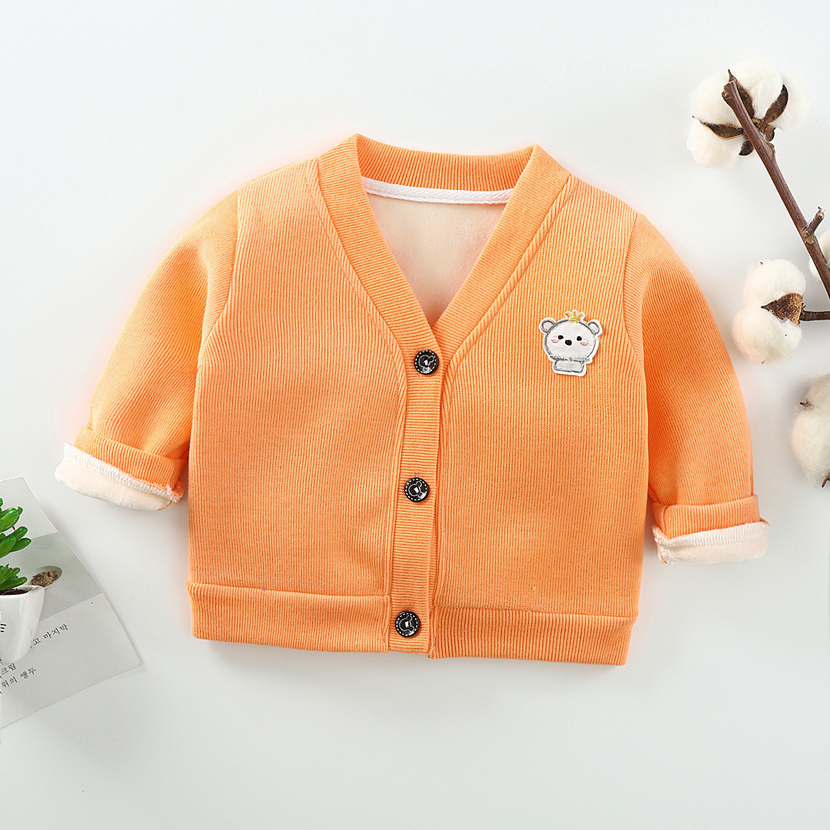 2025 봄과 가을 소년 소녀 및 유아 용 니트웨어 백킹 스웨터 카디건 솔리드 컬러 내부스토어 가기