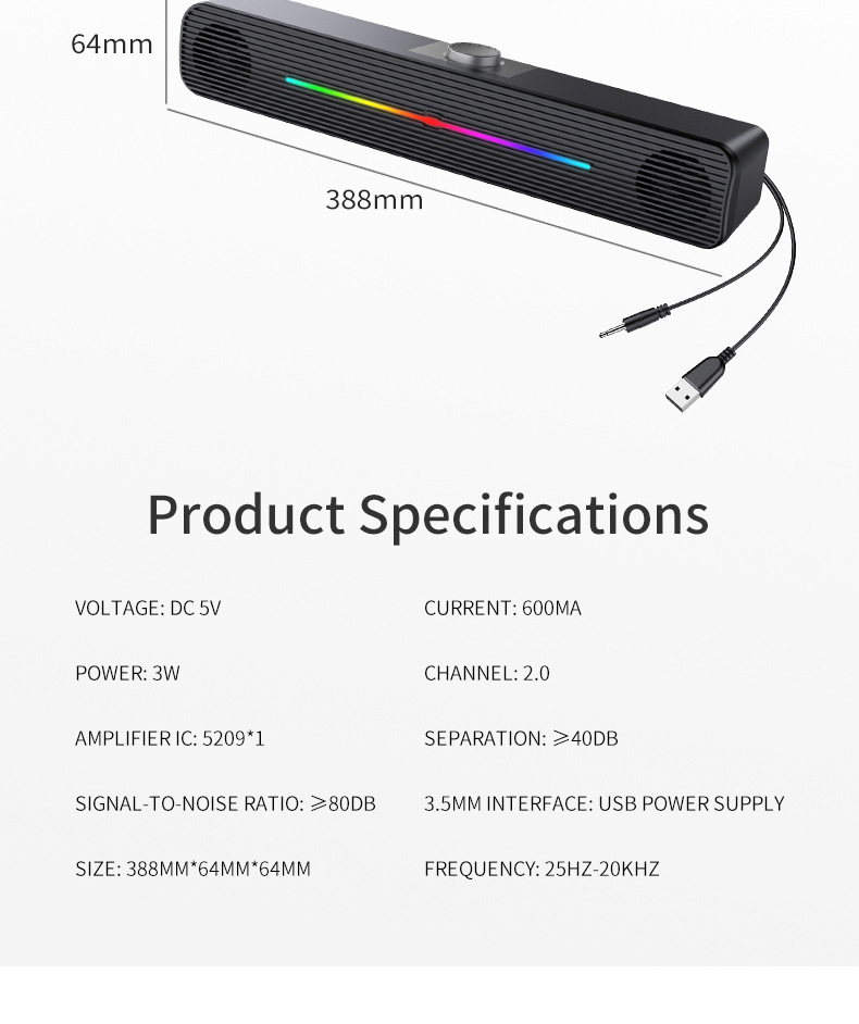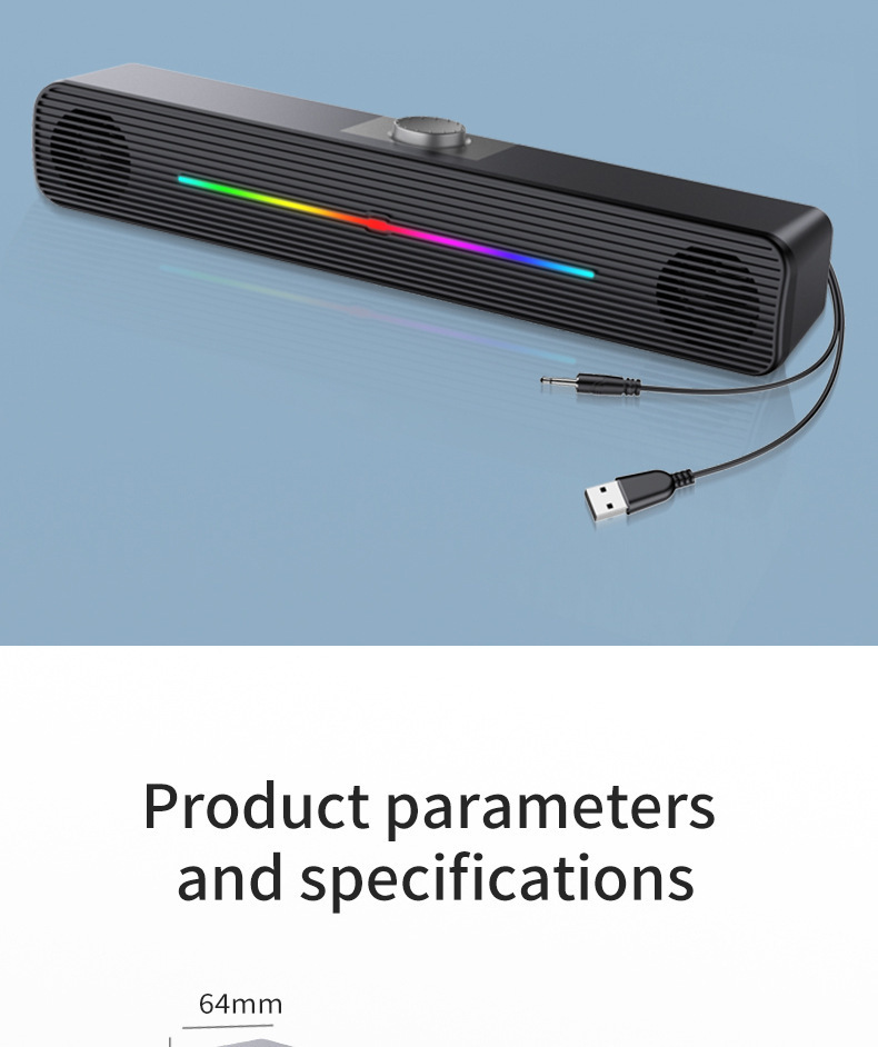 국경 간 E-1407 컴퓨터 오디오 데스크탑 노트북 긴 빛나는 스피커 무거운 서브 우퍼 USB 멀티미디어스토어 가기