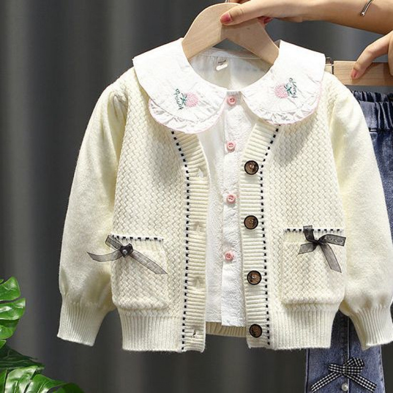 [70000 인민 컬렉션] 소녀 가을 3 피스 2024 어린이 새로운 외국식 양모 카디건 어린 소녀 봄스토어 가기