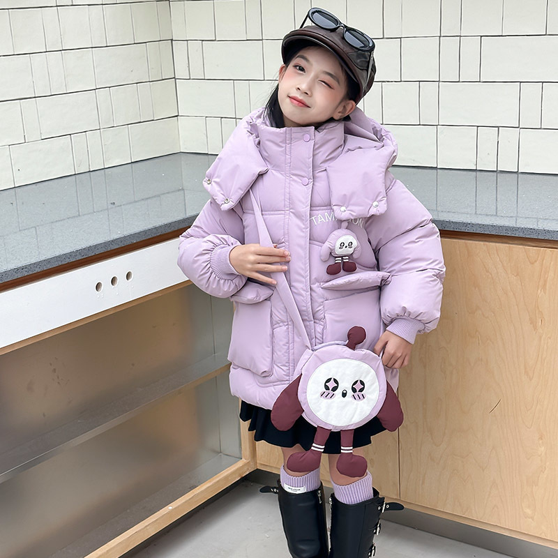 [달콤하고 따뜻한] 어린이 면 패딩 재킷 걸스면 패딩 2024 새 코트 웨스턴 스타일 기모 겨울 중간 길이스토어 가기