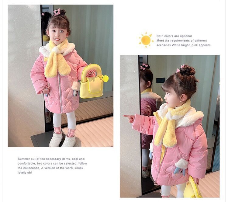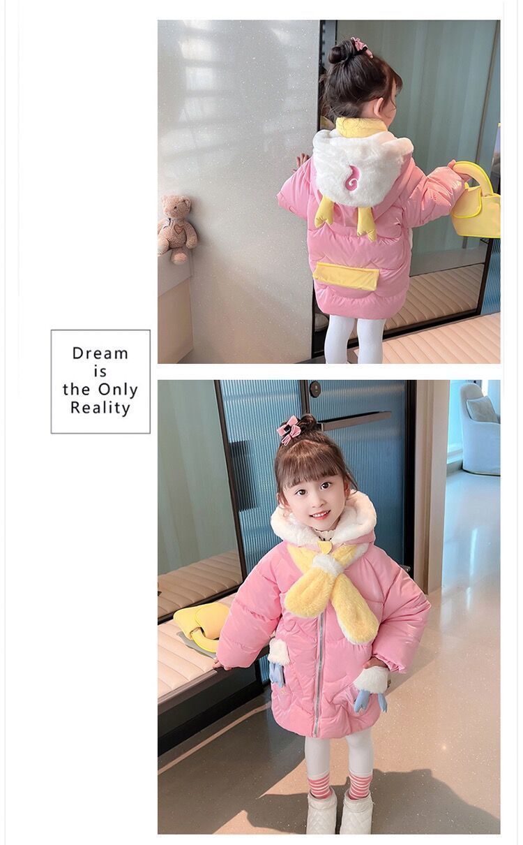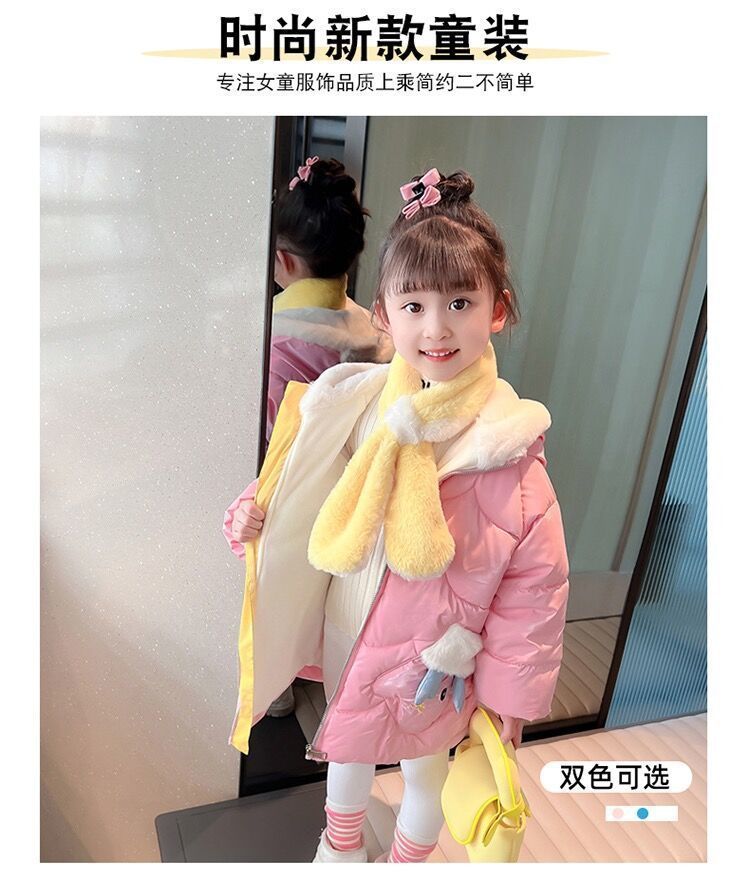 소녀면 패딩 재킷 코트 가을과 겨울 2024 새로운 외국 스타일의 아기 소녀 긴 기모 어린이 겨울면 패딩 코트스토어 가기