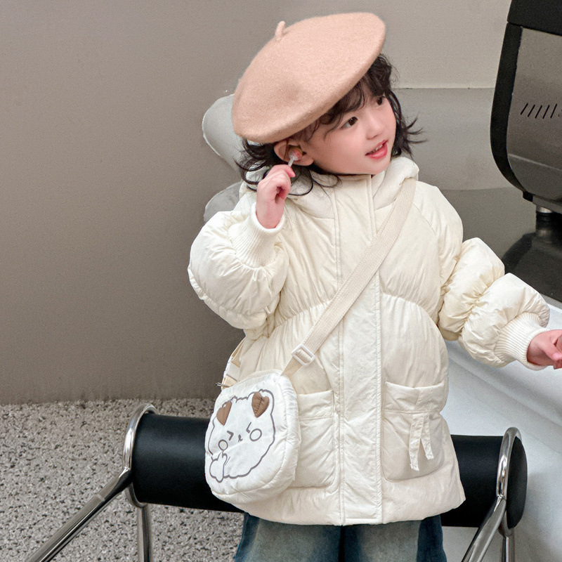 어린이 다운 자켓 소녀 2024 새로운 서양식 어린이 아기 한국 스타일 두꺼운 어린이 착용 중간 긴 코트 겨울스토어 가기