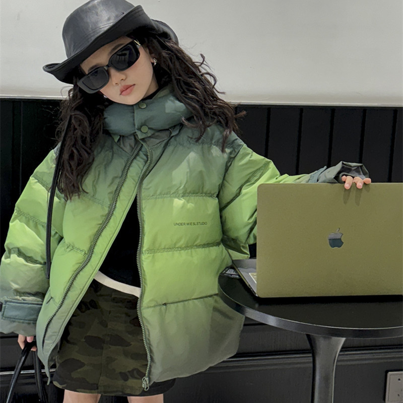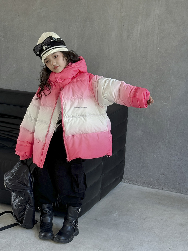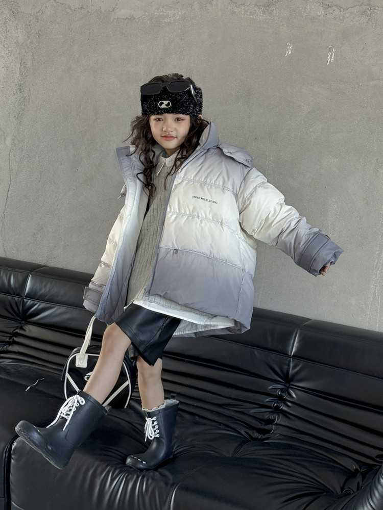 한국 새로운 그라디언트 컬러 어린이 다운 재킷 소년 소녀 아기 겨울 긴 두꺼운 외국 스타일 흰 오리 다운 조수스토어 가기